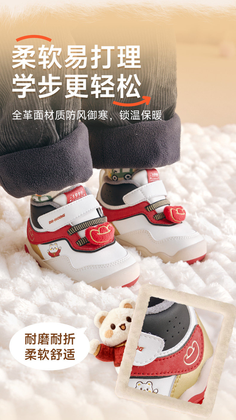 Dr.Kong江博士童鞋学步初期2025冬季加绒保暖软底男女...