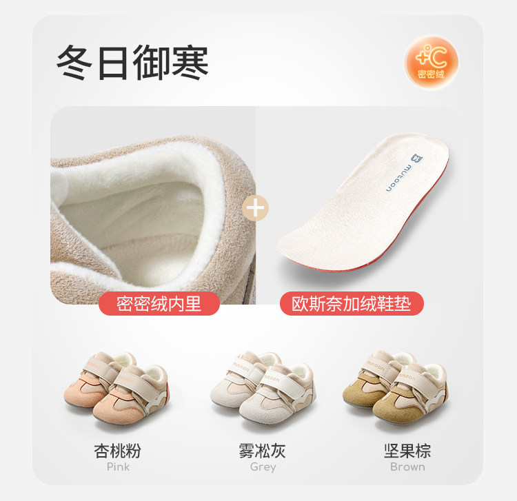 | 颜色分类: | 杏桃粉(加绒保暖) 雾凇灰(加绒保暖) 坚果棕(加绒保暖) 柔桔粉(透气网布) 奶油灰(透气网布) 栗子棕(透气网布) 大象灰8900(蛋白革) 可可棕8900(蛋白革) 柔雾粉8900(蛋白革) 慕斯粉8901(灯芯绒面) 燕麦米8901(灯芯绒面) 萌萌粉8825(透气网布) 奶油咖8825(透气网布) 晴空蓝8825(透气网布) 安全检测报告 软软的 赤足感 选码咨询客服 品质保障 售后无忧 舒适 软底 防滑 稳护 学步 |