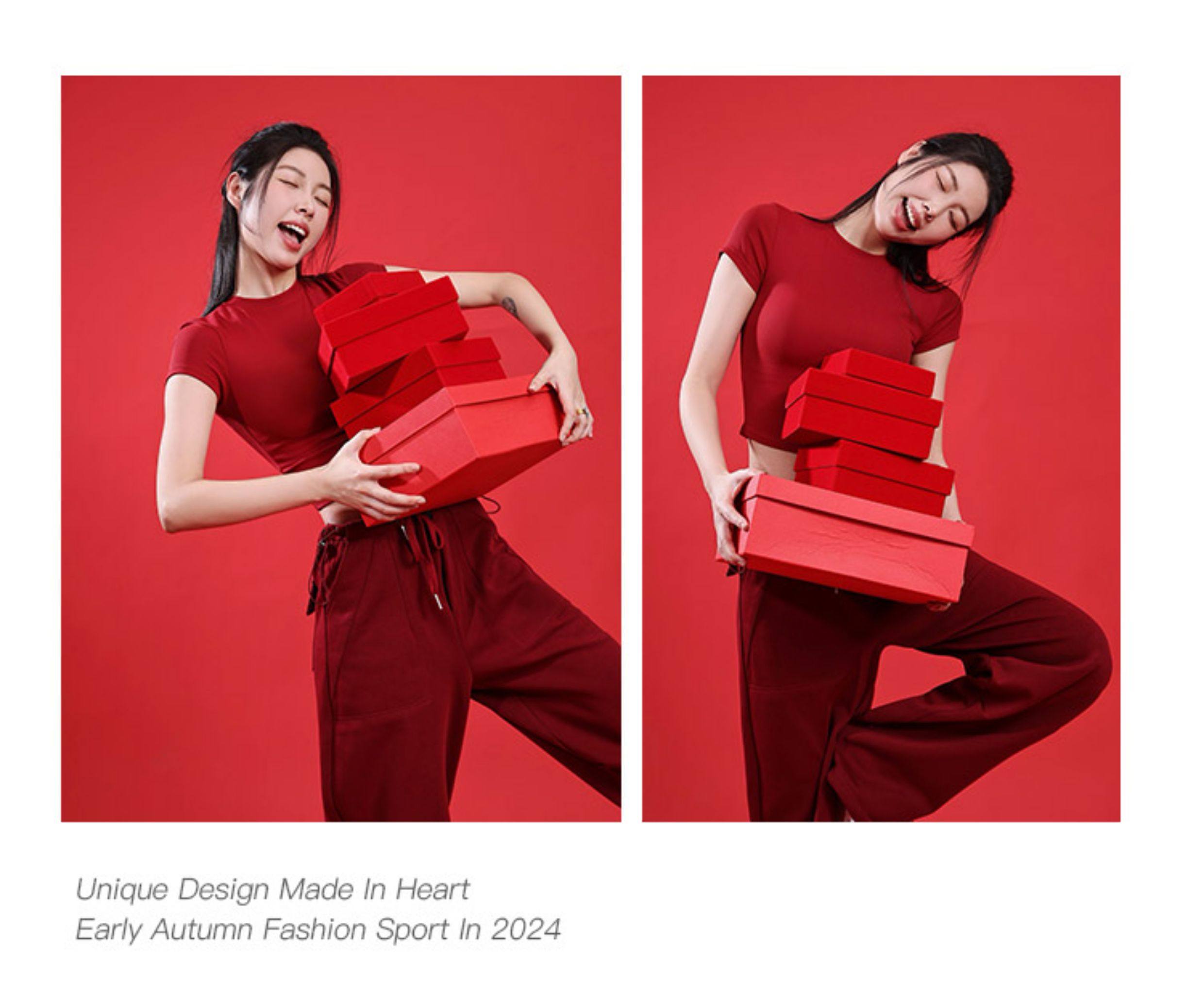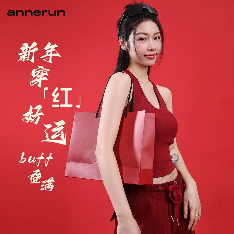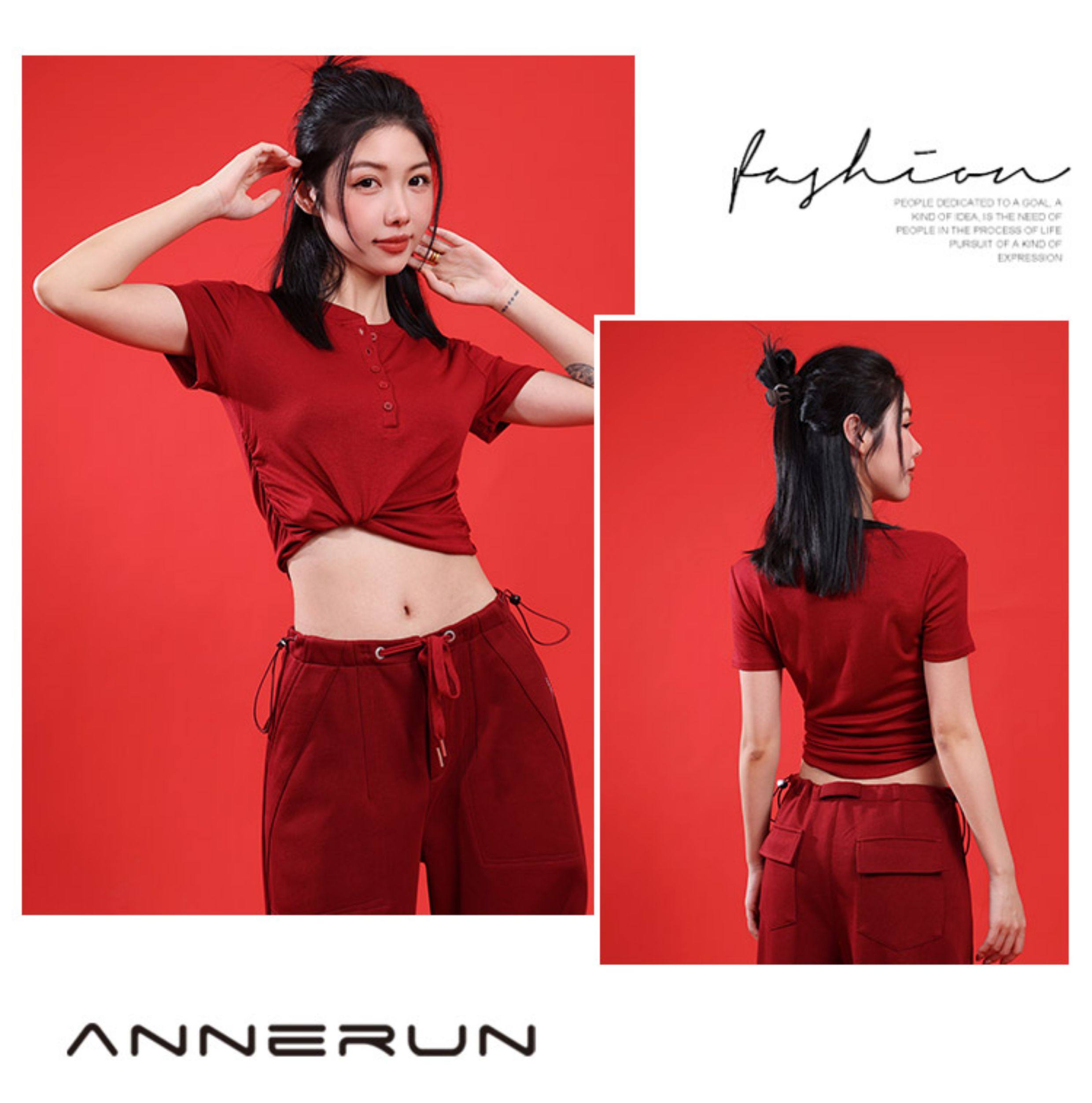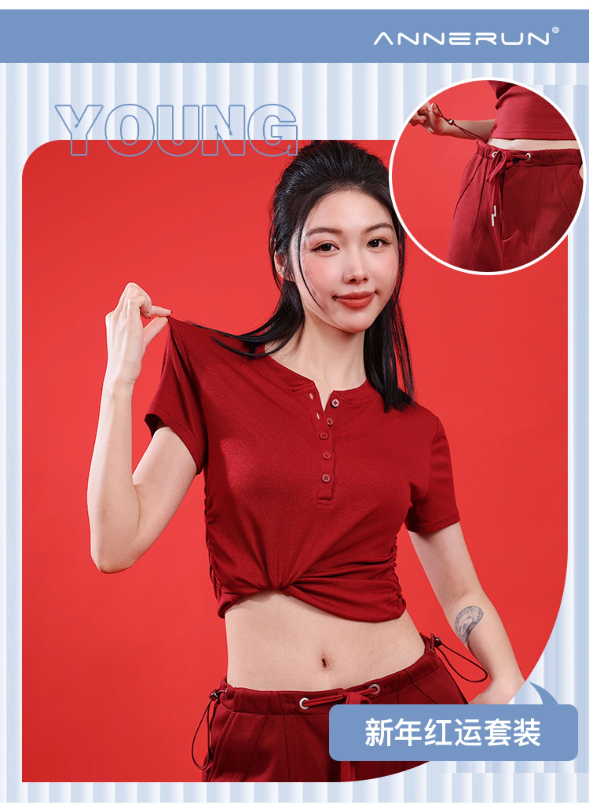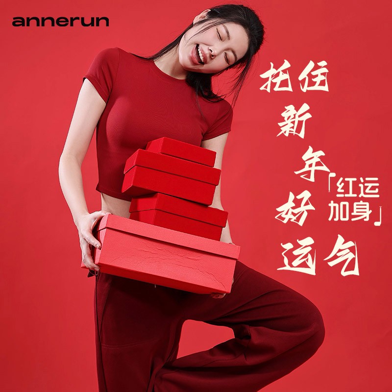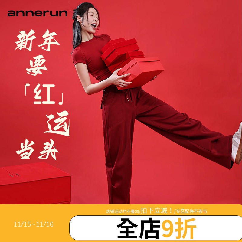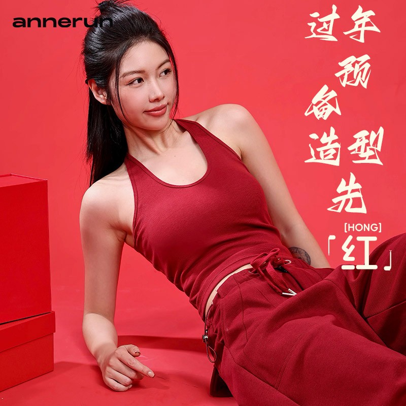 annerun新年红色穿搭衣服瑜伽服套装女运动服小个子健身服...