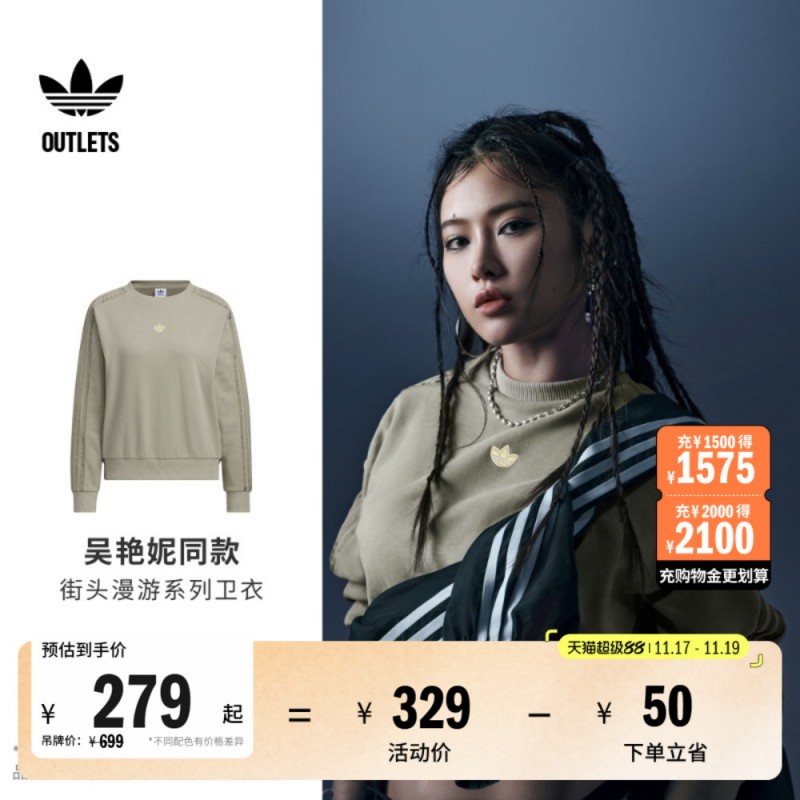 吴艳妮同款街头漫游系列运动圆领卫衣套头衫adidas阿迪达斯...
