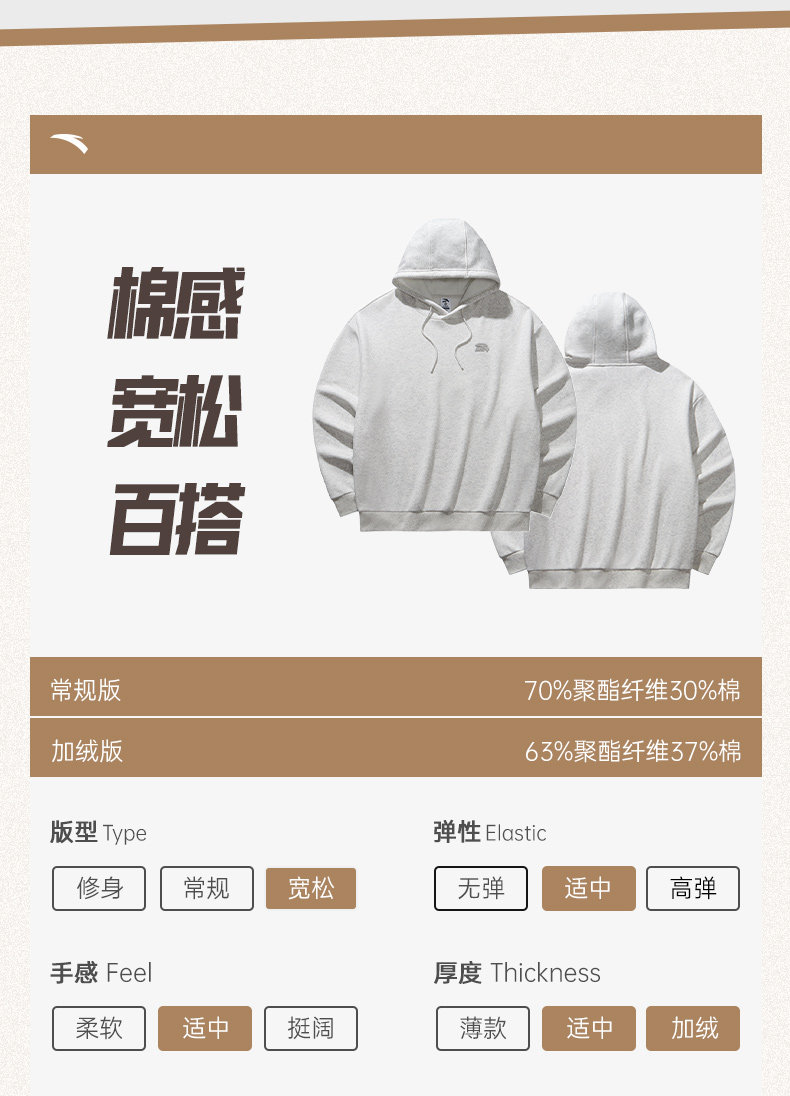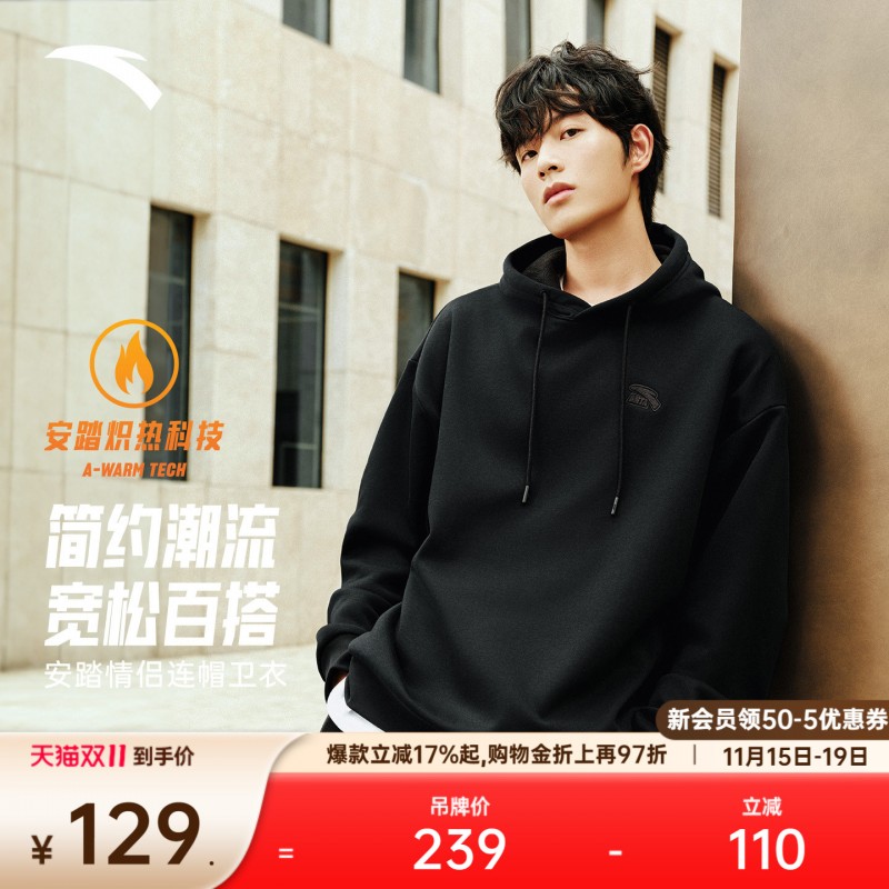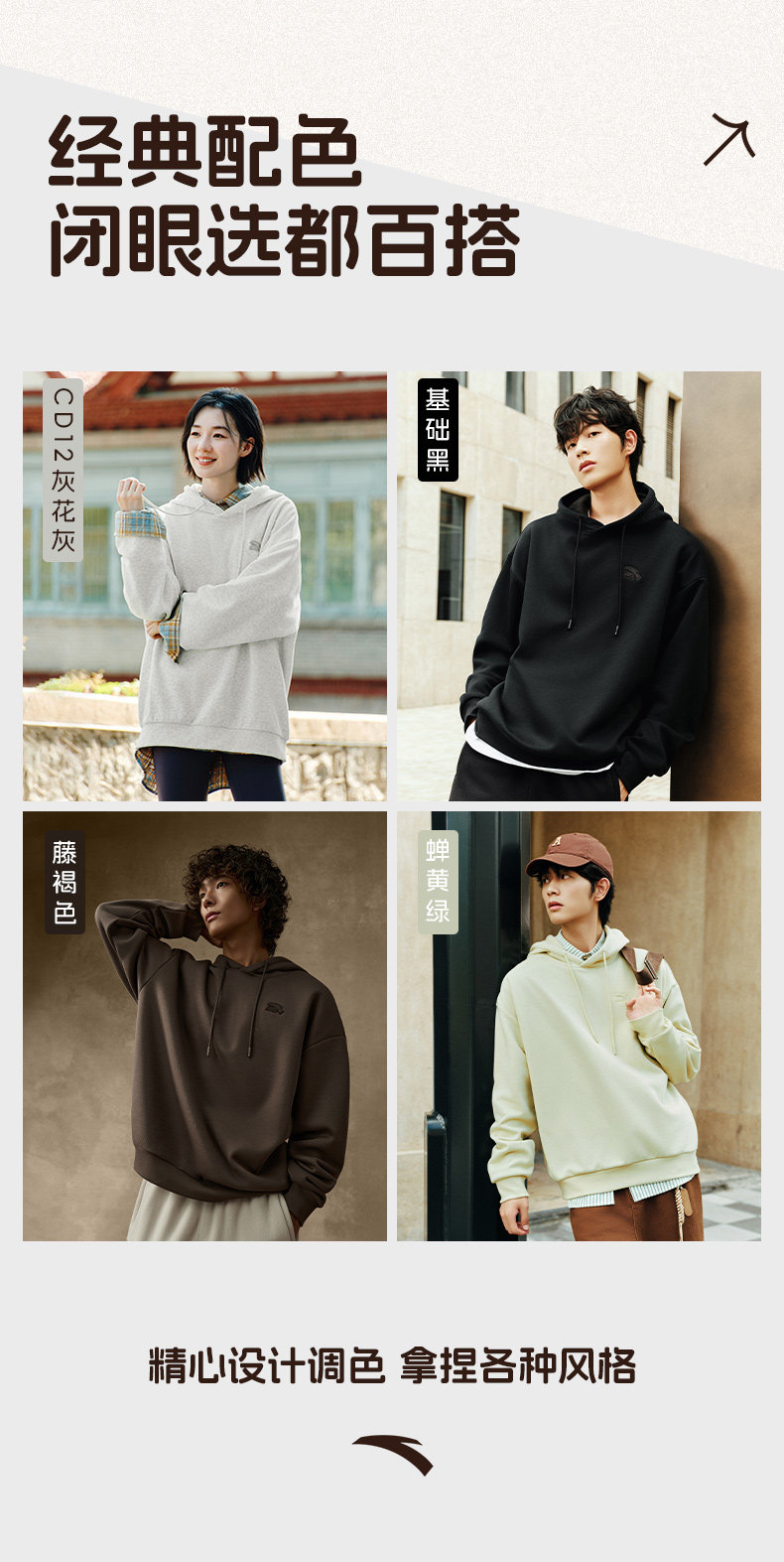| 产品名称 : | 安踏情侣连帽套头卫衣男女2025新款简约休闲宽松加绒潮流长袖上衣 |
