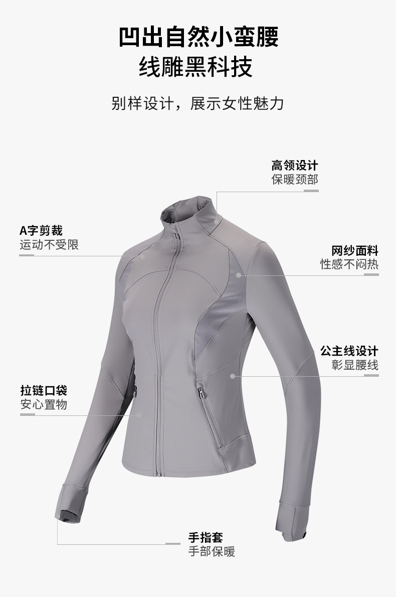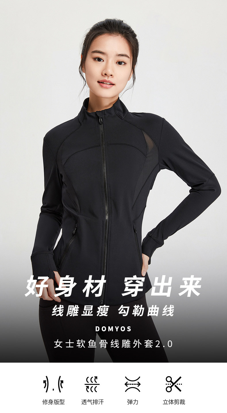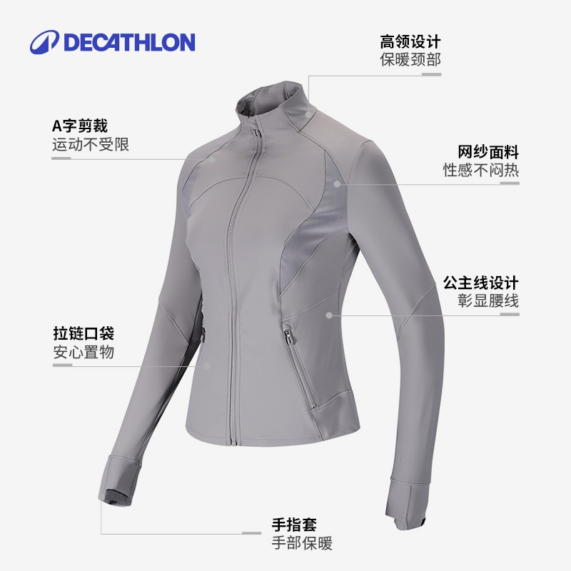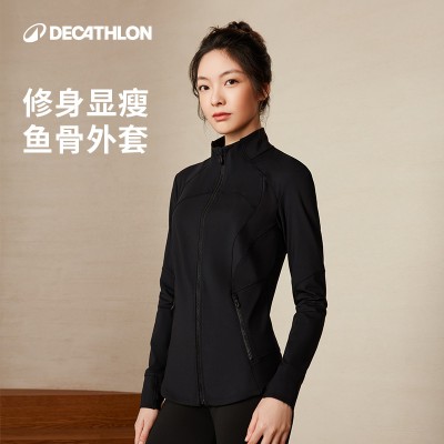 迪卡侬健身衣女修身显瘦瑜伽服速干鱼骨速干运动外套SAX1