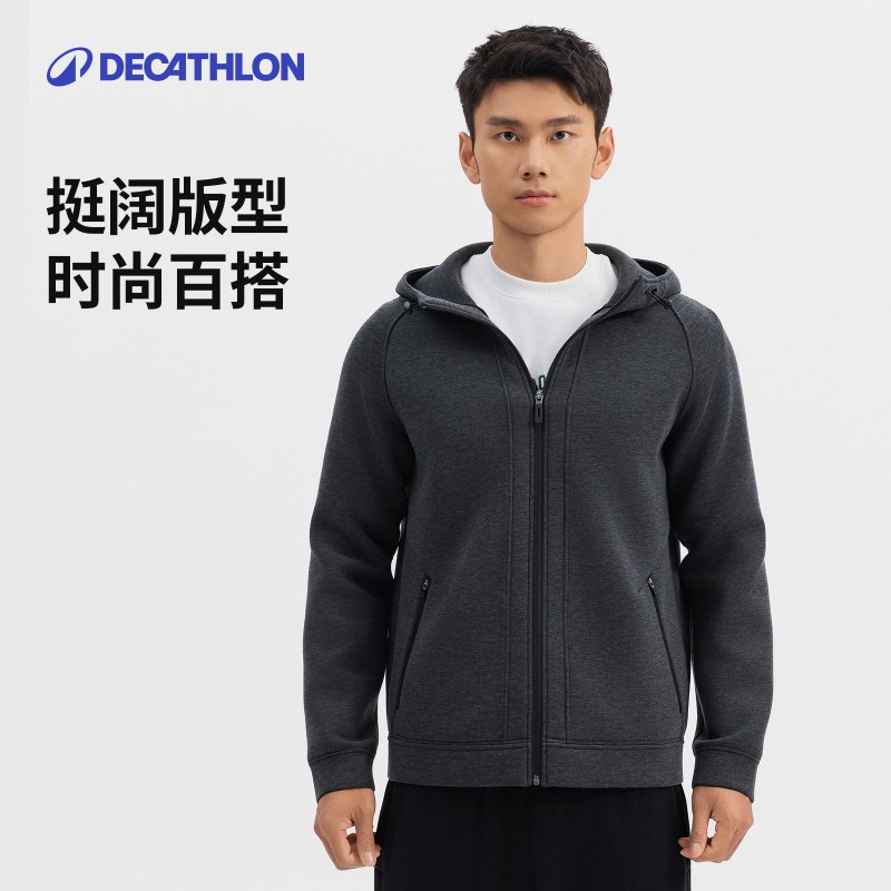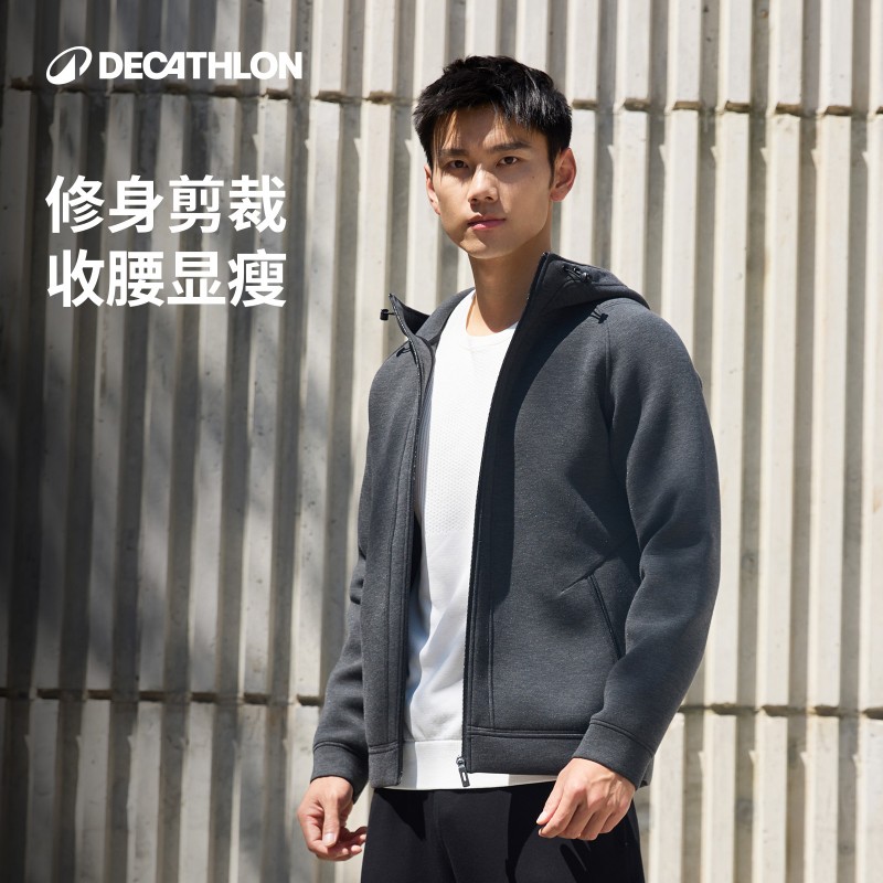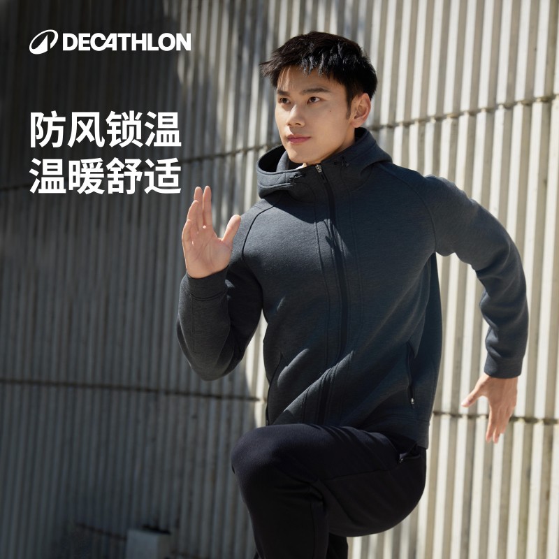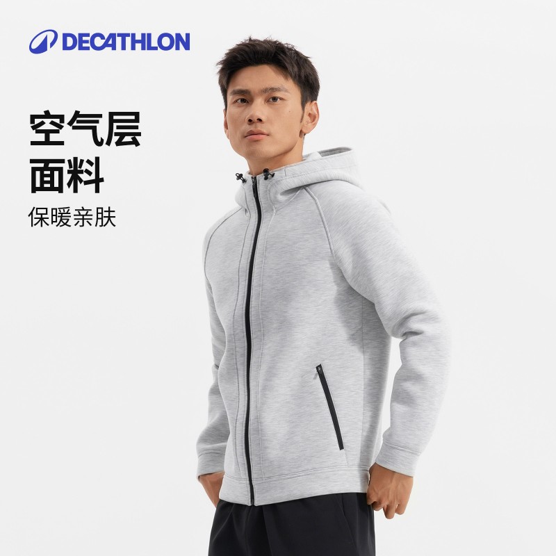 迪卡侬空气层外套男秋季健身休闲厚款防风保暖运动外套夹克SAX...
