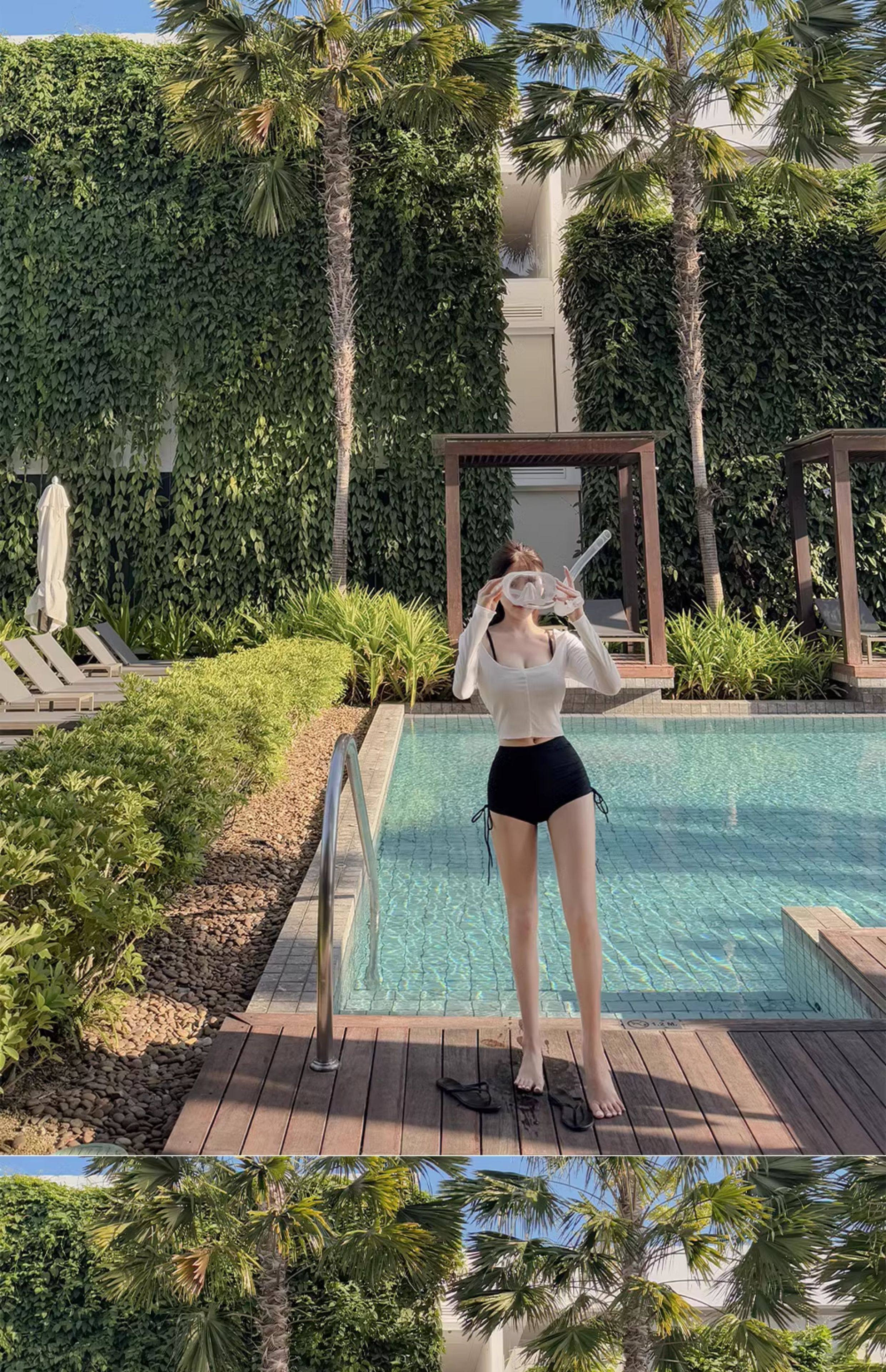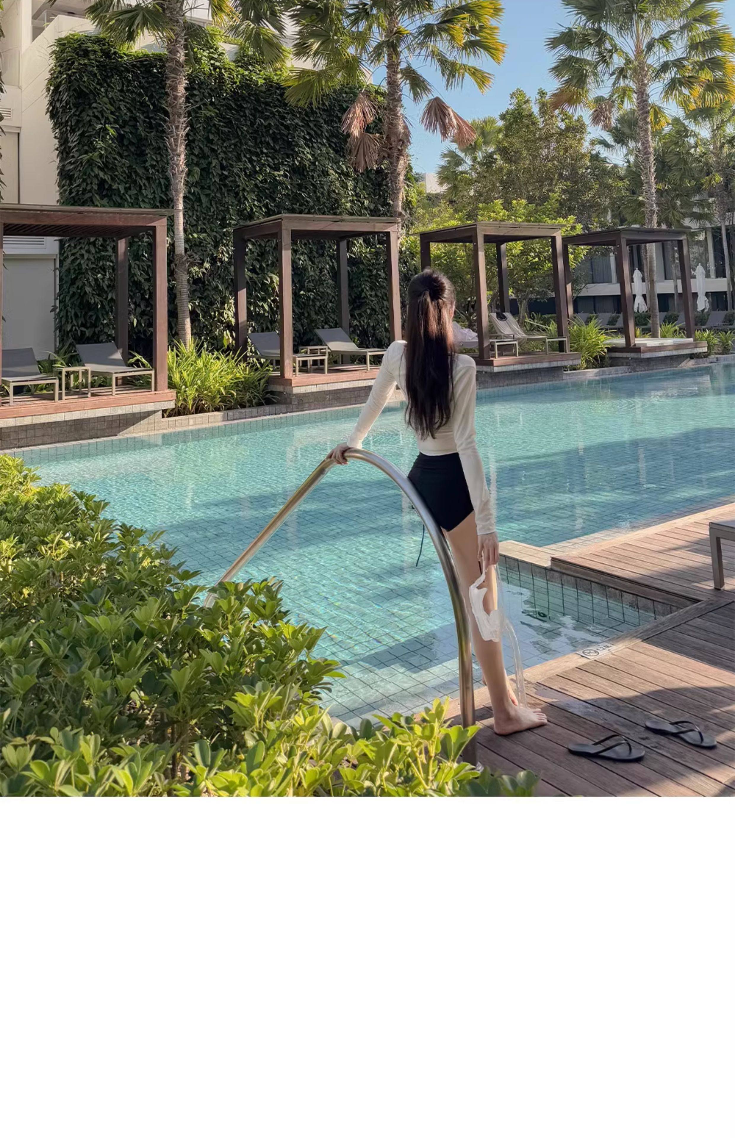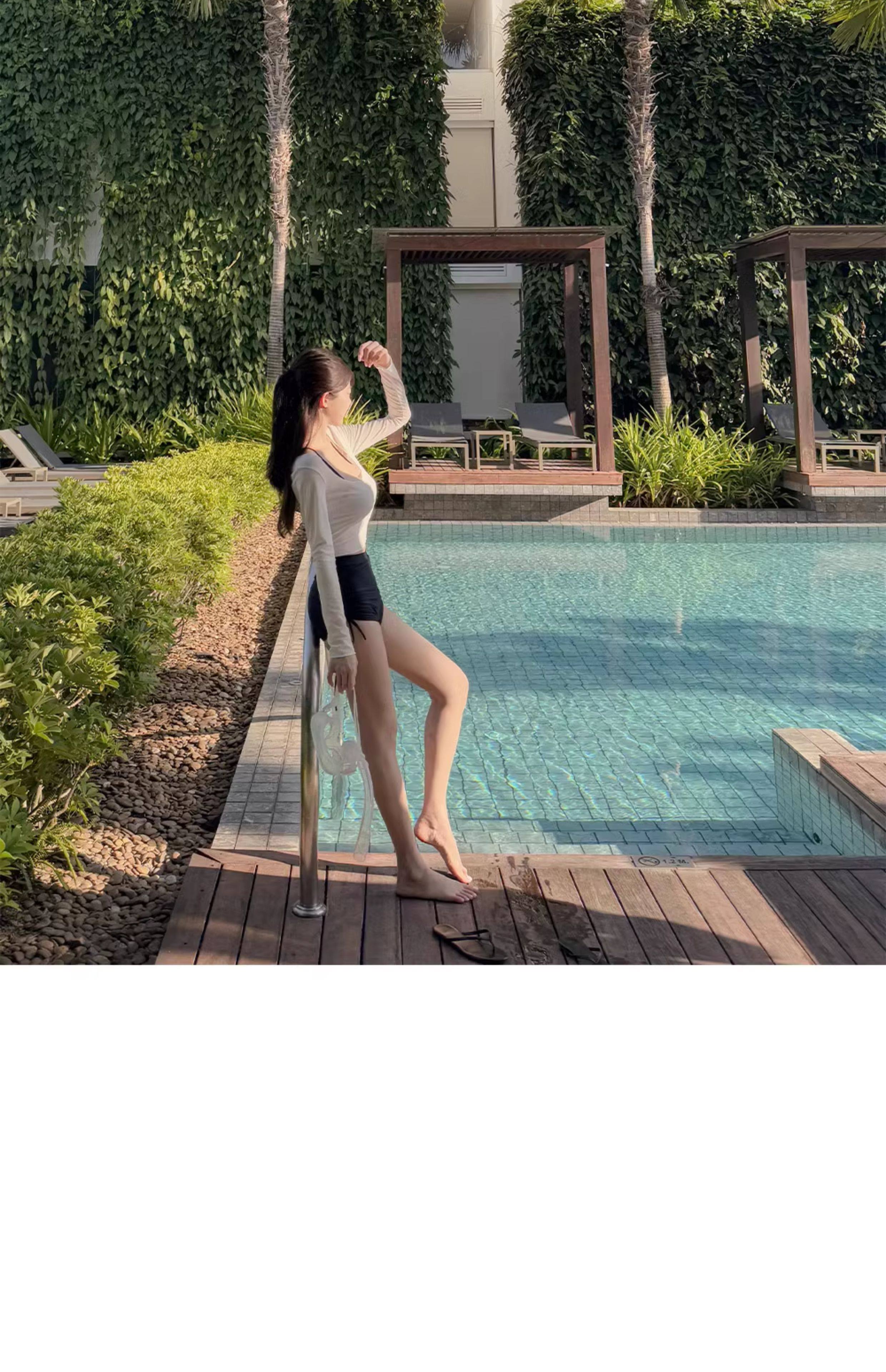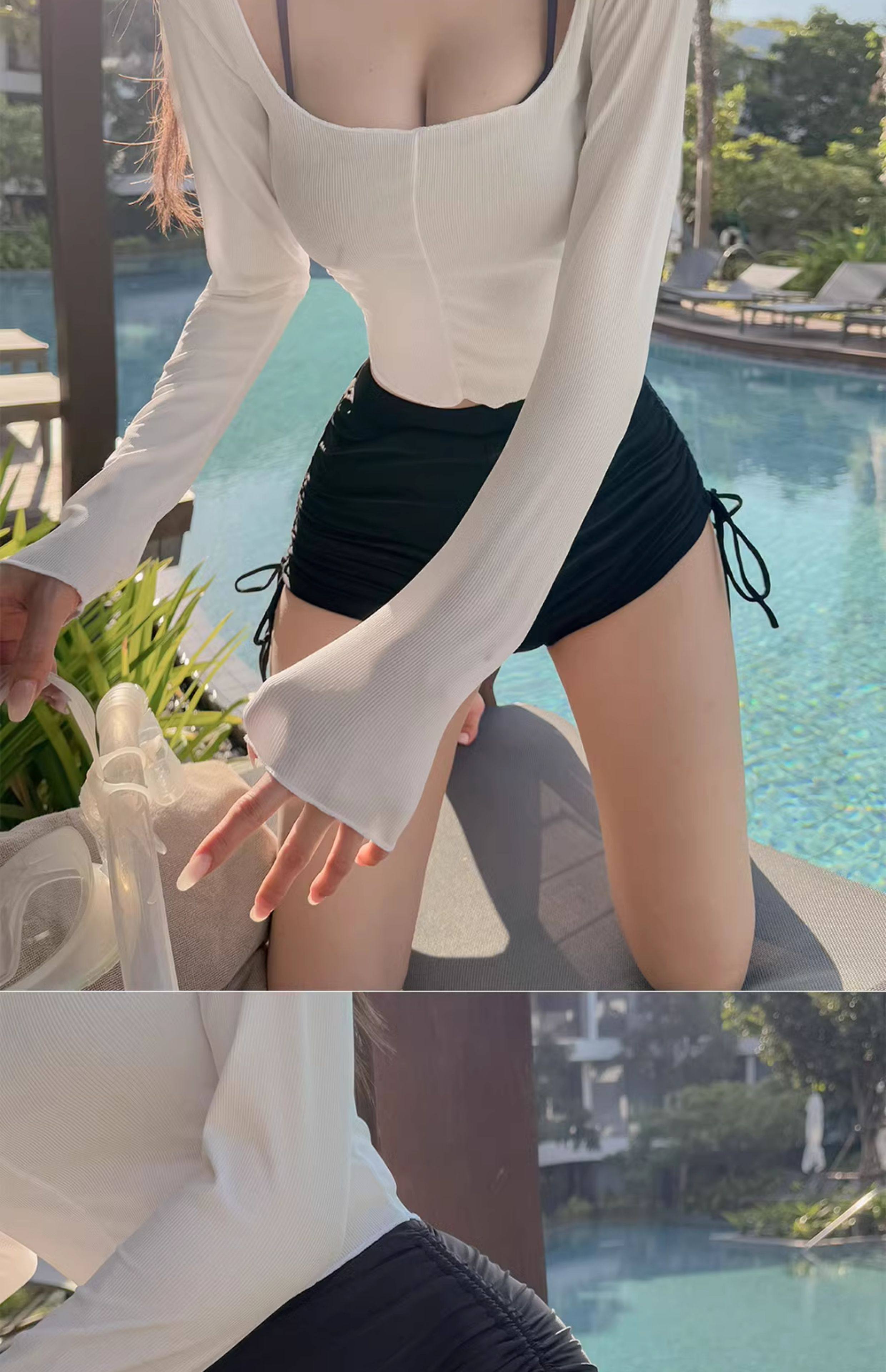泳衣女温泉新款性感显瘦纯欲风防晒透气长袖罩衫高腰比基尼三件套