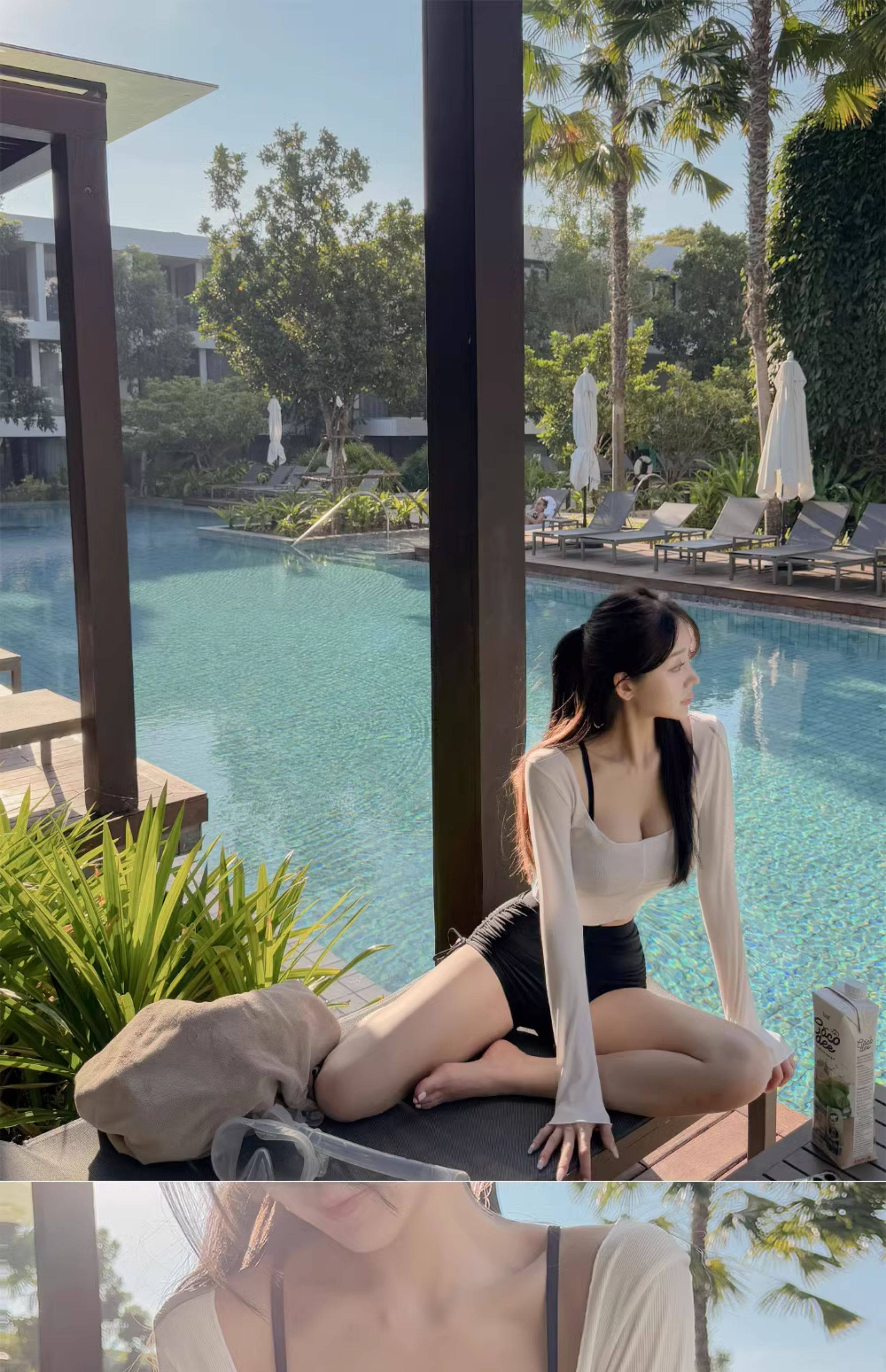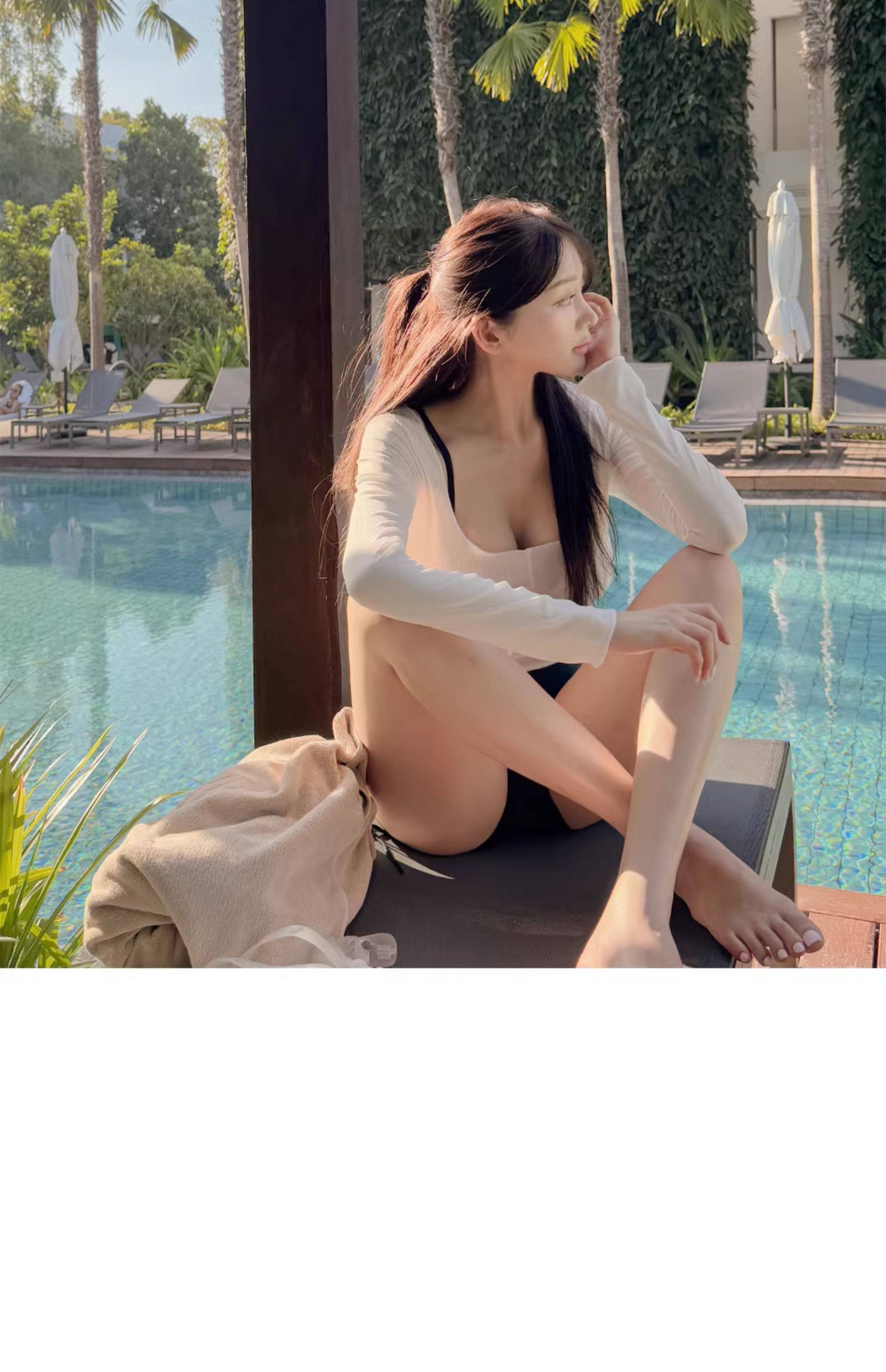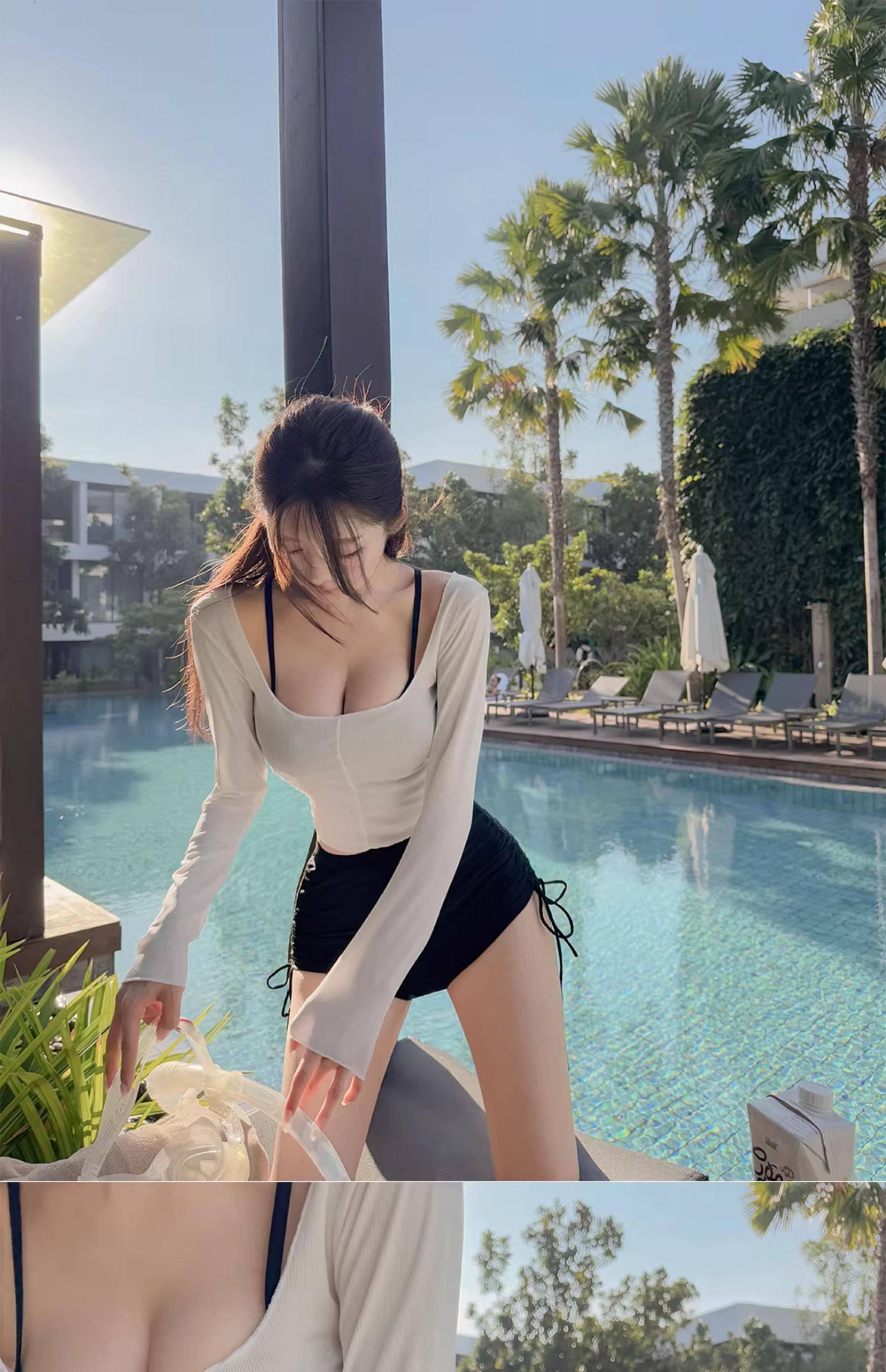 泳衣女温泉新款性感显瘦纯欲风防晒透气长袖罩衫高腰比基尼三件套