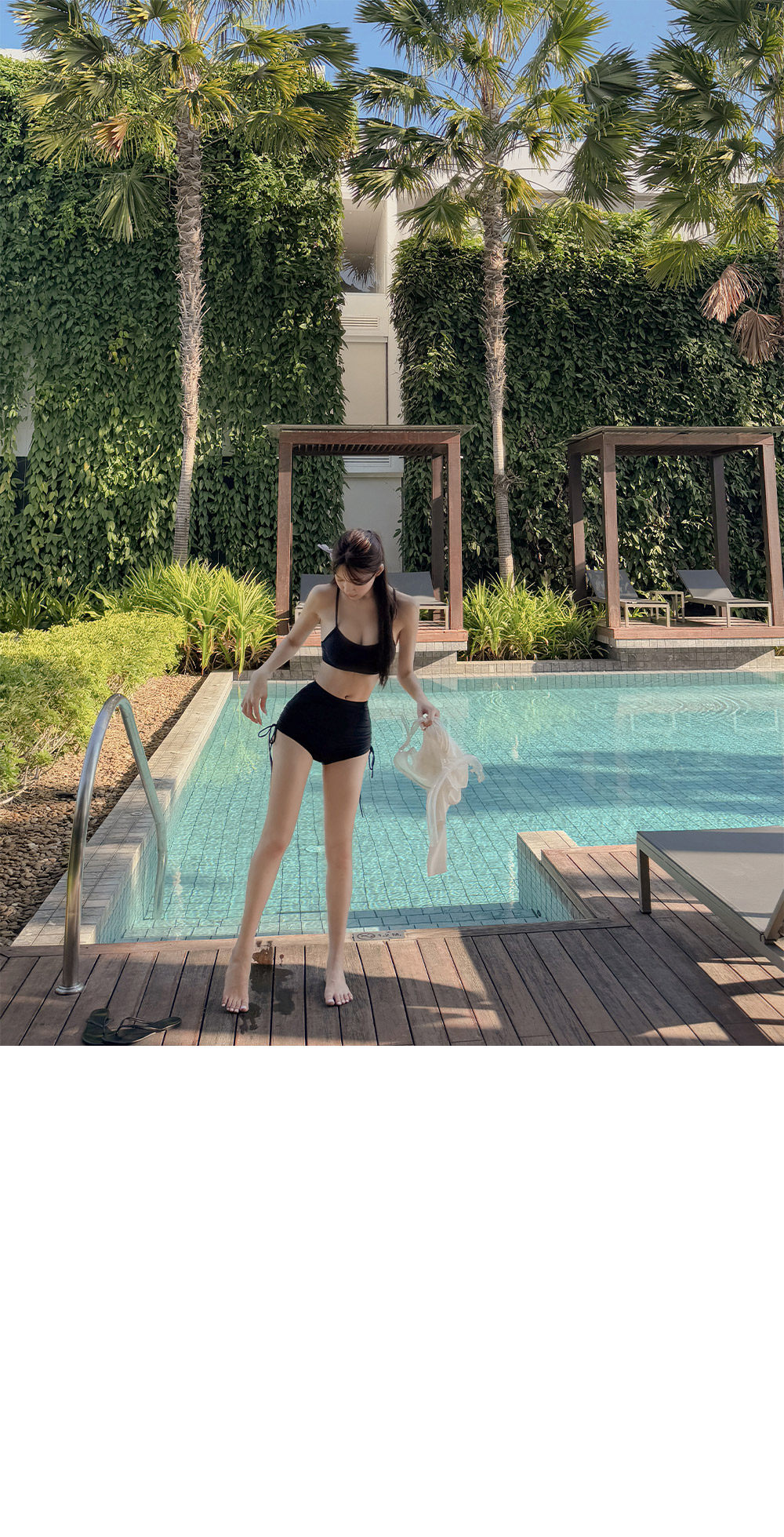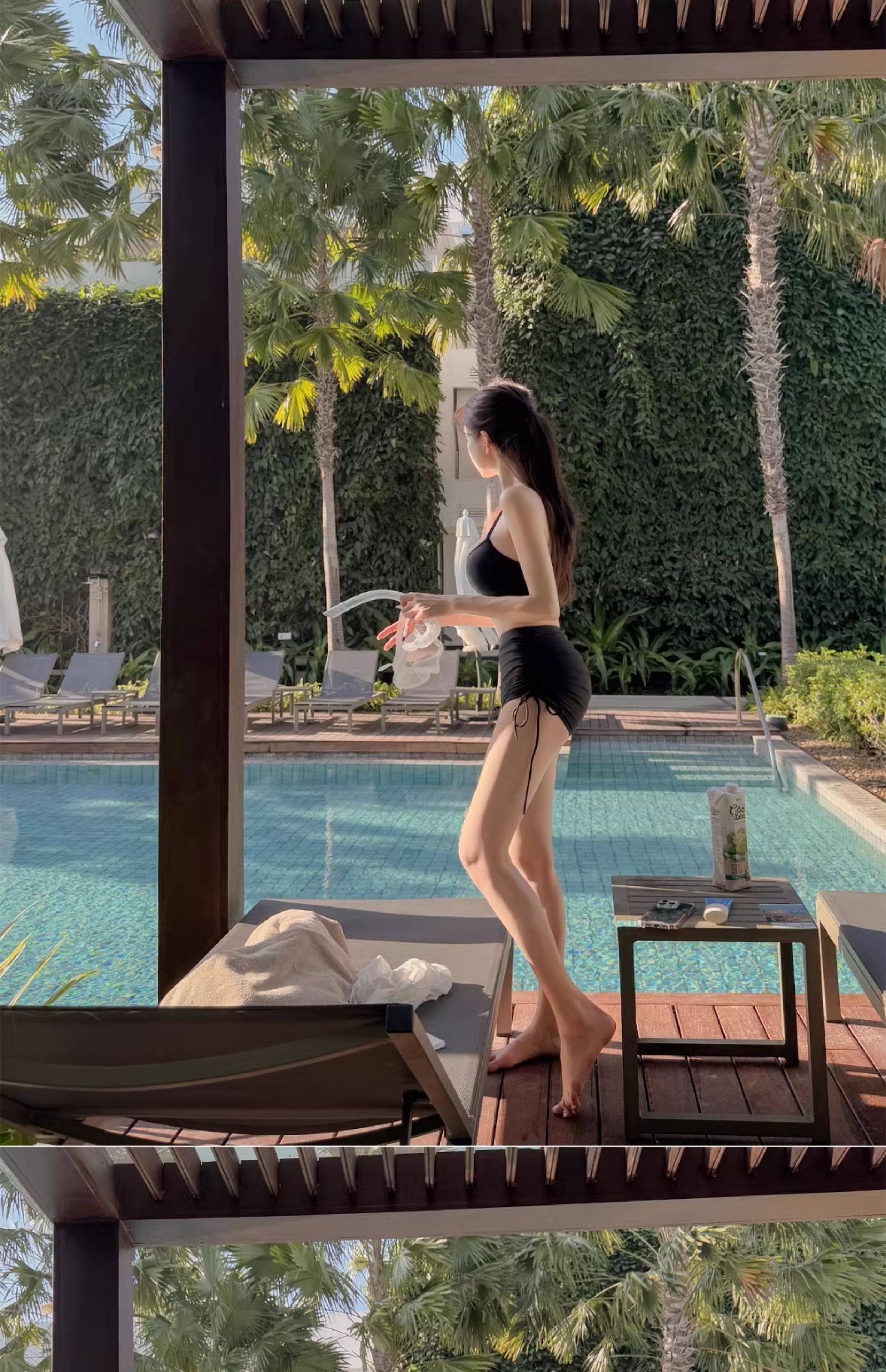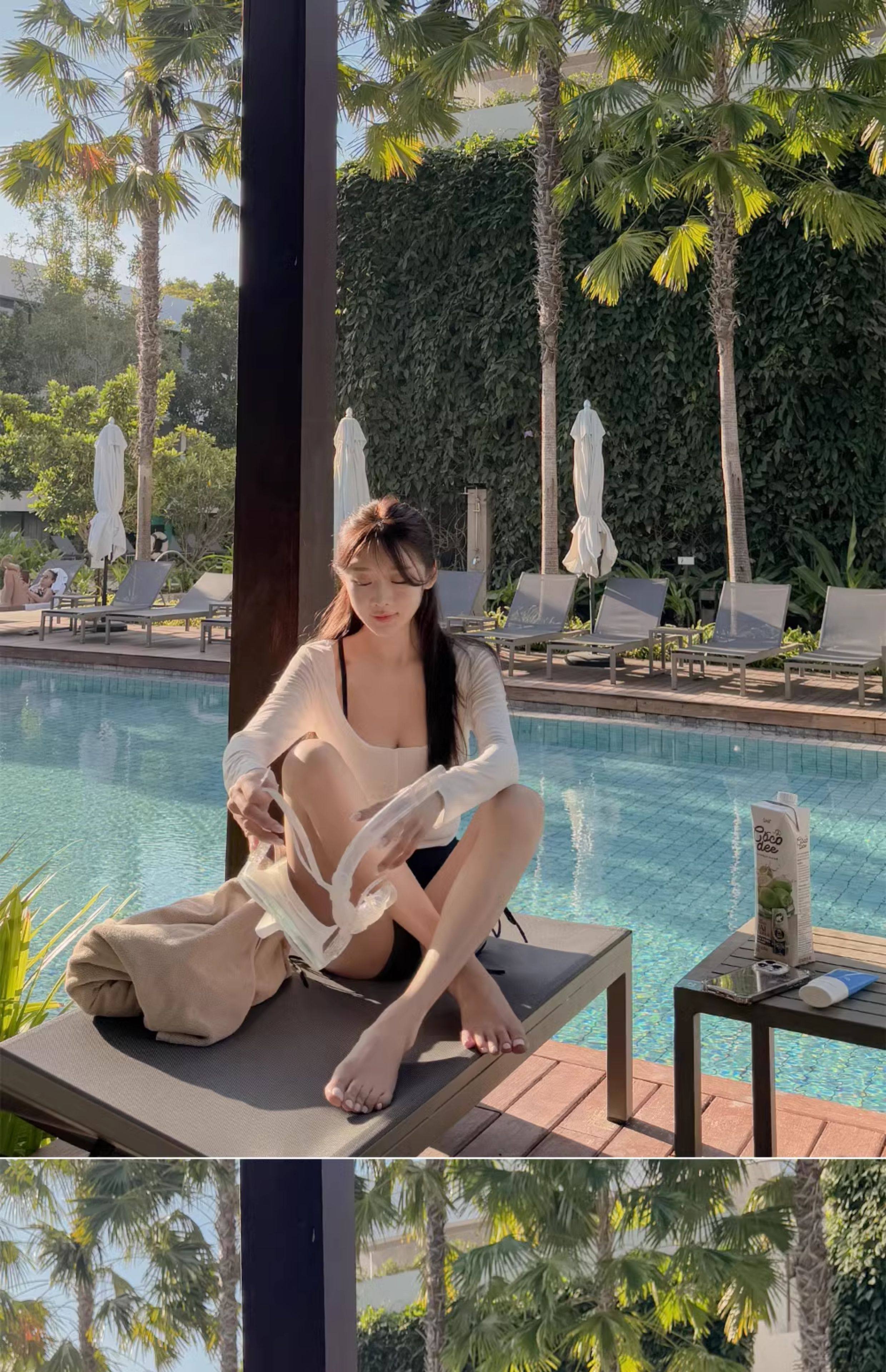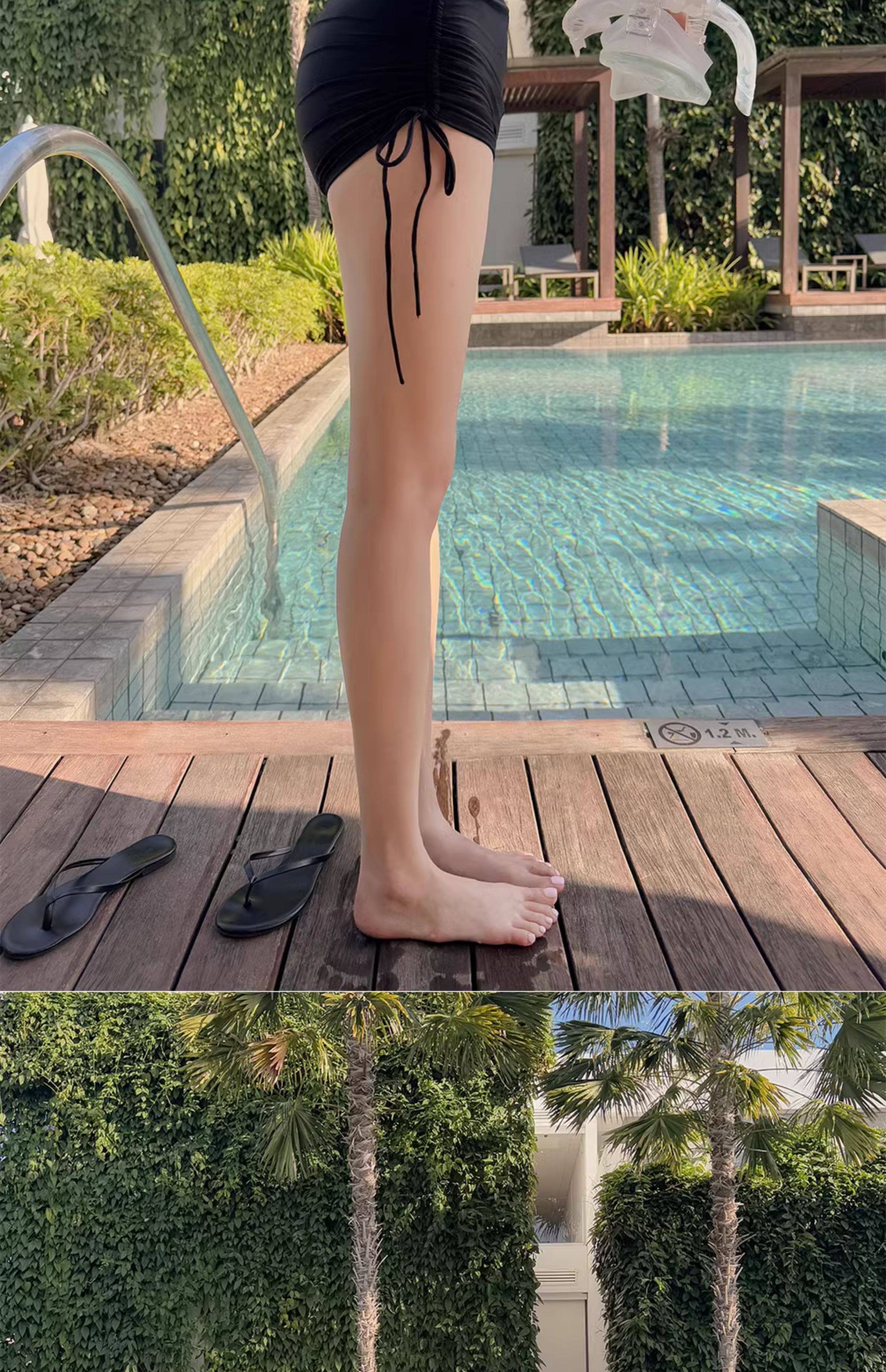 泳衣女温泉新款性感显瘦纯欲风防晒透气长袖罩衫高腰比基尼三件套