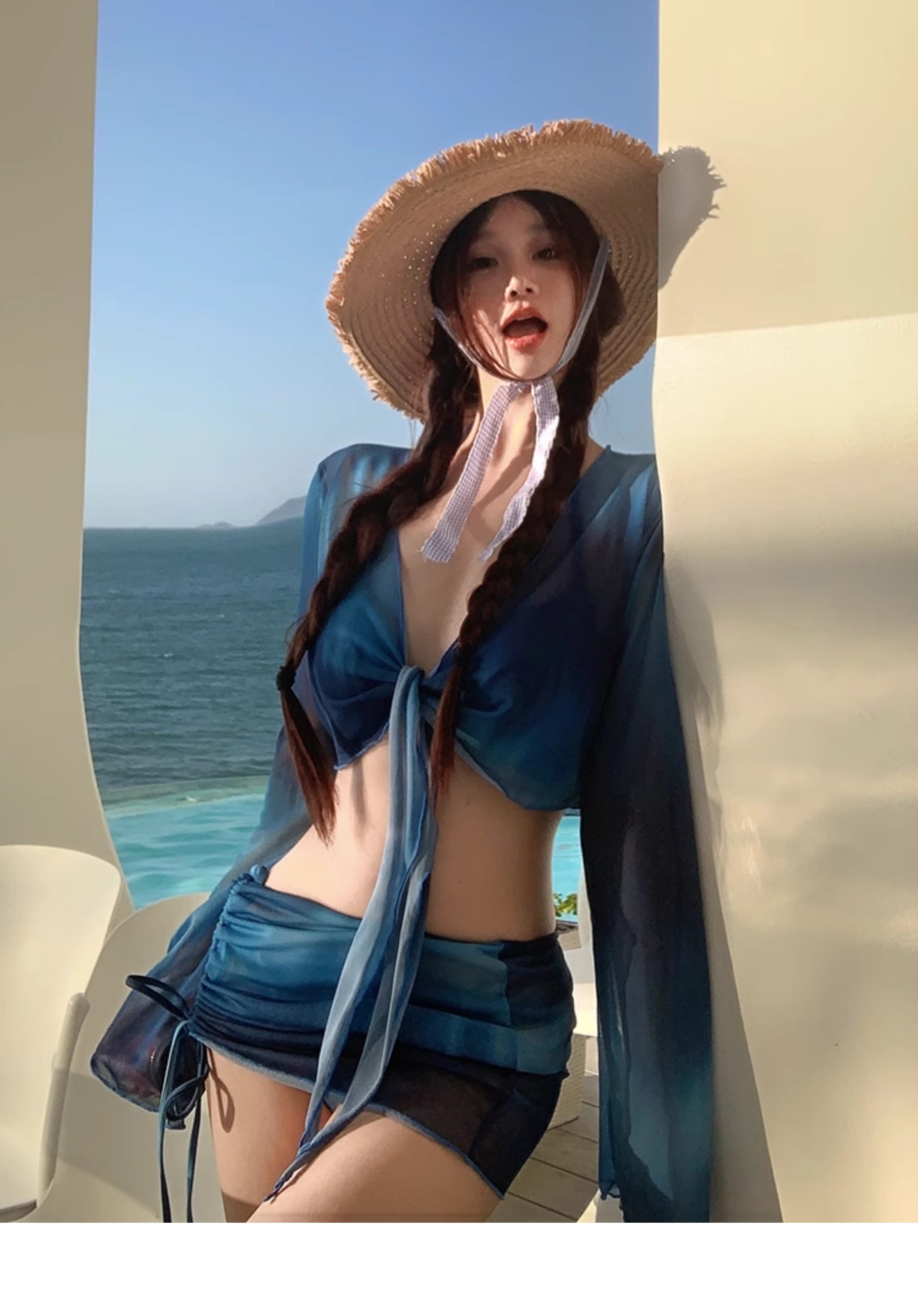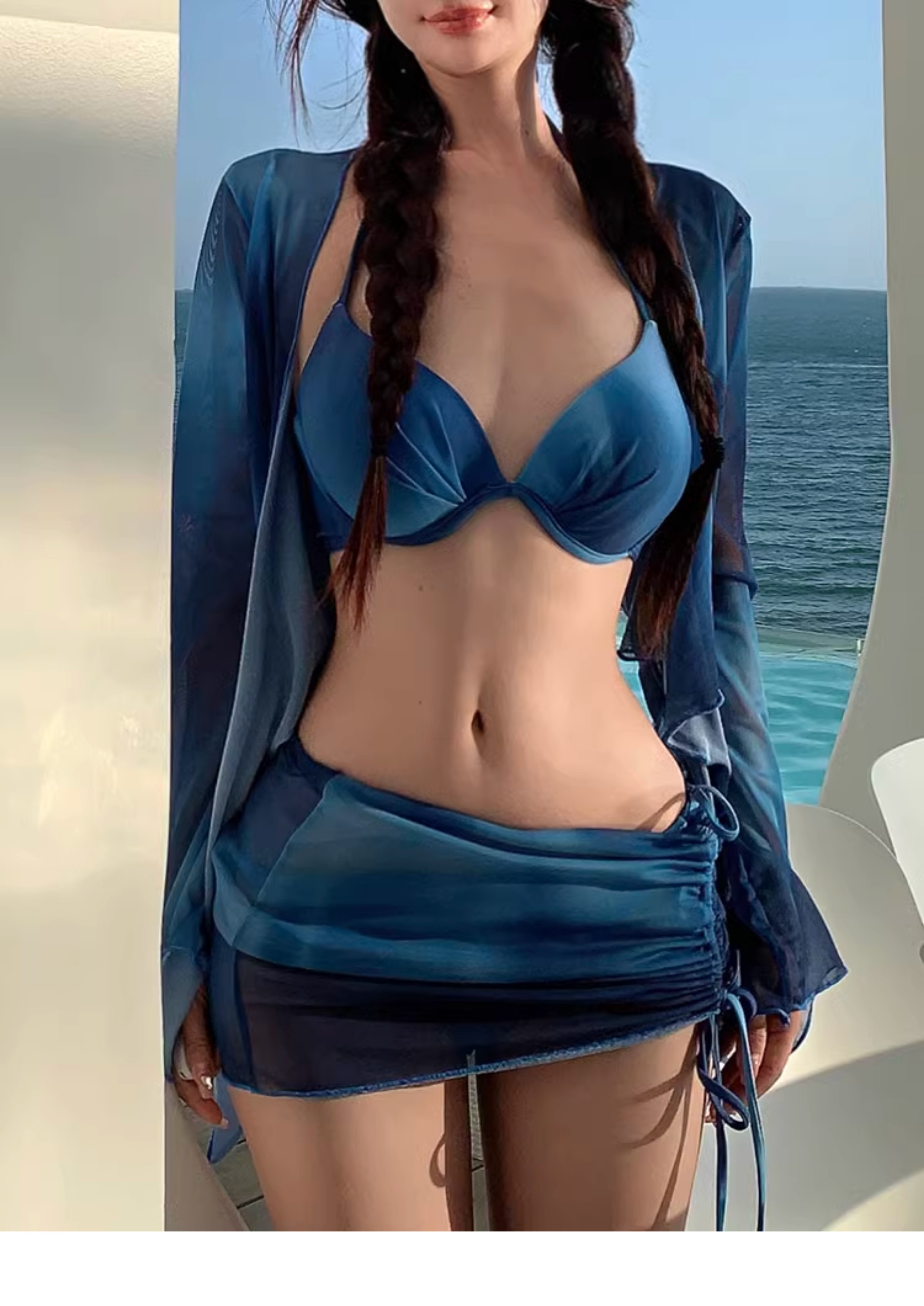 2025比基尼泳衣女新款四件套小胸钢托高级感分体泳装沙滩度假...