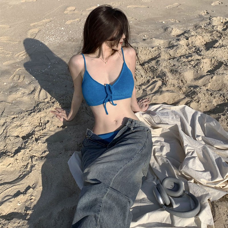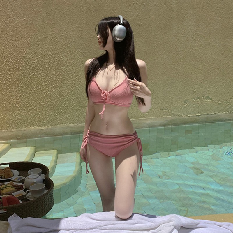 泳衣女2025新款毛料性感辣妹比基尼纯欲分体三点式小胸绑带b...