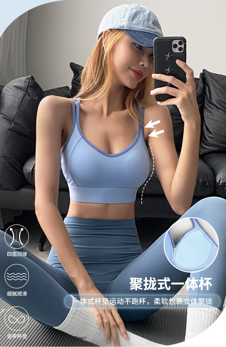 | 产品名称 : | 健身女孩新款运动内衣防震跑步瑜伽背心聚拢一体式专业普拉提文胸 |