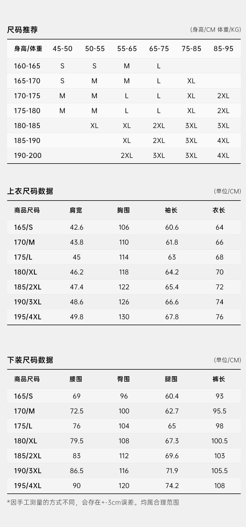 | 尺码: | S/165 M/170 L/175 XL/180 XXL/185 XXXL/190 XXXXL/195 |
