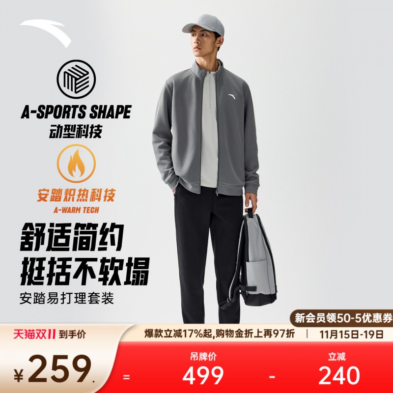 | 产品名称 : | 安踏易打理套装丨男士立领加绒运动外套长裤两件套冬季季运动服 |