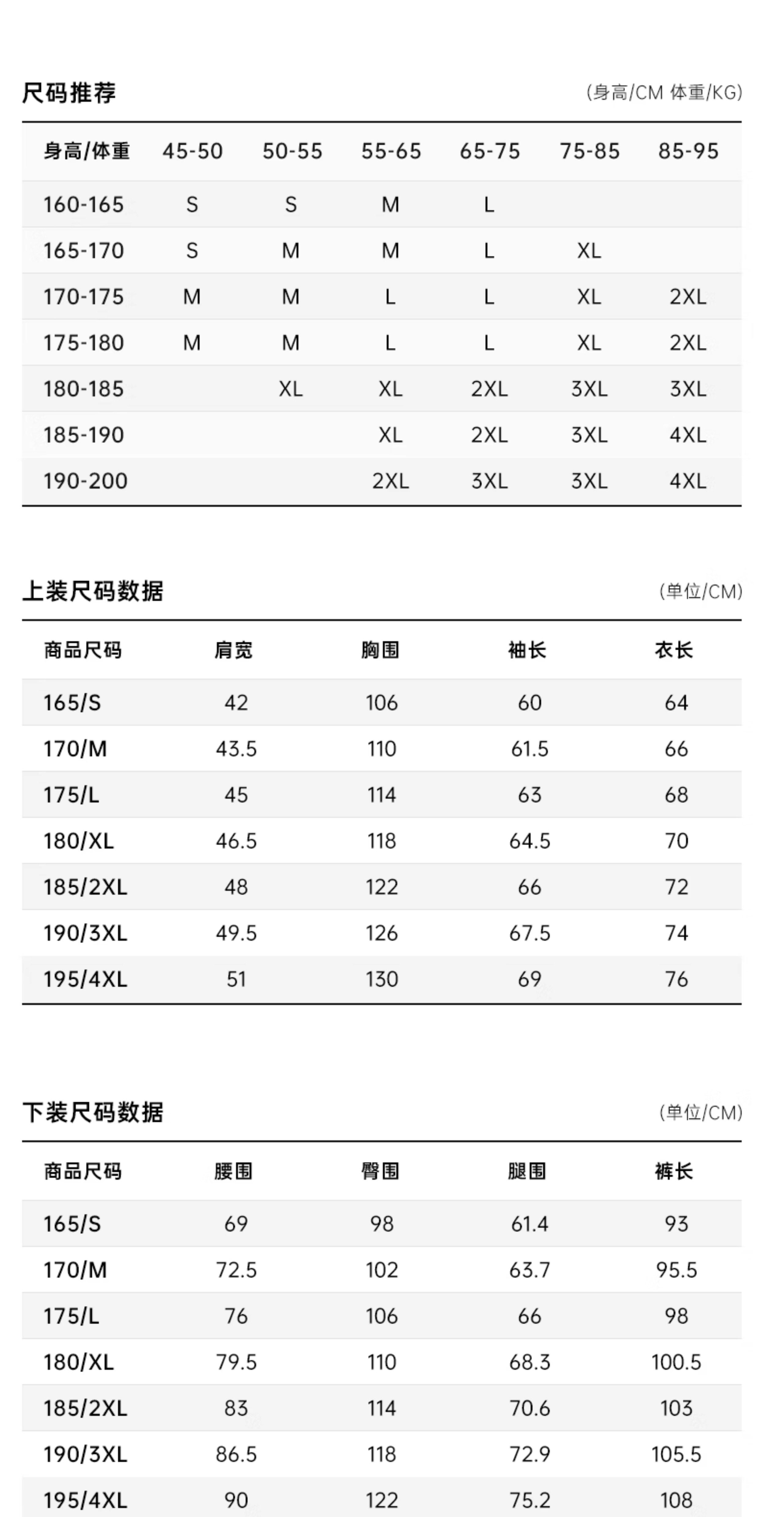 | 尺码: | S/165 M/170 L/175 XL/180 XXL/185 XXXL/190 XXXXL/195 |