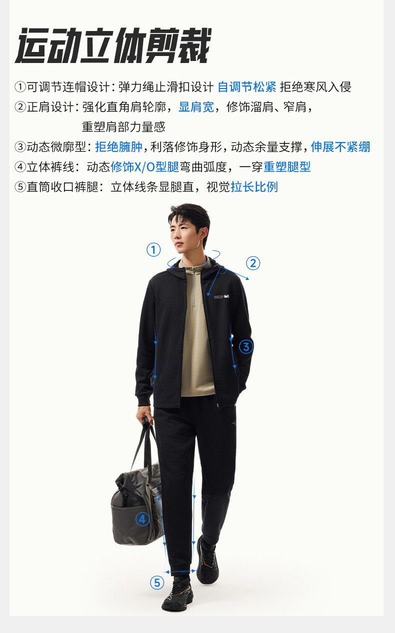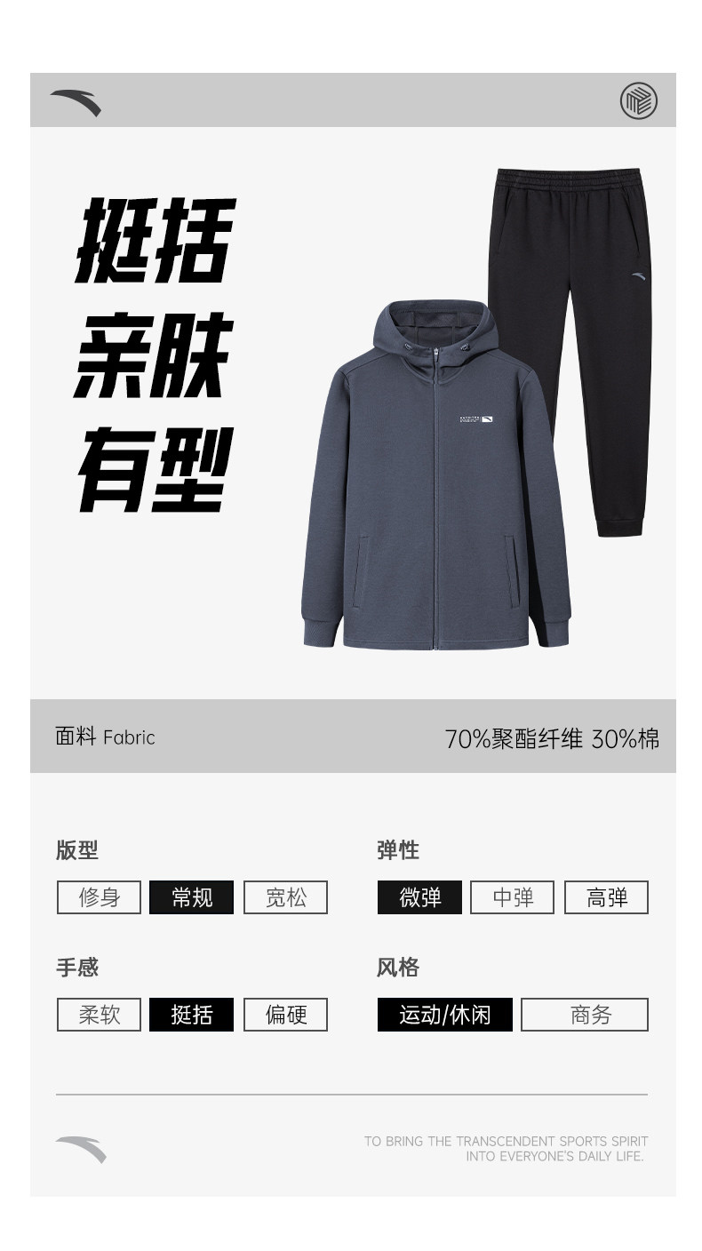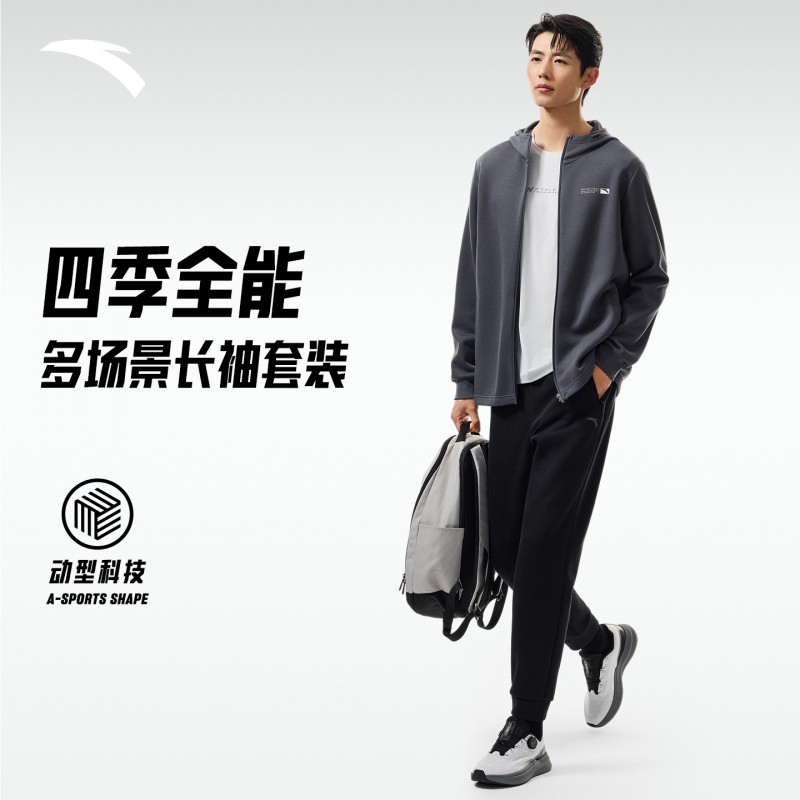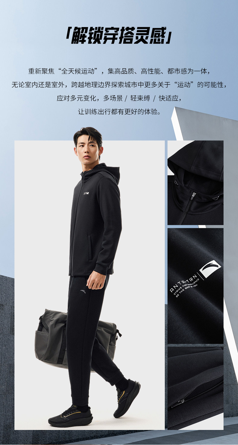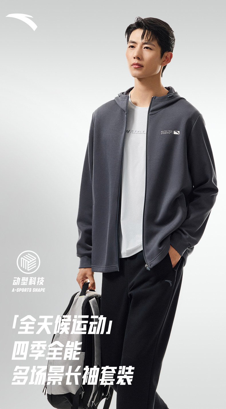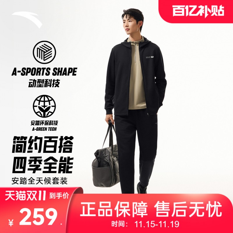 | 产品名称 : | 安踏针织运动套装男冬季新款连帽长袖开衫夹克上衣黑色长裤两件套 |