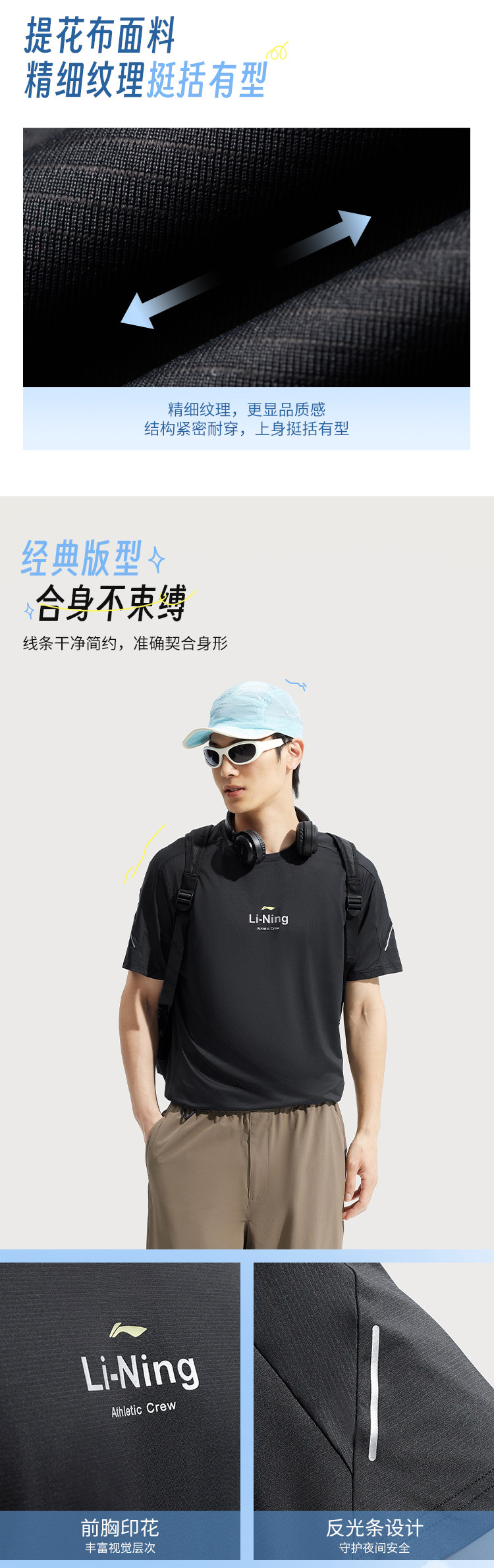 | 产品名称 : | 李宁速干衣男士夏季跑步上衣健身短袖跑步训练轻薄透气运动T恤男 |