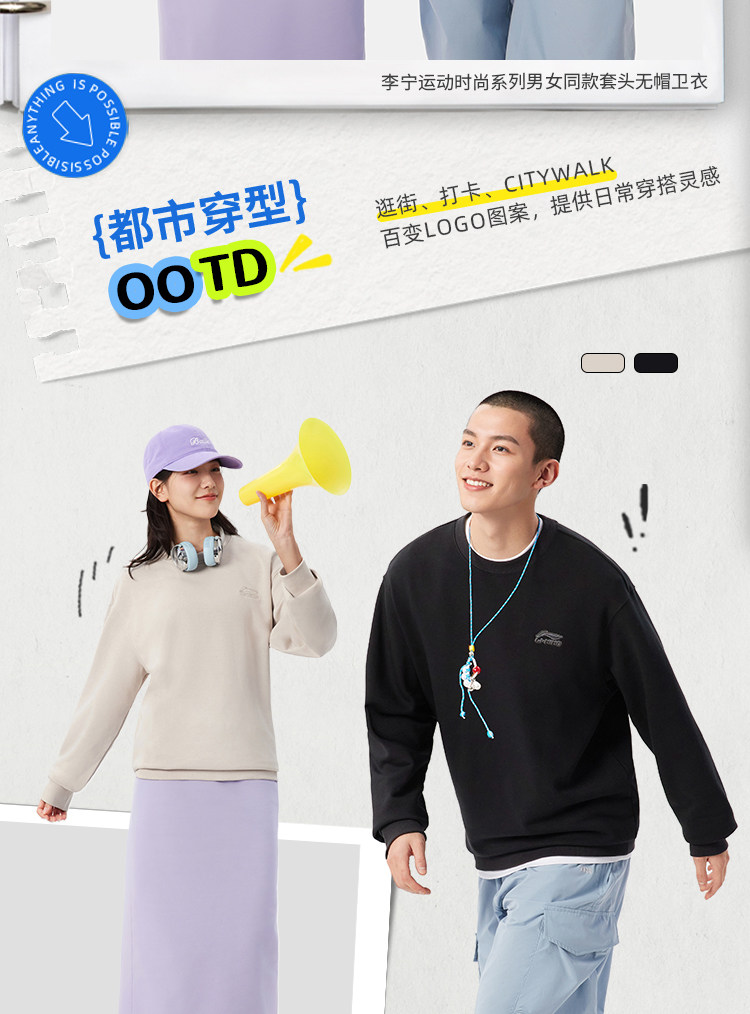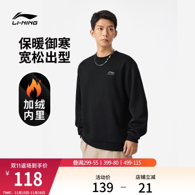 | 产品名称 : | 李宁加绒卫衣男士秋冬情侣圆领套头衫黑色上衣宽松长袖运动服女款 |