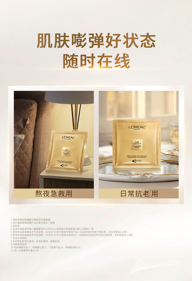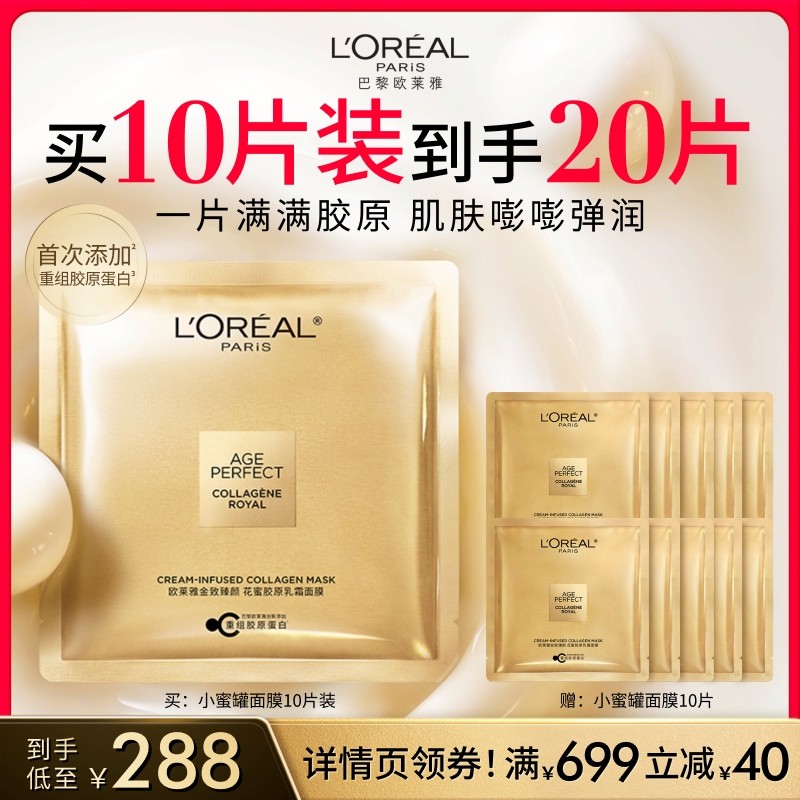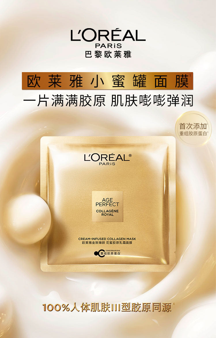 | 欧莱雅单品: | 欧莱雅金致臻颜花蜜胶原乳霜面膜 |