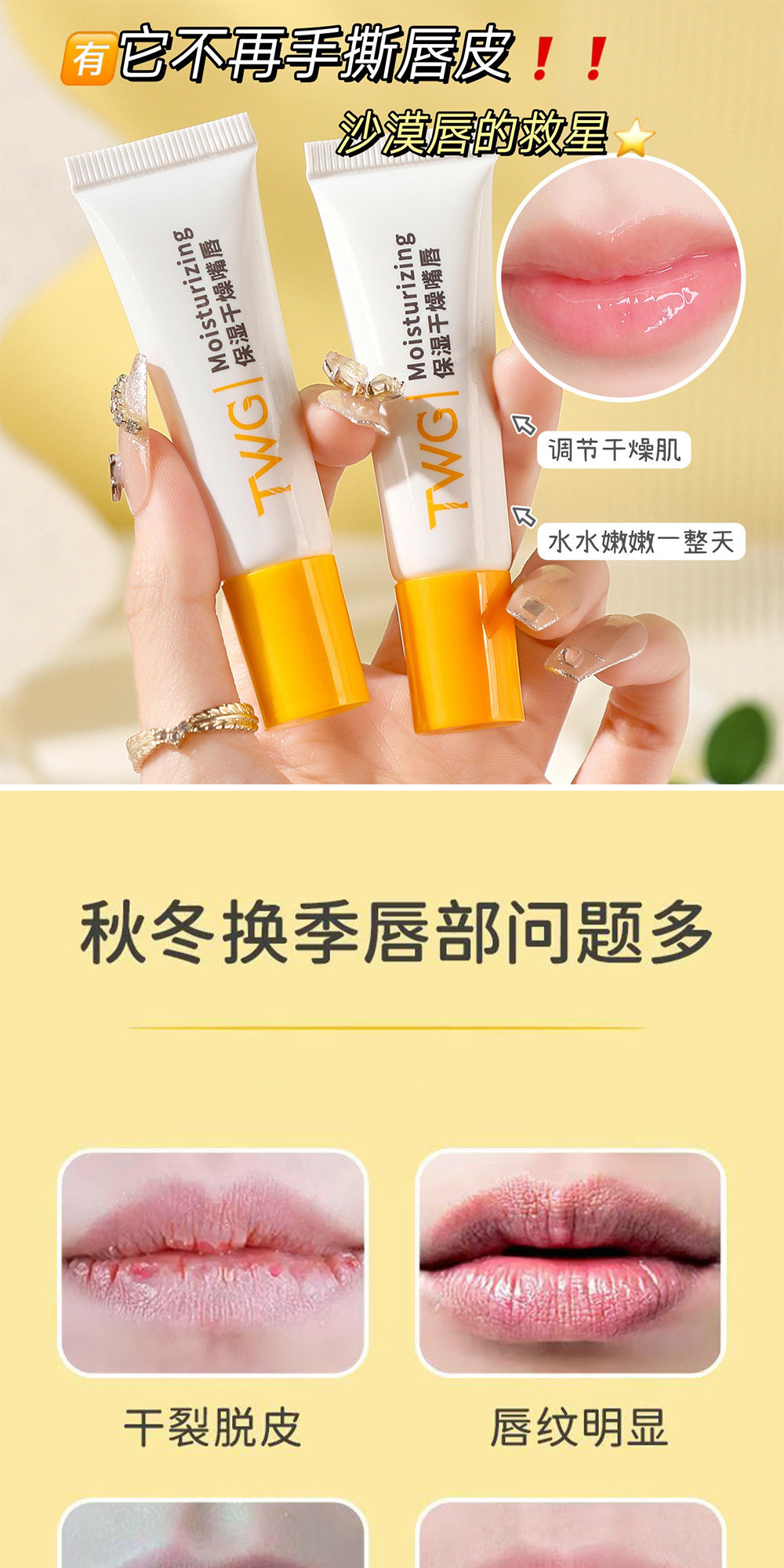 TWG保湿润唇膏男女舒缓修护唇膏清爽保湿滋润补水去死皮防干裂