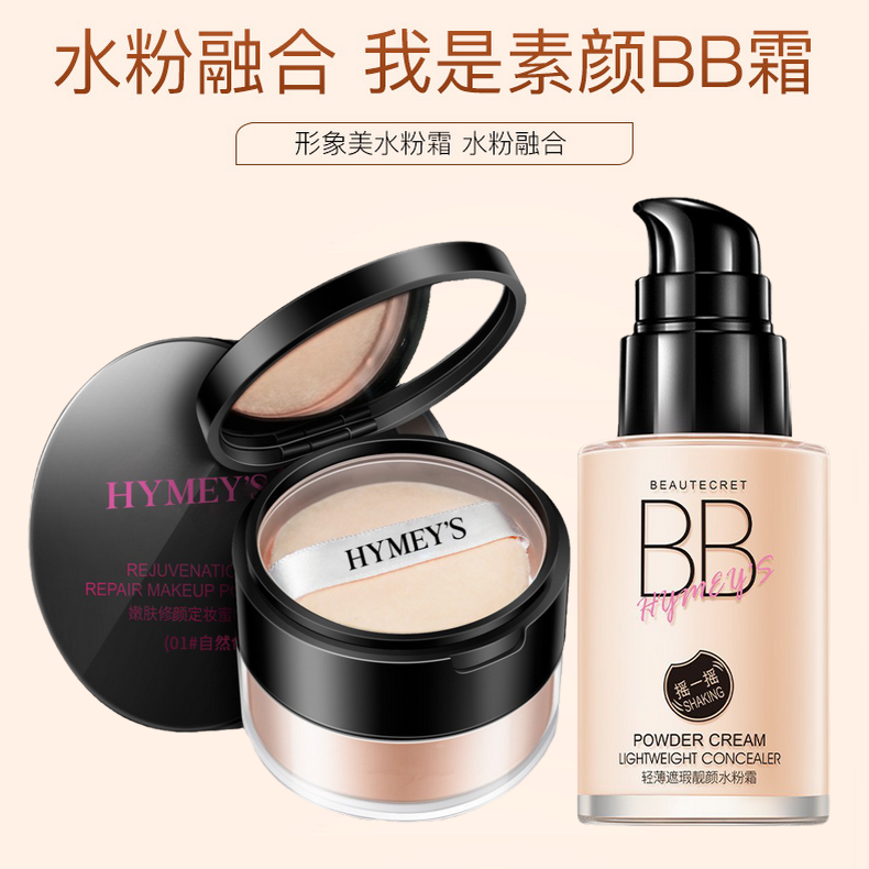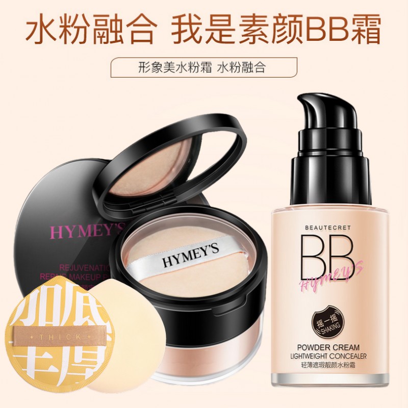 【浅肤色】BB霜+定妆粉+超大粉扑XL黄