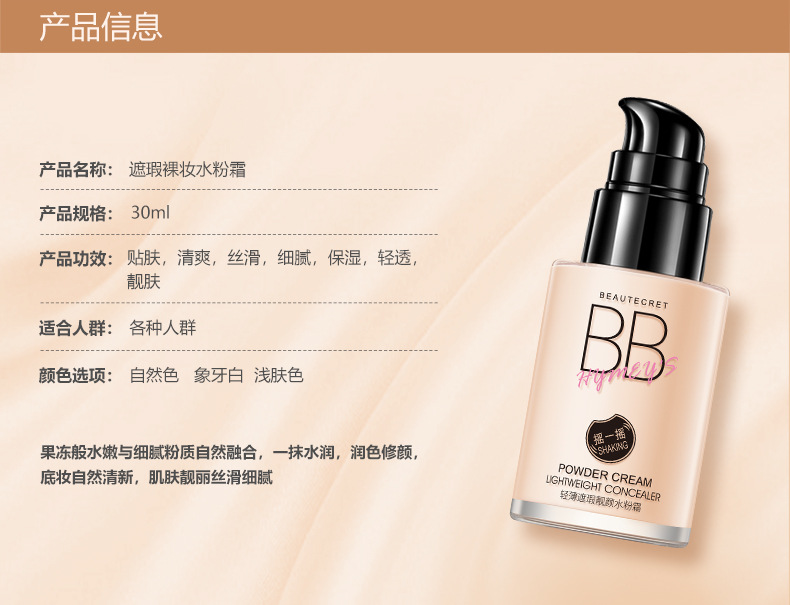 【BB霜+定妆粉】bb霜隔离遮瑕保湿粉底液控油防水气垫BB霜...