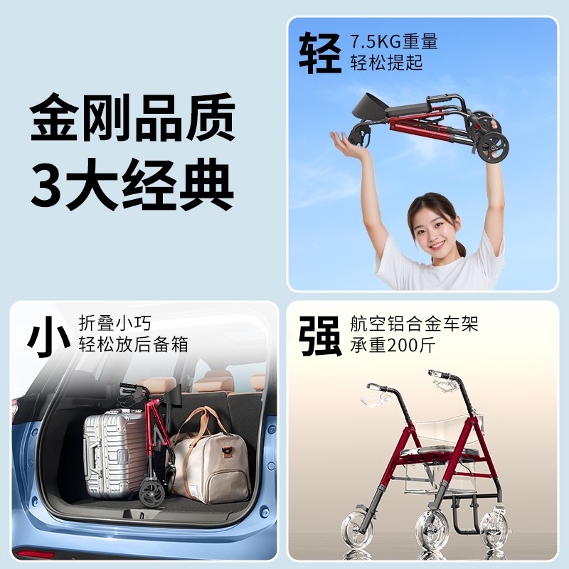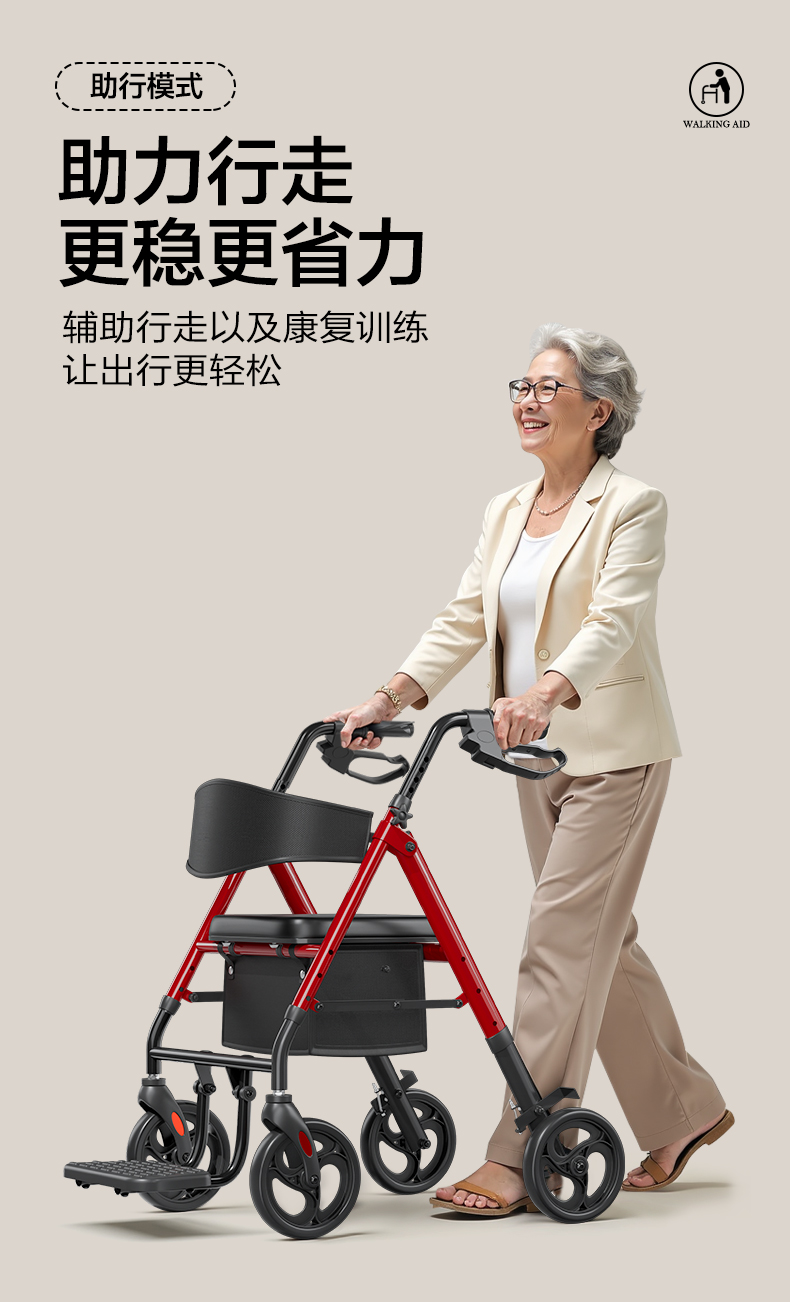 | 产品名称 : | 德国康倍星老年人专用行走助行器辅助助步手推代步车可推可坐轮椅 |