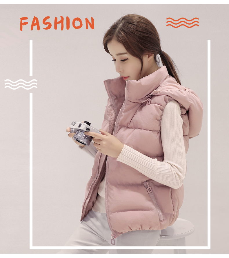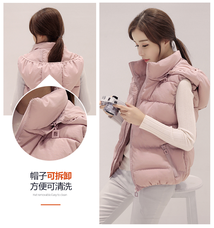2025秋冬新款羽绒棉马甲女短款学生拆帽马夹保暖韩版显瘦背心...