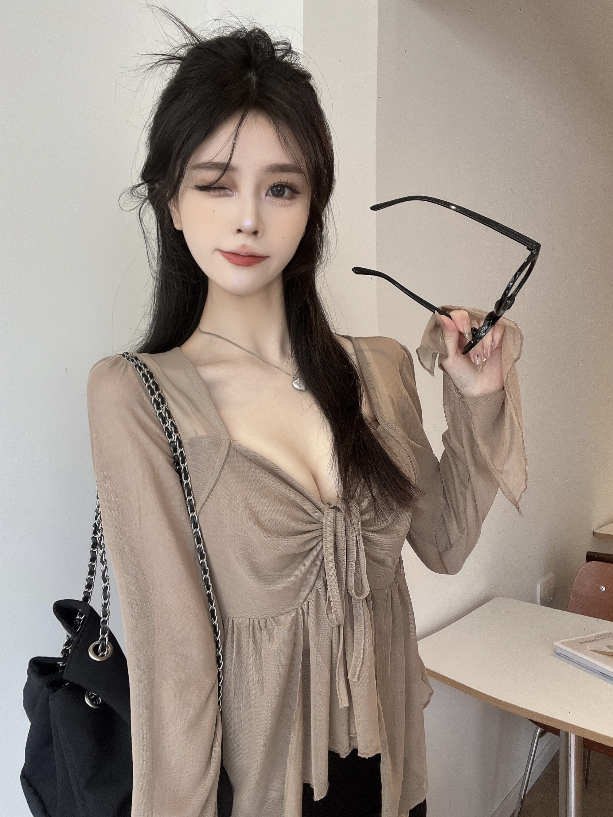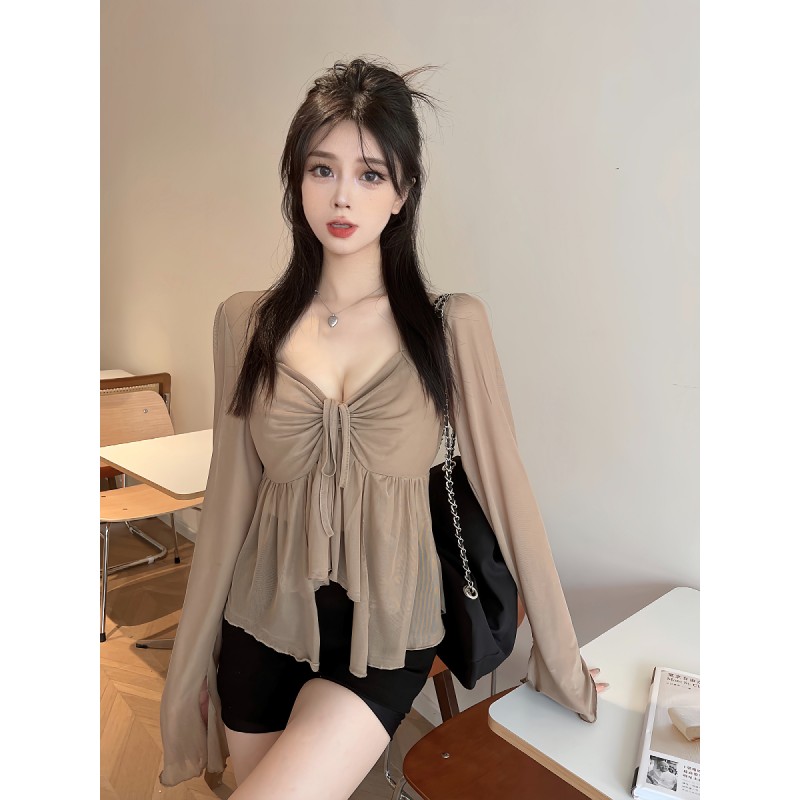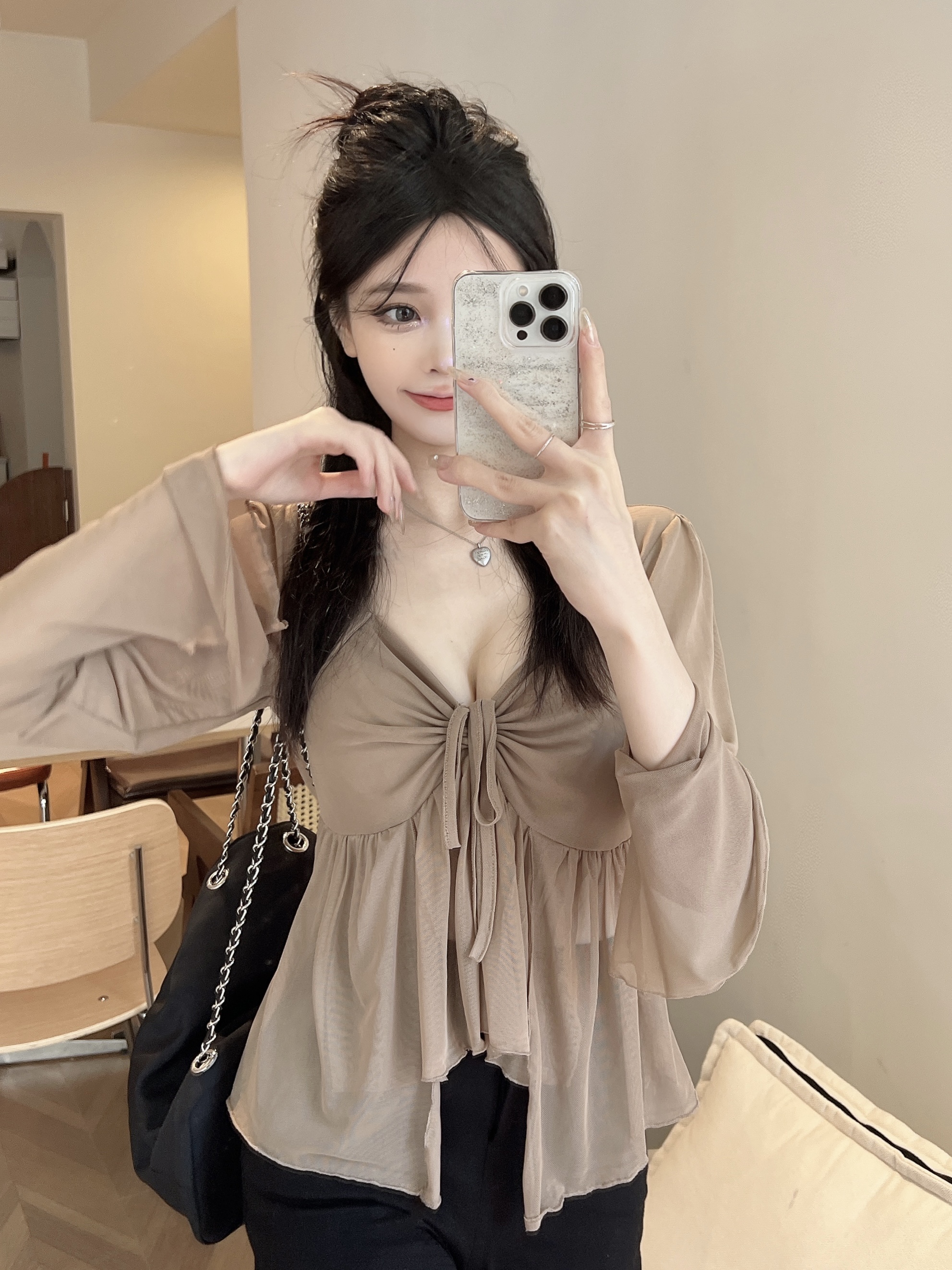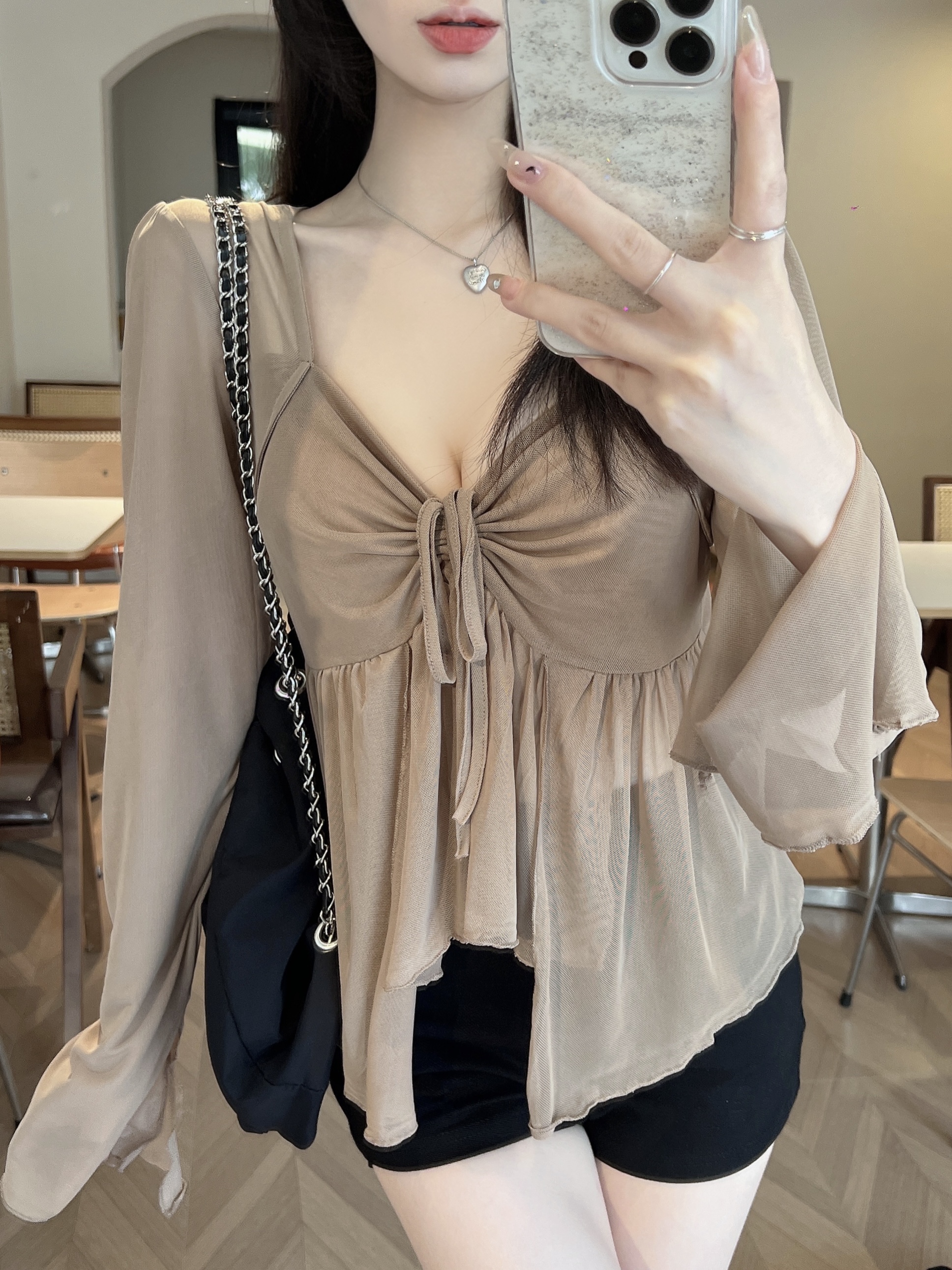 咖色上衣+吊带