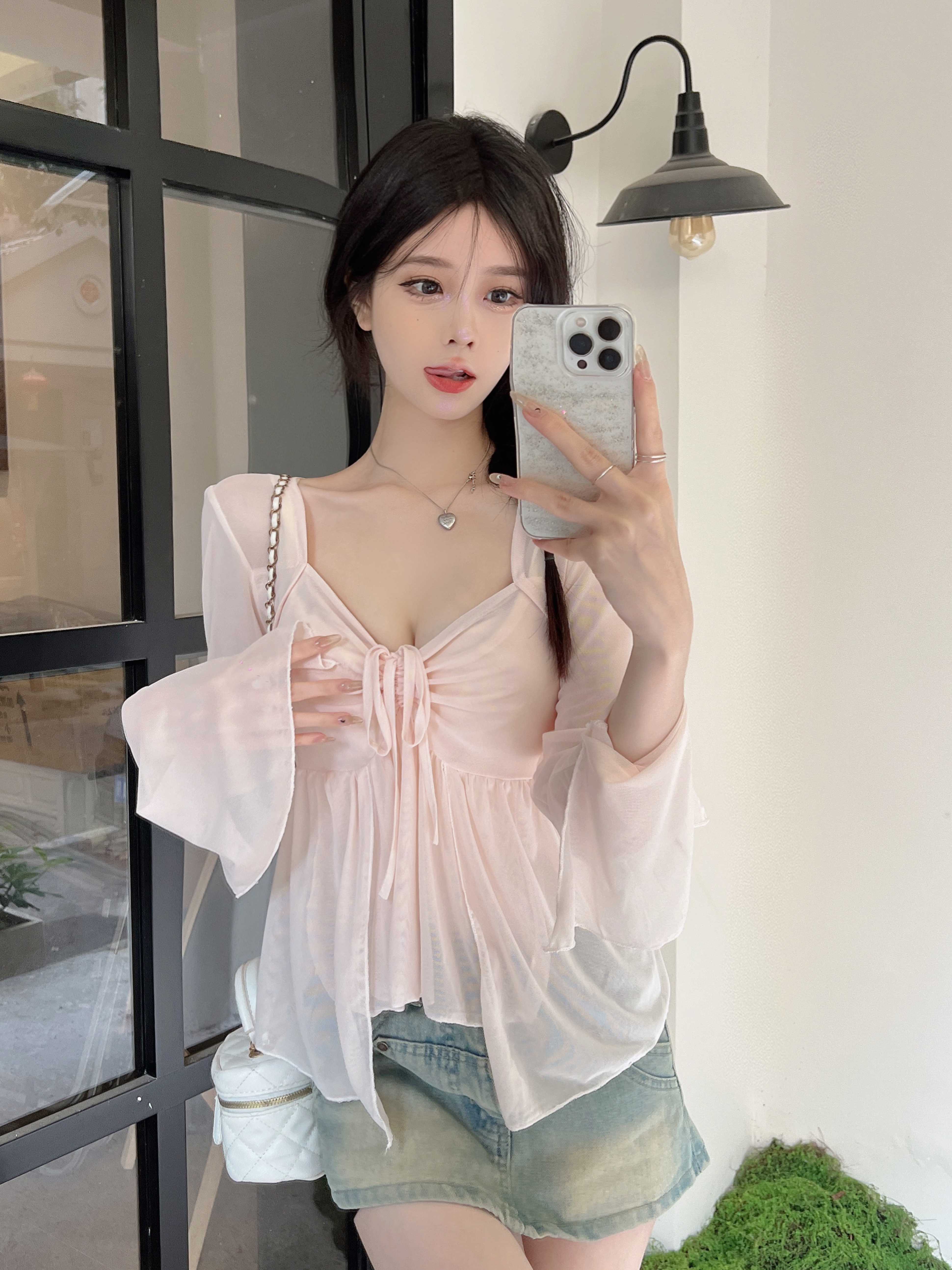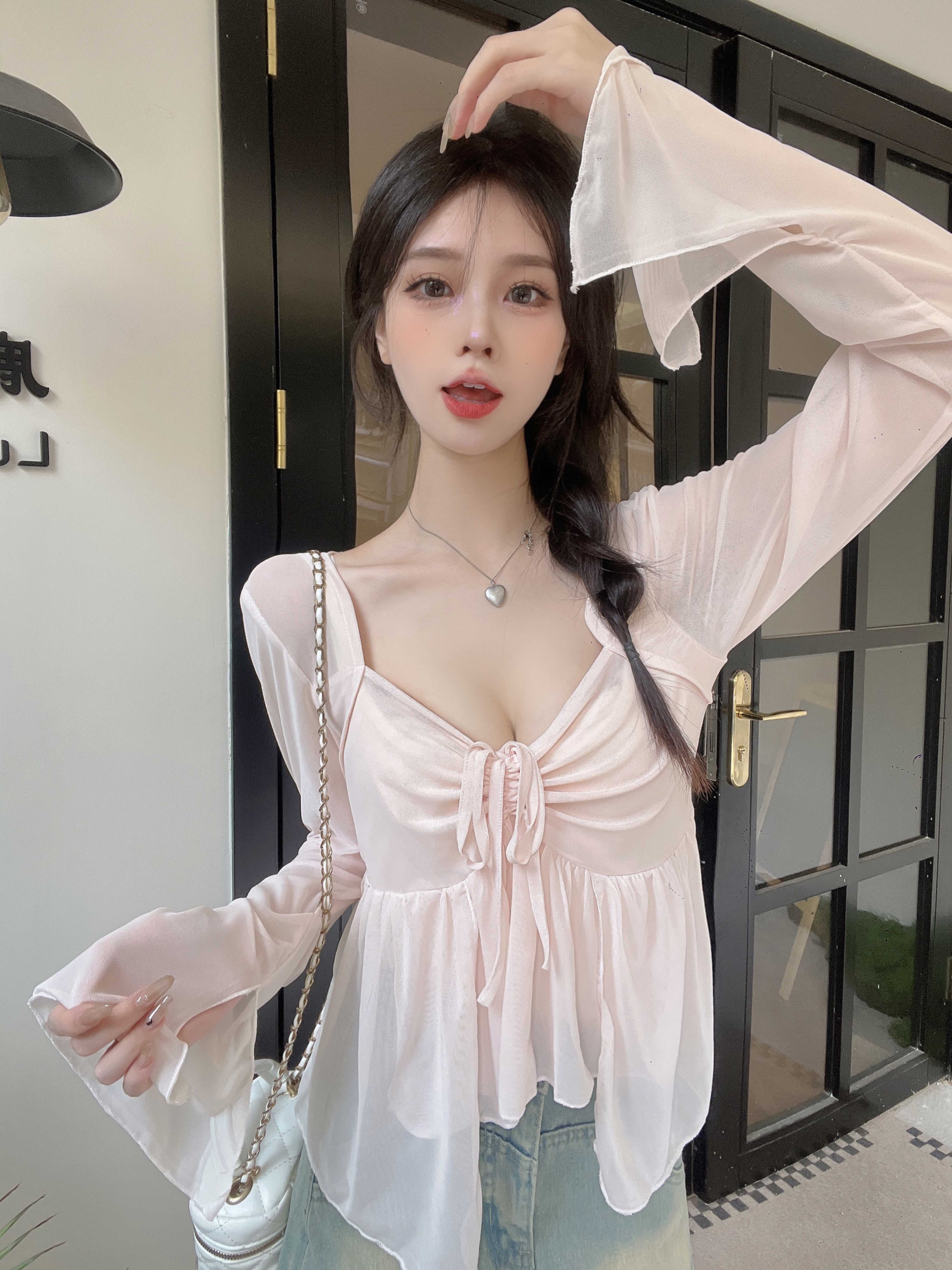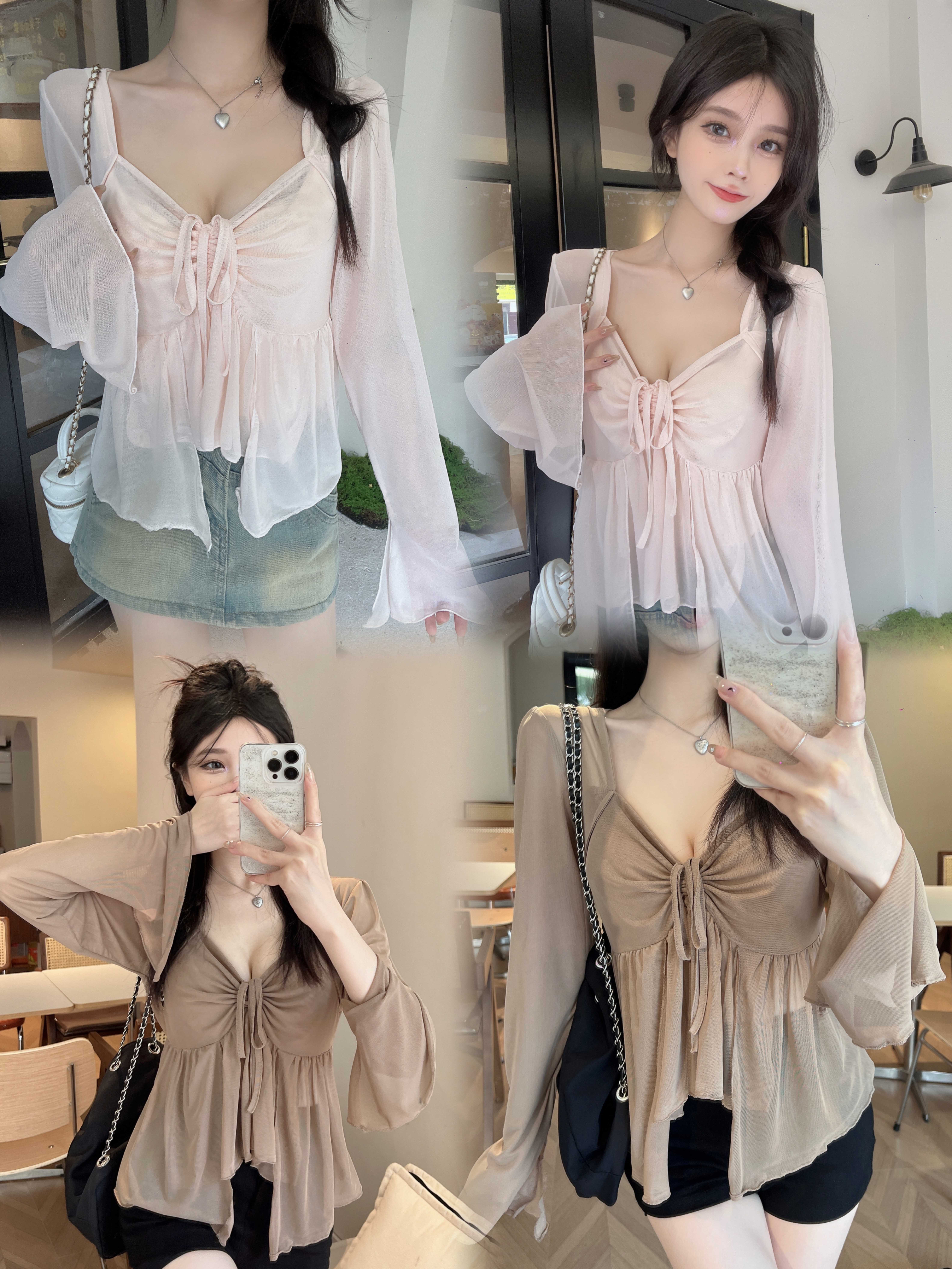 杏色上衣+吊带