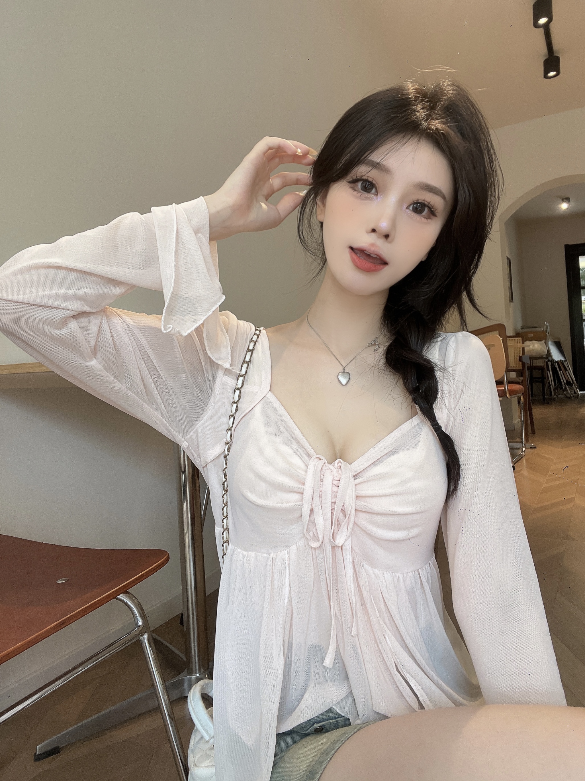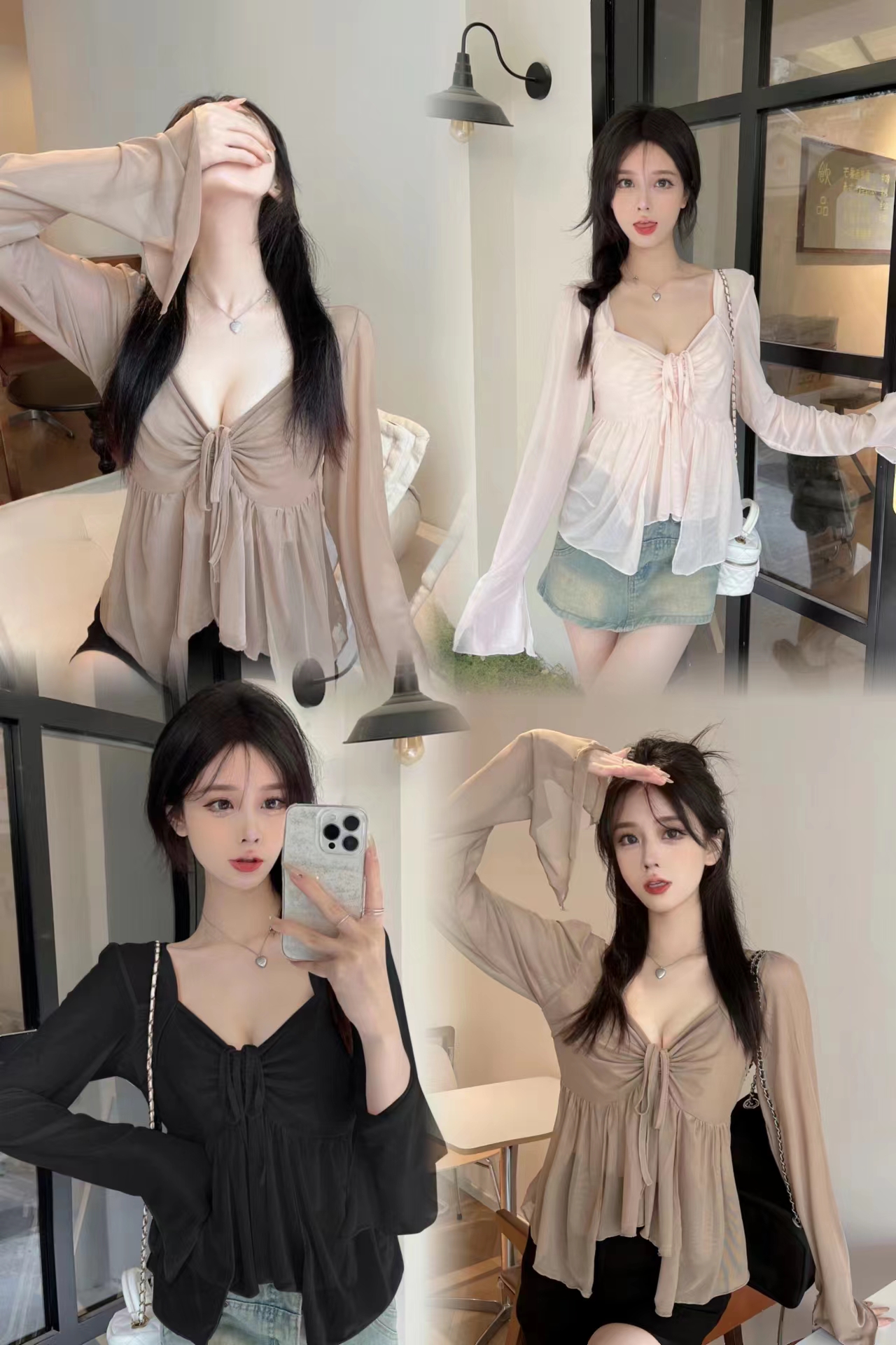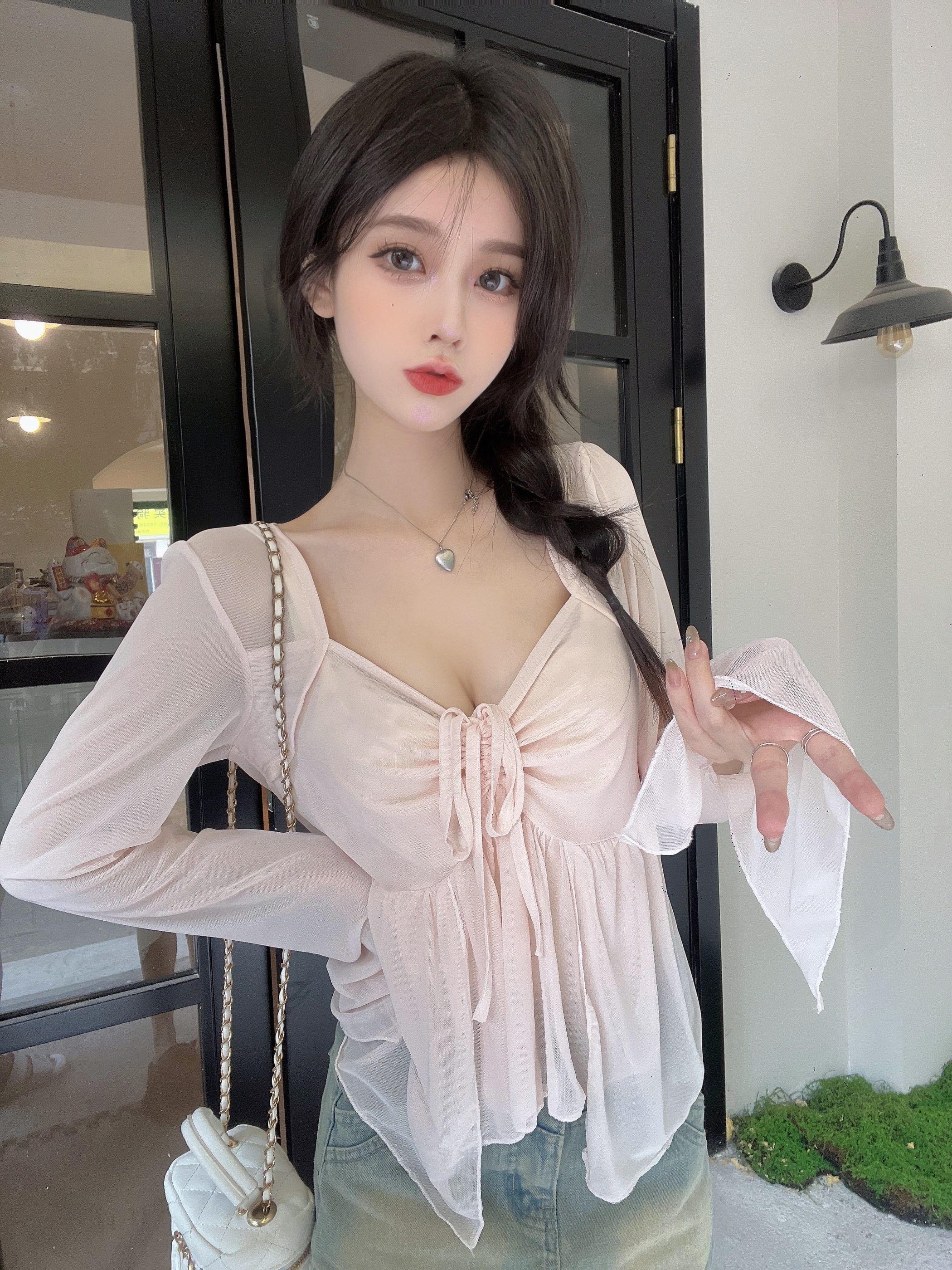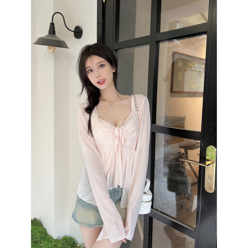 杏色上衣+吊带