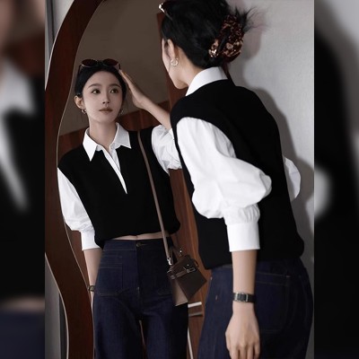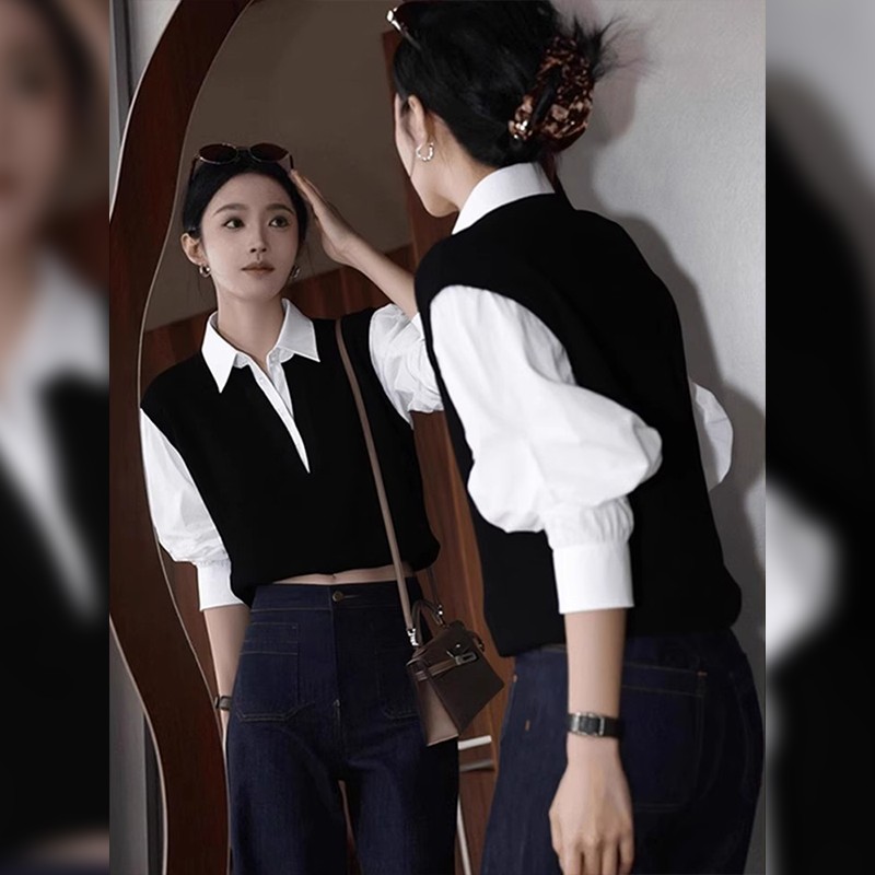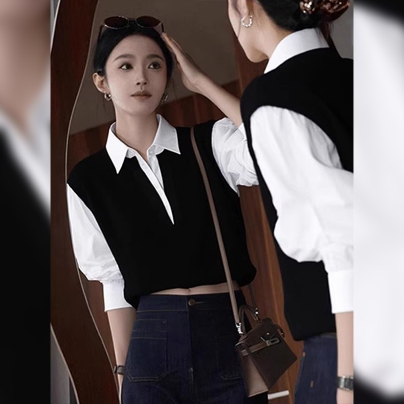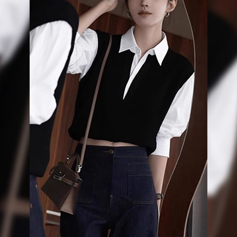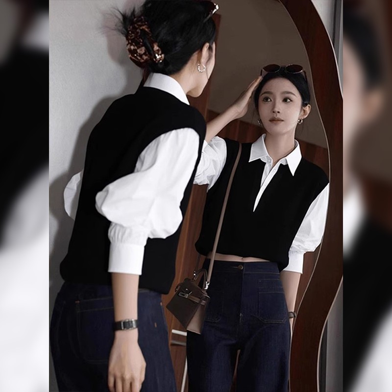 | 产品名称 : | 复古撞色假两件polo衬衫女早秋巨好看独特漂亮法式小资赫本风上衣 |