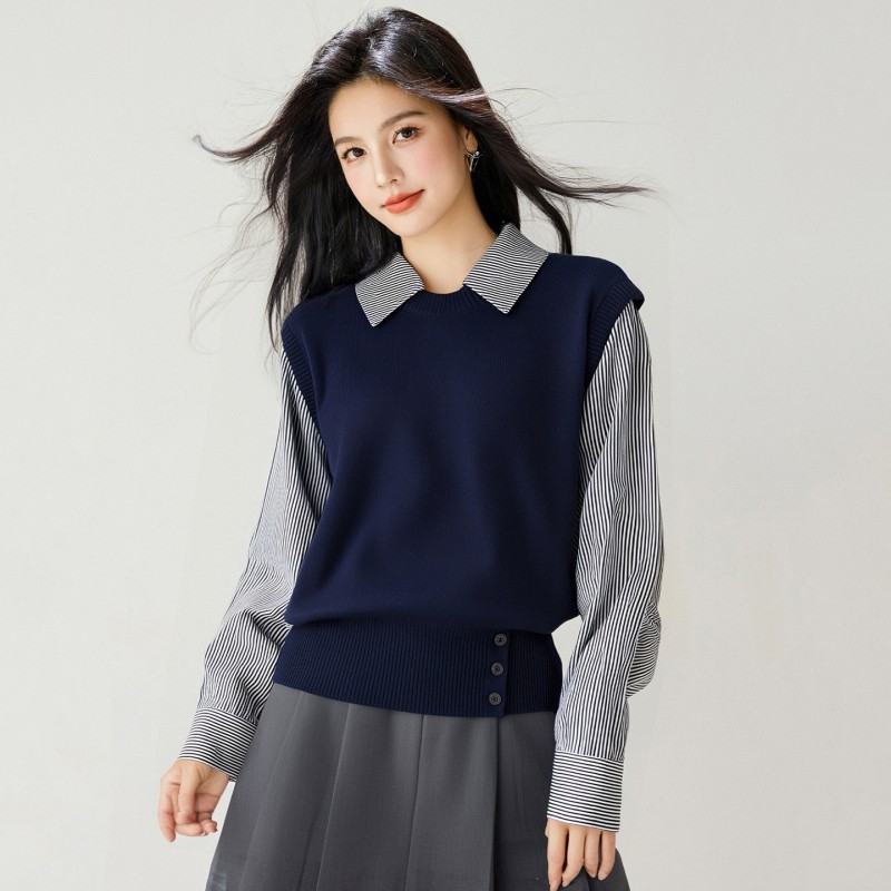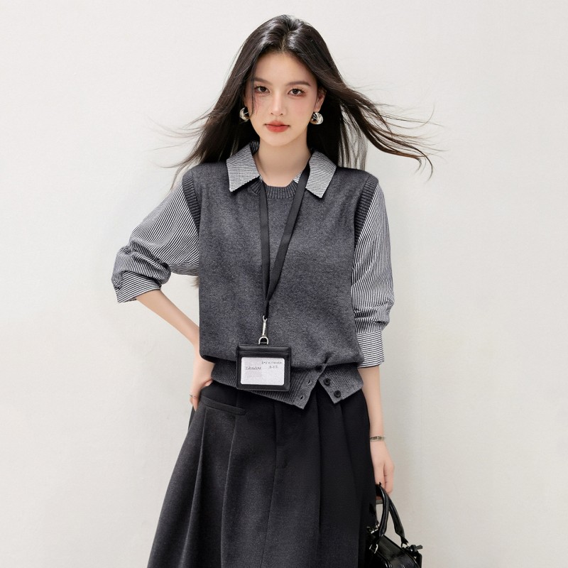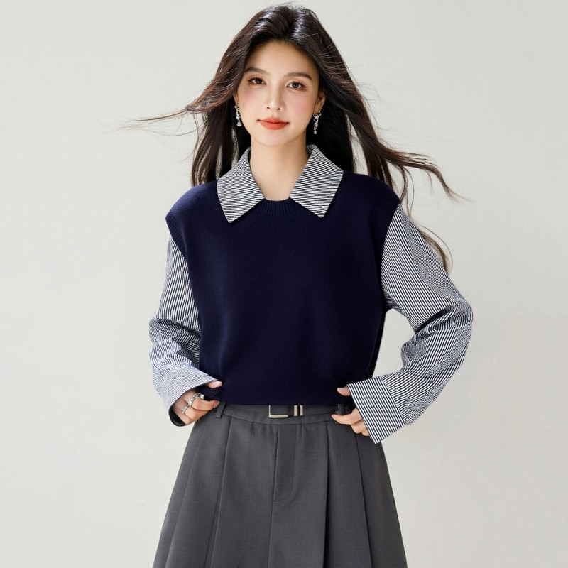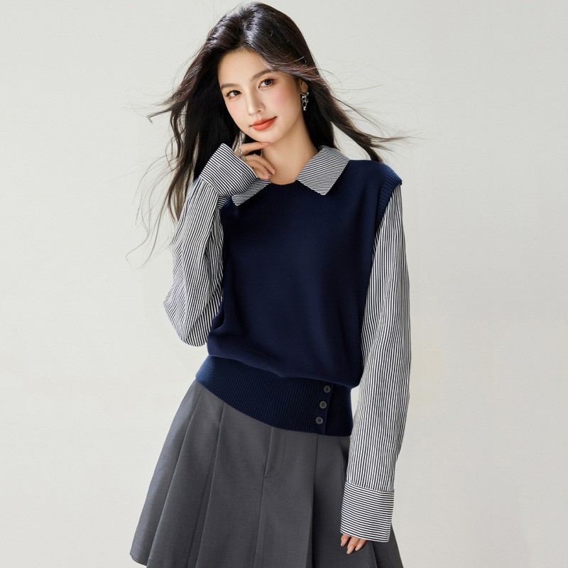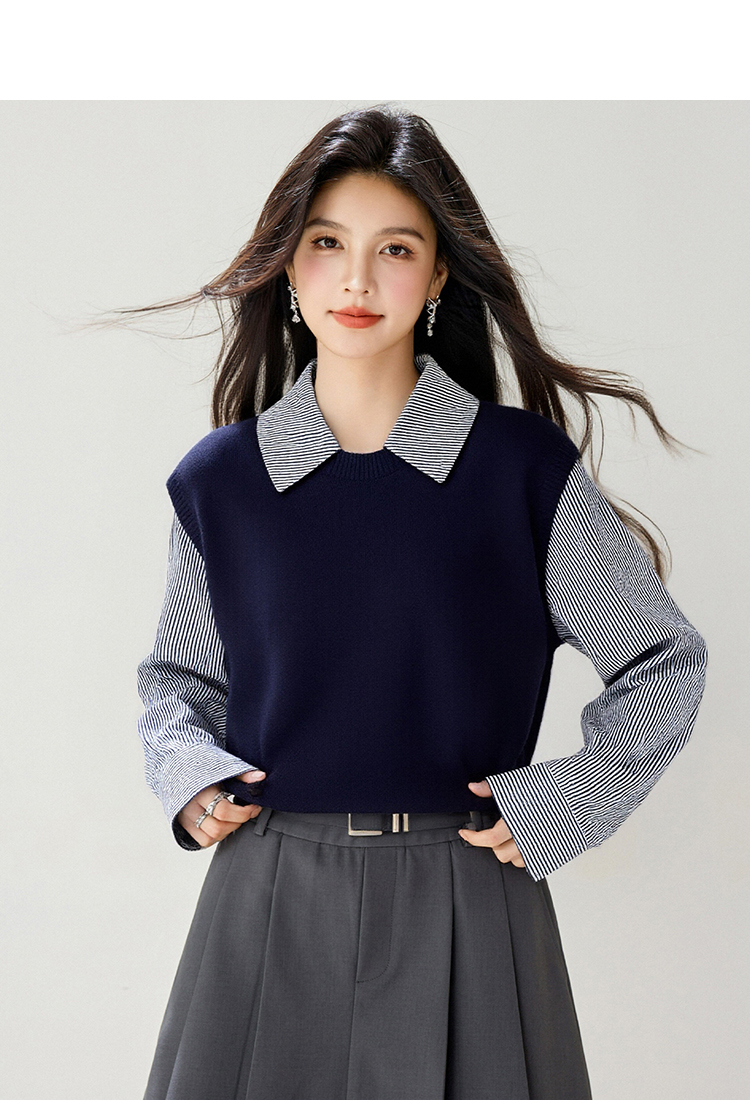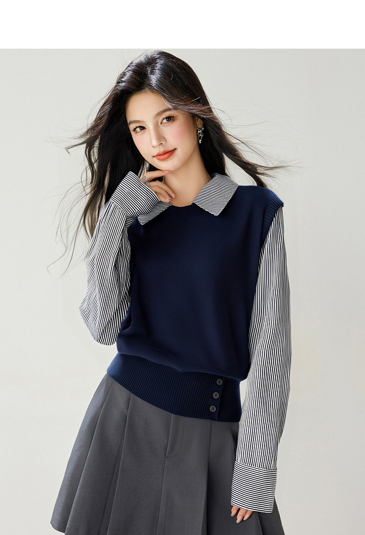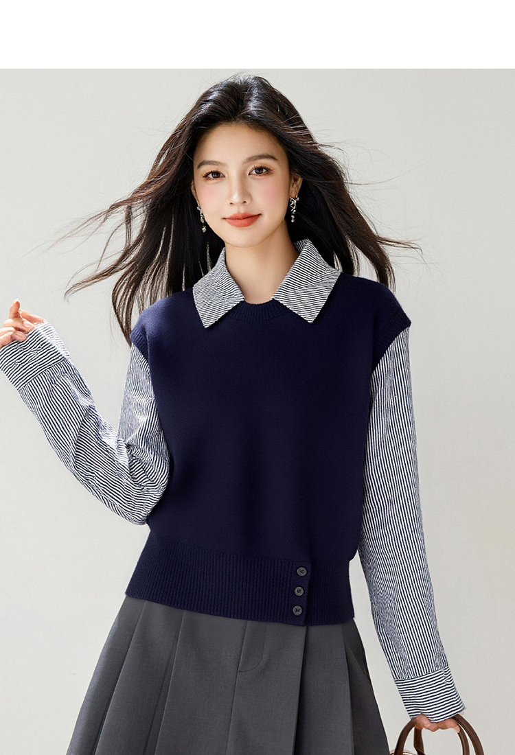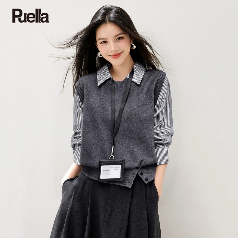 拉夏贝尔Puella2025年冬季文艺显瘦气质上衣女拼接假两...