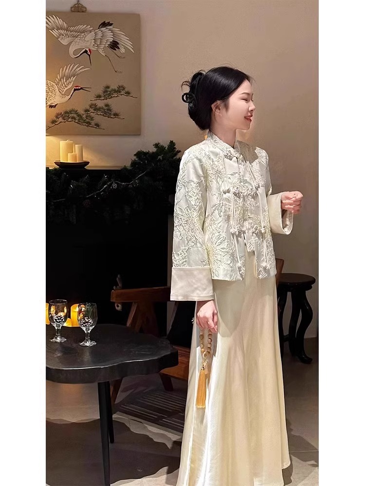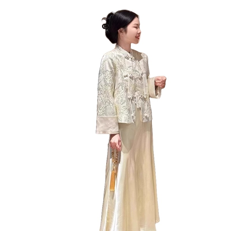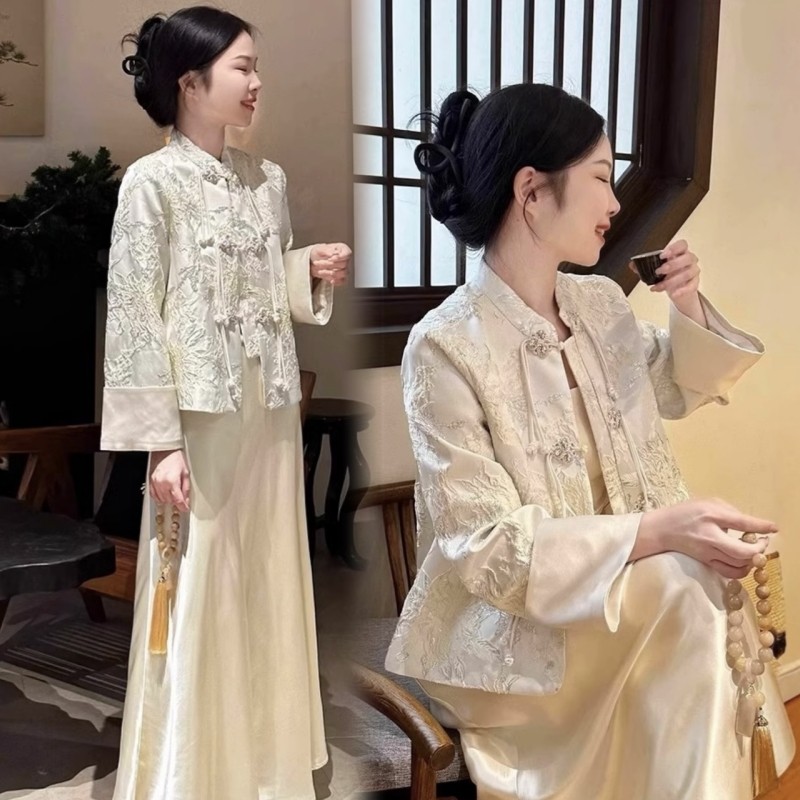 | 产品名称 : | 新中式国风女装套装春秋大码微胖mm高级感衬衫外套连衣裙子两件套 |