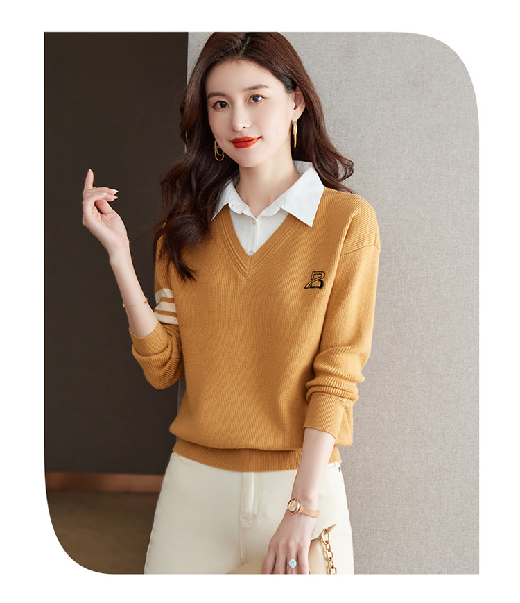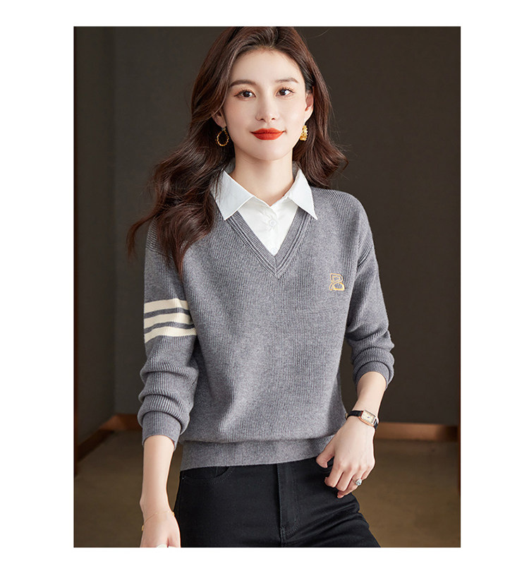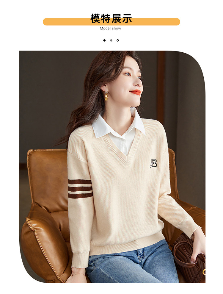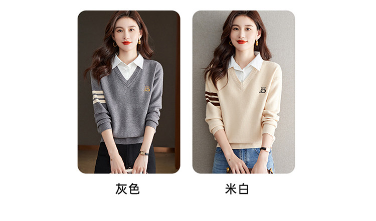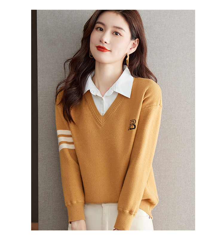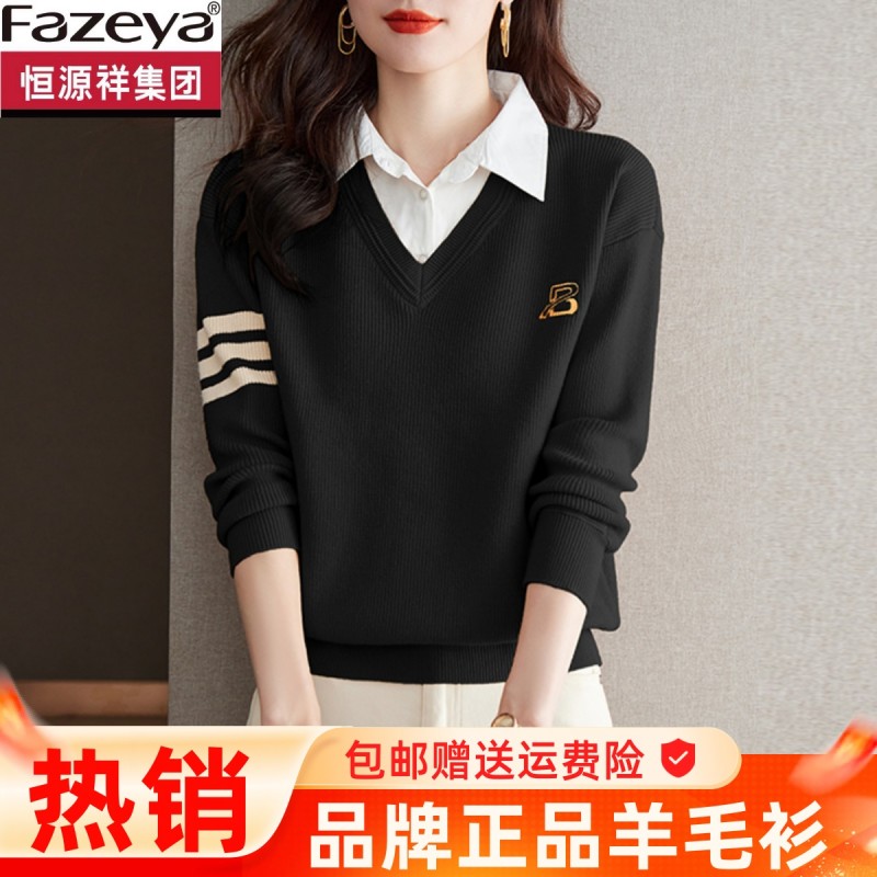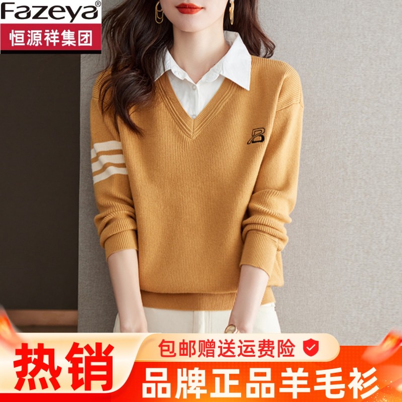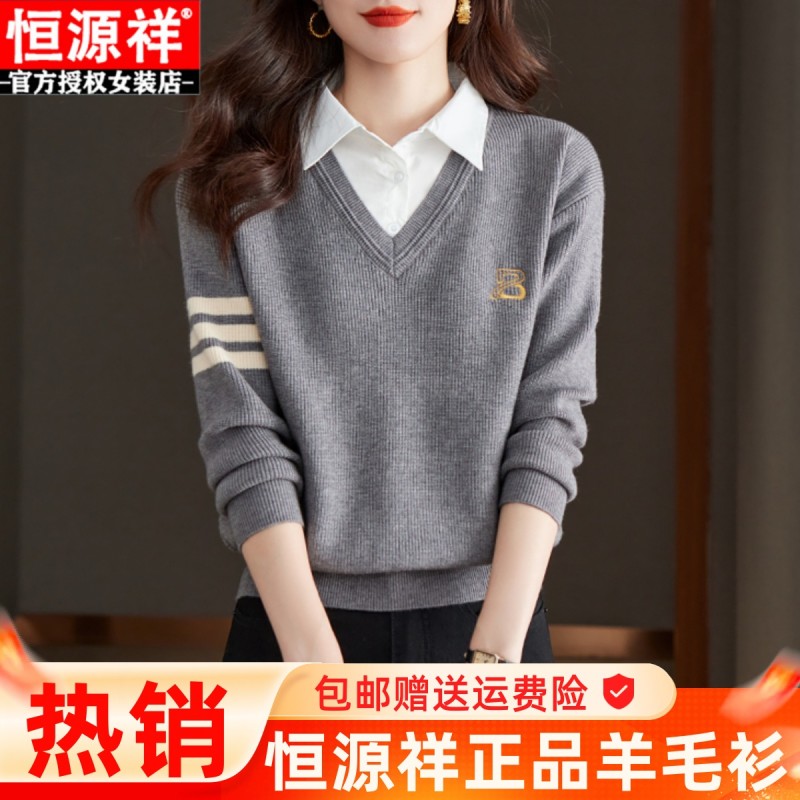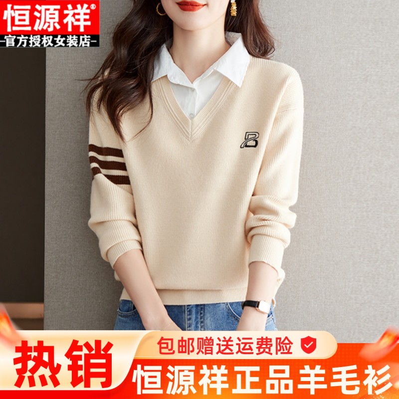 | 产品名称 : | 恒源祥羊毛衫女衬衫领针织衫上衣秋冬加厚宽松假两件羊绒打底毛衣 |