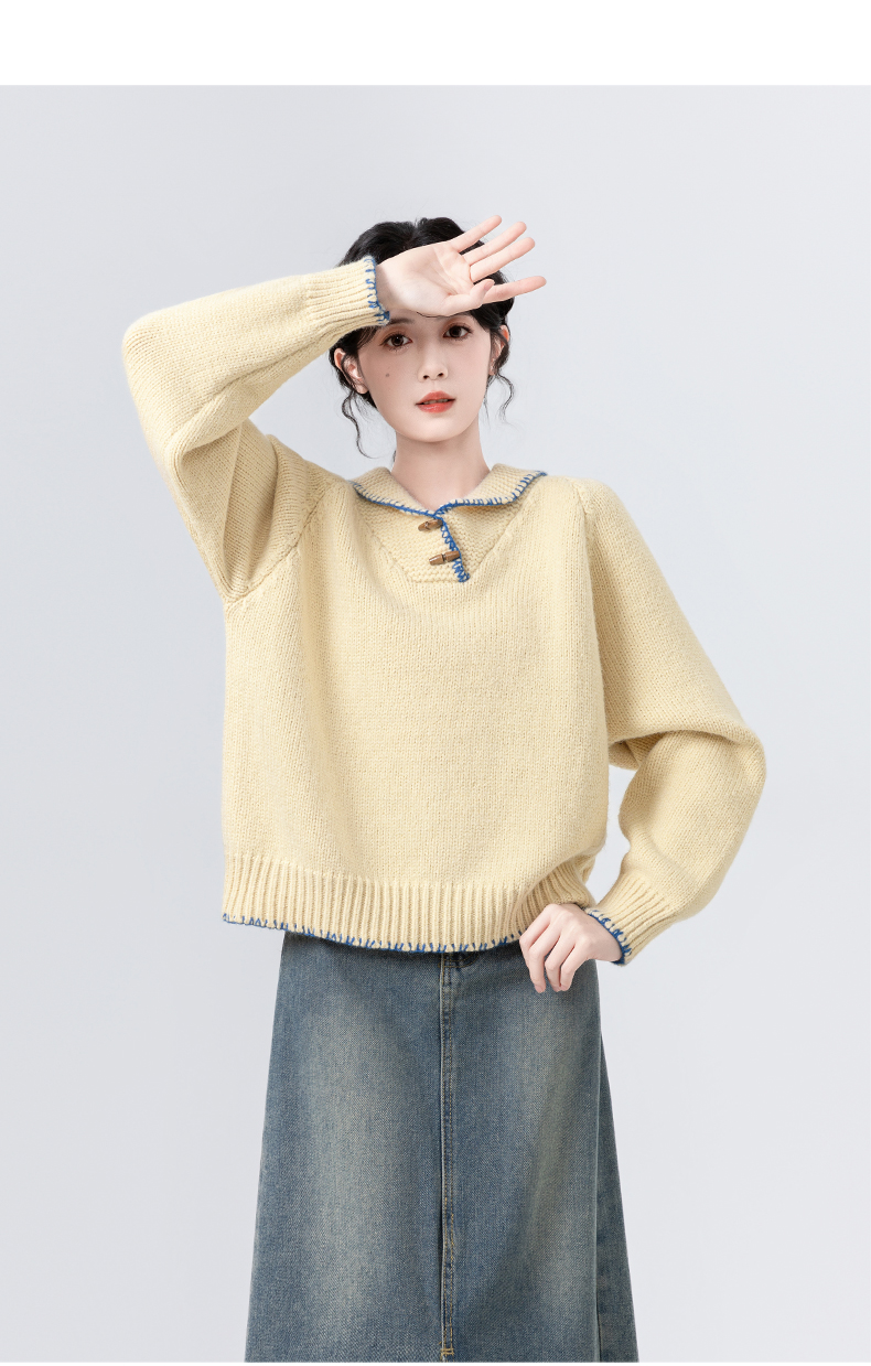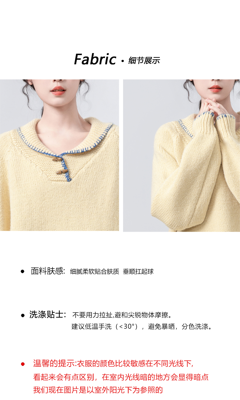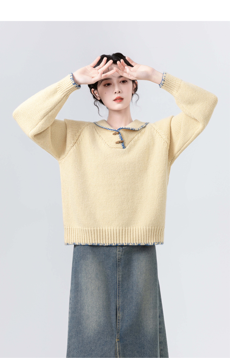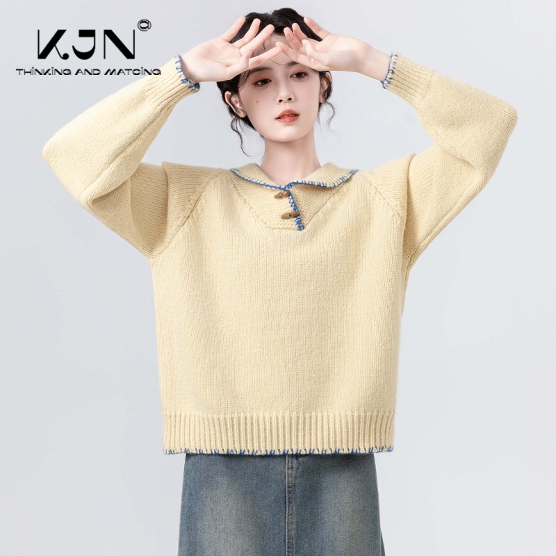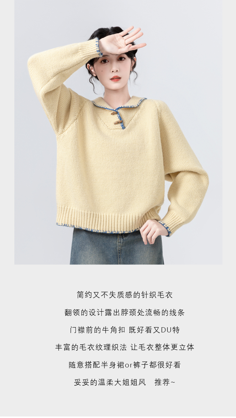| 产品名称 : | 黄色牛角扣polo领毛衣女2025秋冬新款翻领宽松软糯加厚针织衫上衣 |
