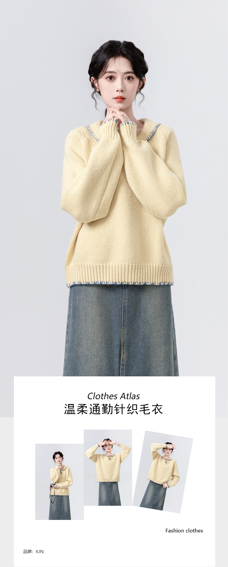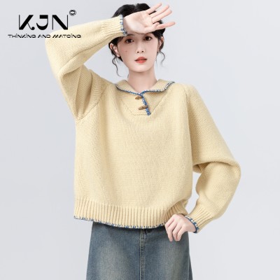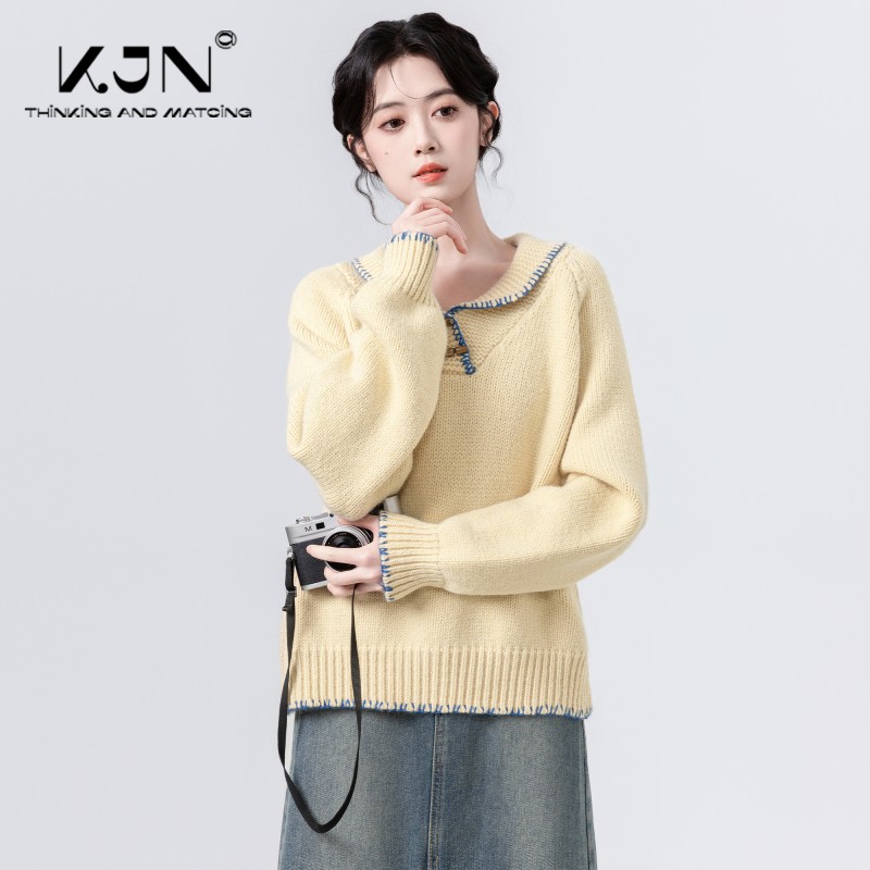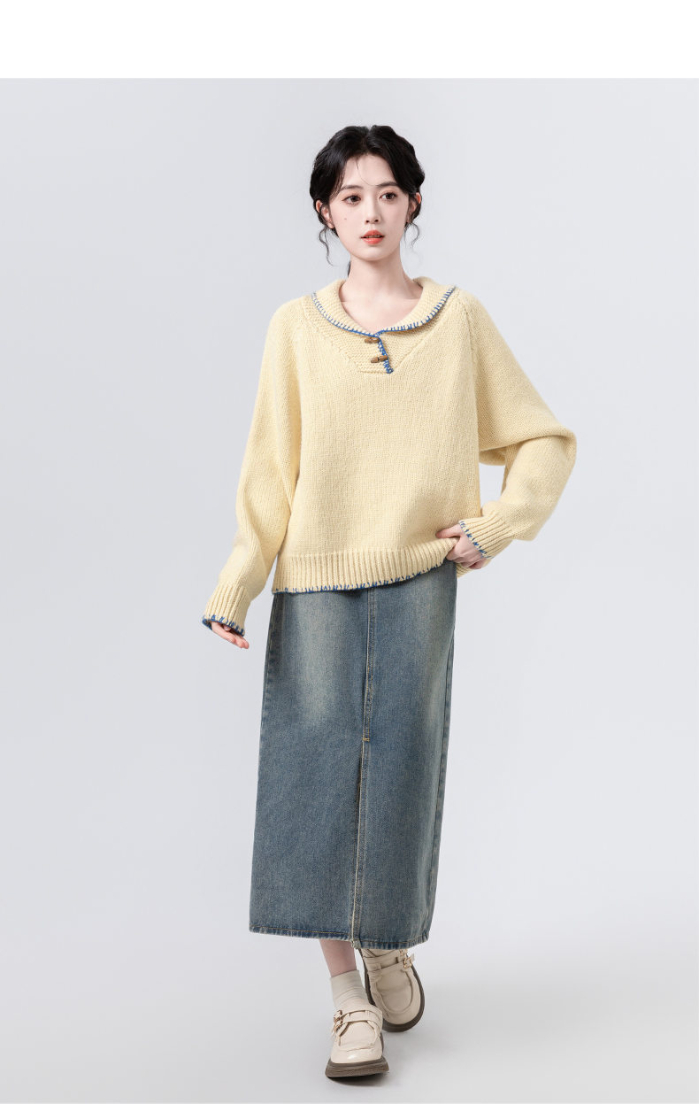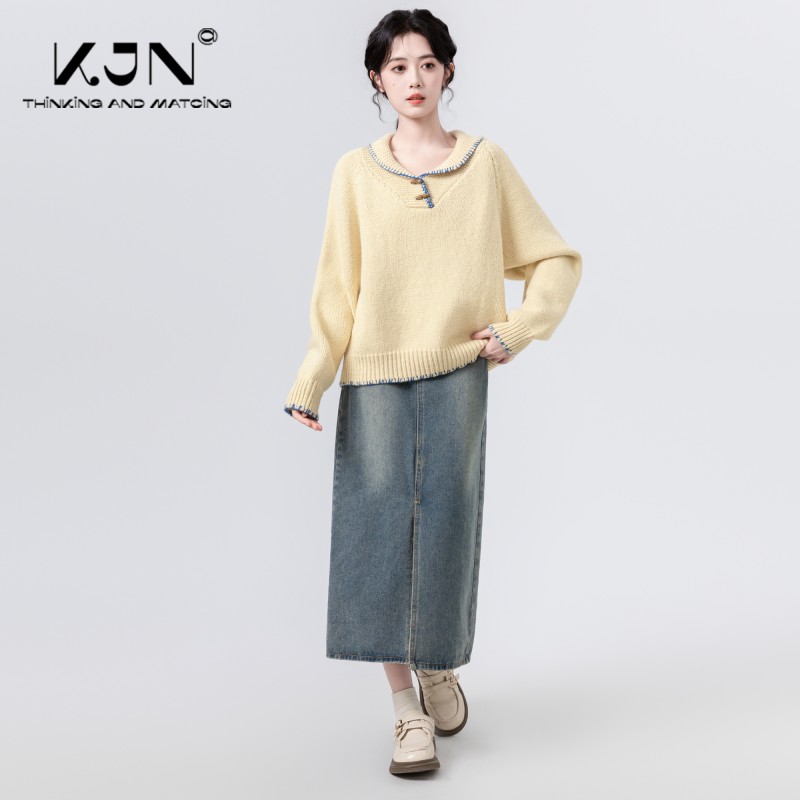 | 产品名称 : | 黄色牛角扣polo领毛衣女2025秋冬新款翻领宽松软糯加厚针织衫上衣 |