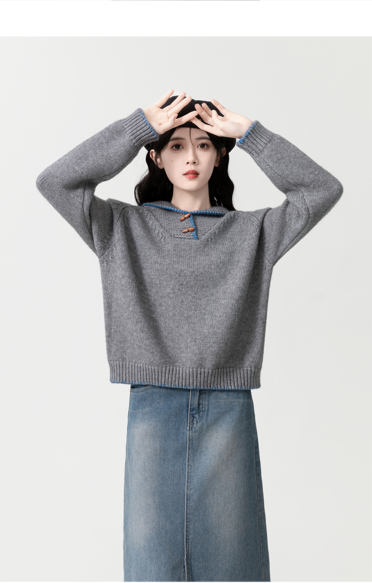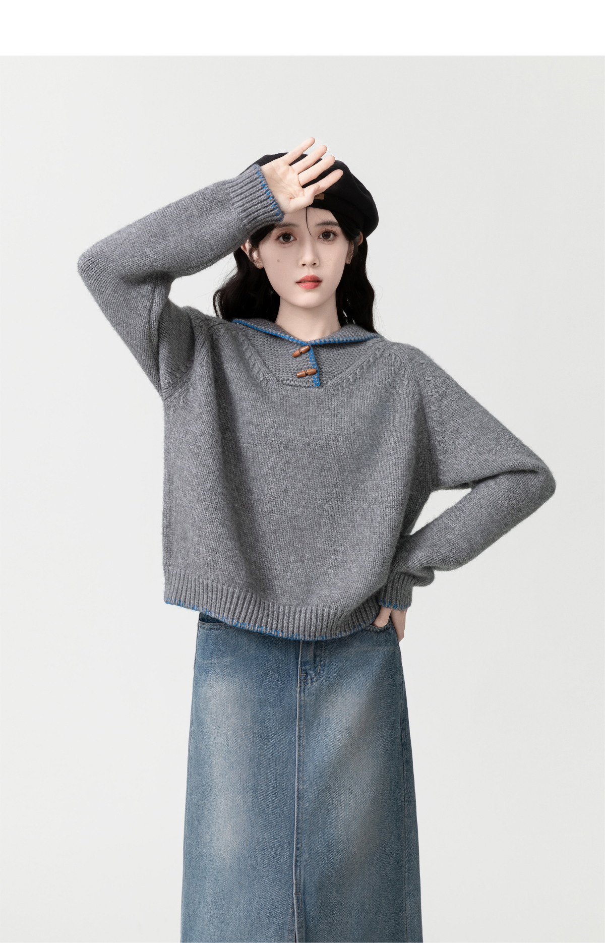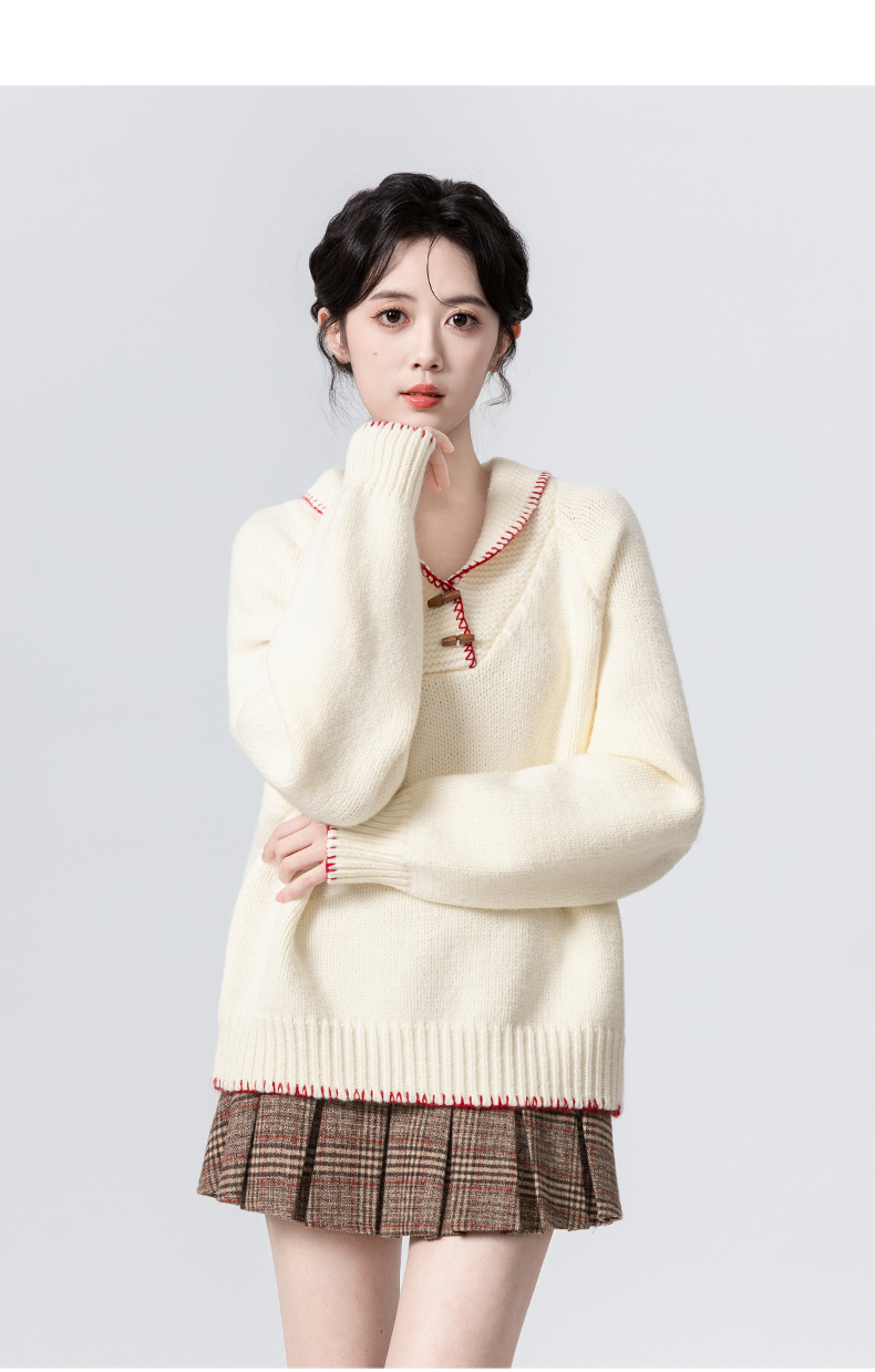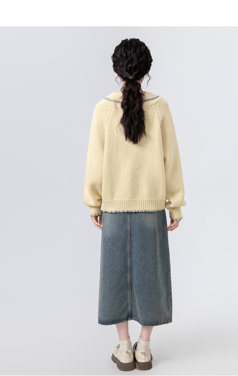 | 产品名称 : | 黄色牛角扣polo领毛衣女2025秋冬新款翻领宽松软糯加厚针织衫上衣 |