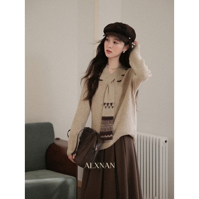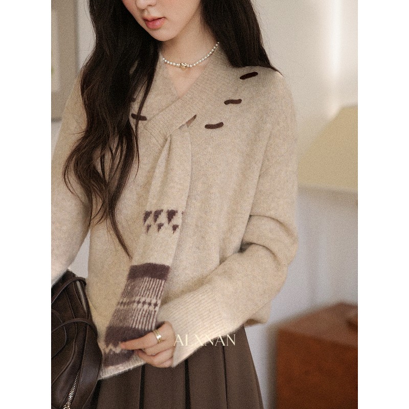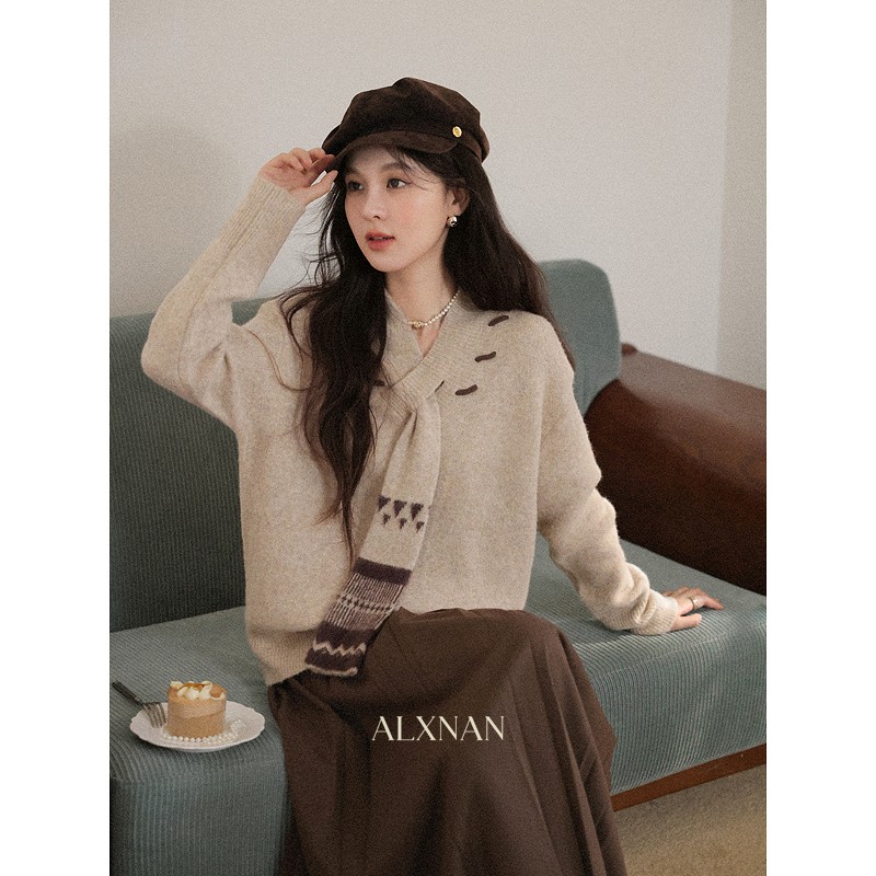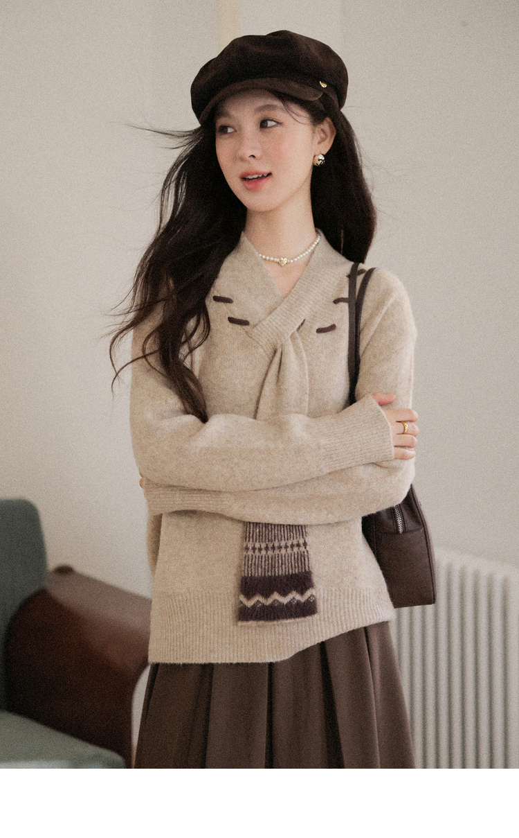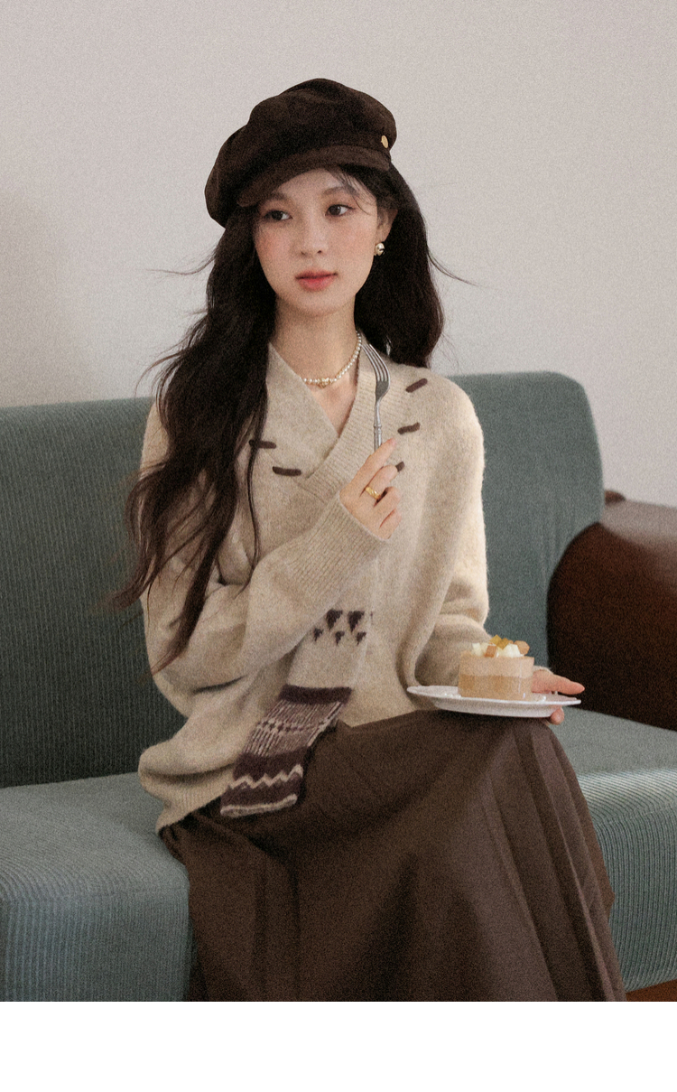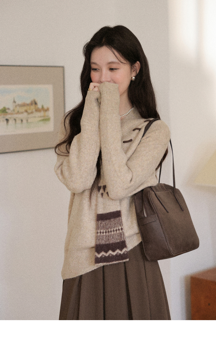 鹿向南「松风煮茶」设计感针织衫毛衣女秋季法式漂亮独特别致上衣