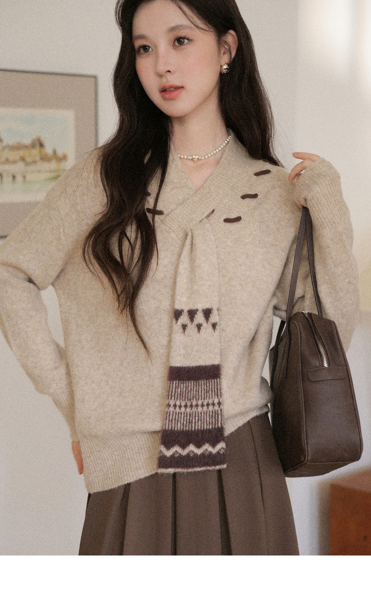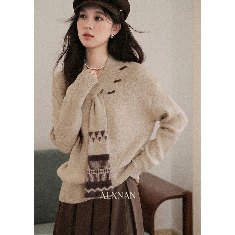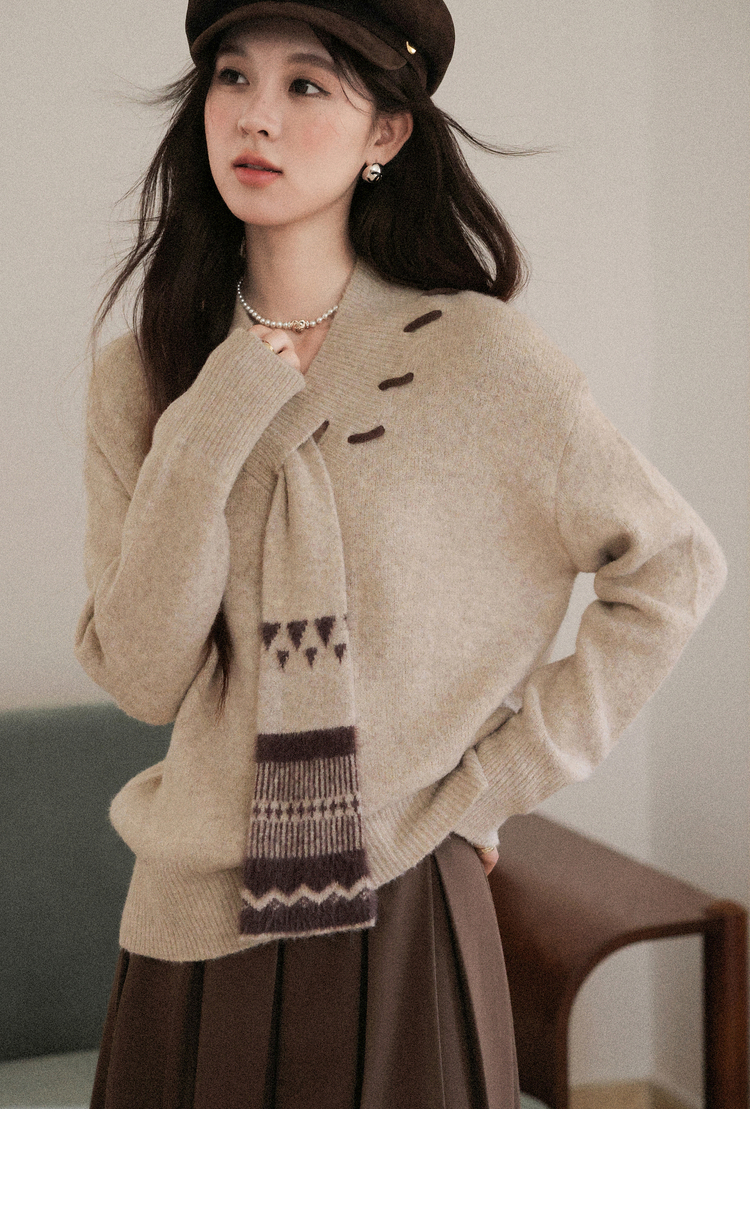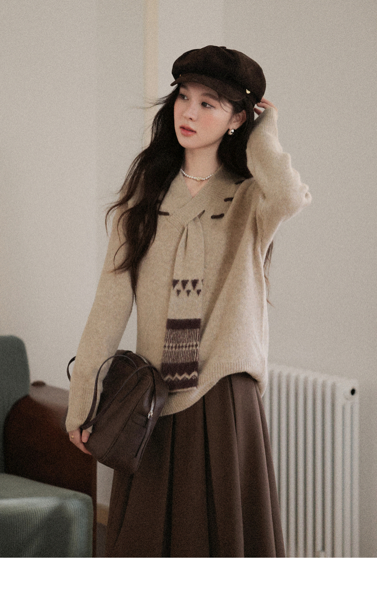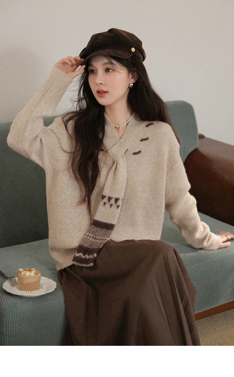 鹿向南「松风煮茶」设计感针织衫毛衣女秋季法式漂亮独特别致上衣