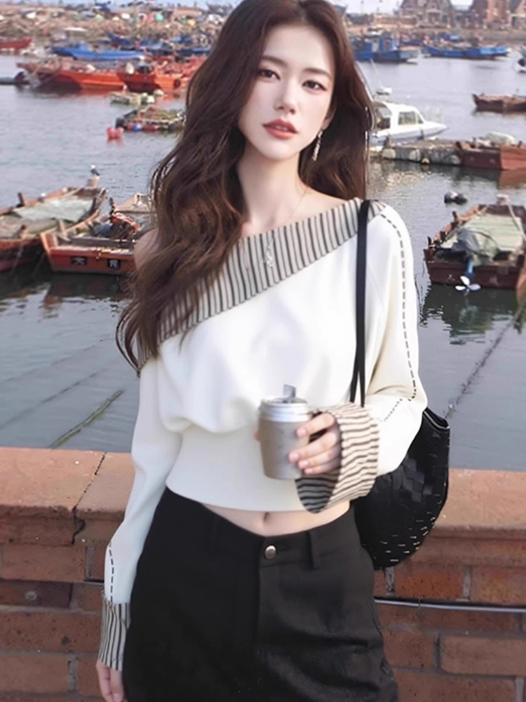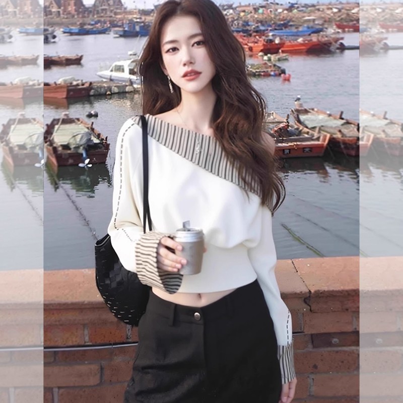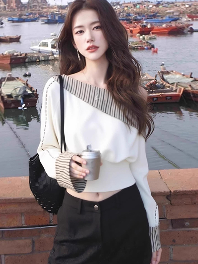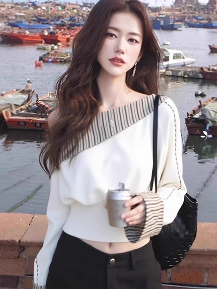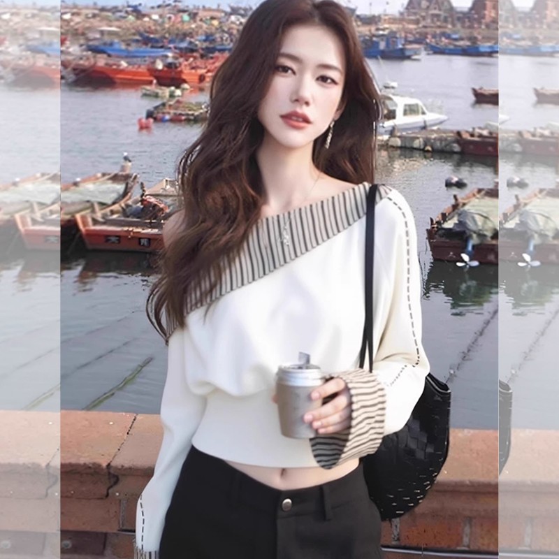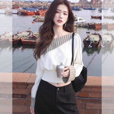 | 产品名称 : | 巨好看的条纹拼接卫衣女2025新款今年流行爆款秋季洋气露肩短上衣 |
