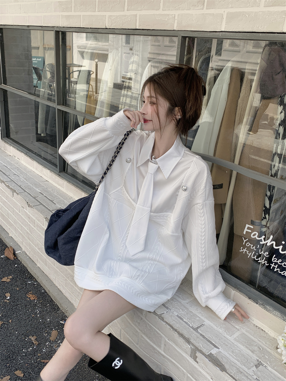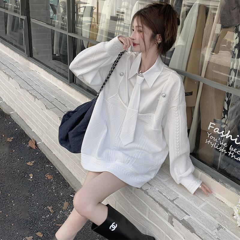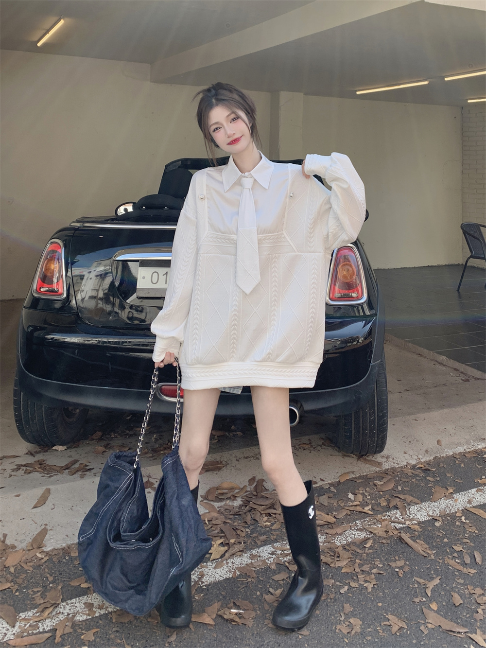 | 产品名称 : | 假两件卫衣女秋冬季2025新款宽松中长款白色遮屁股慵懒风单穿上衣 |