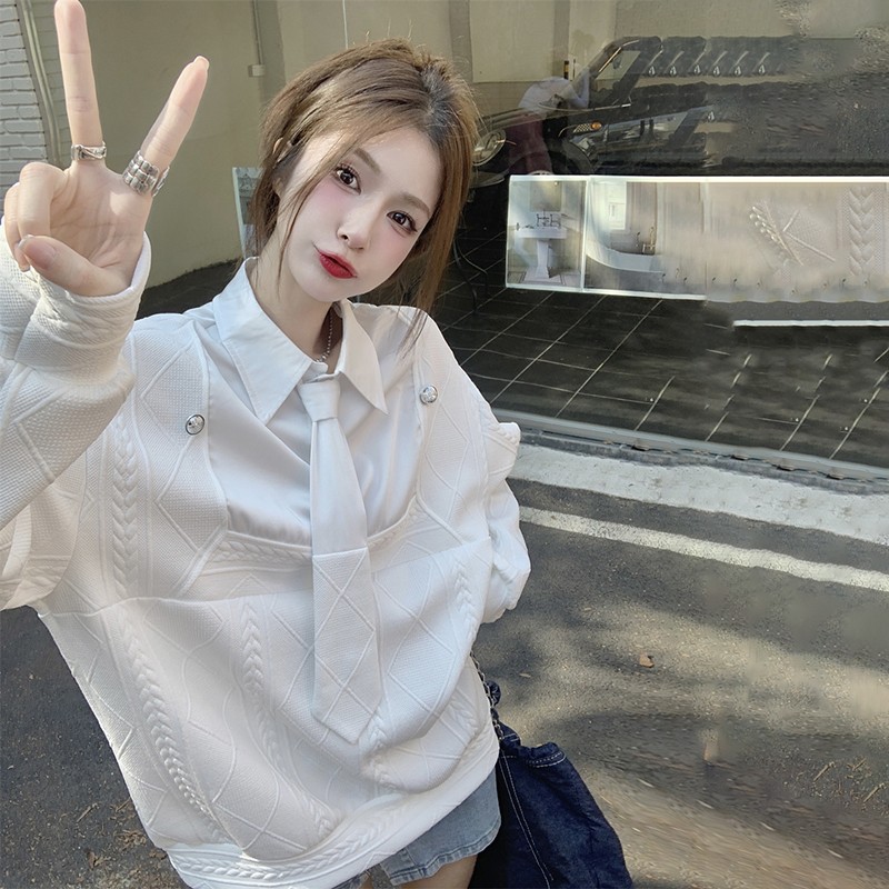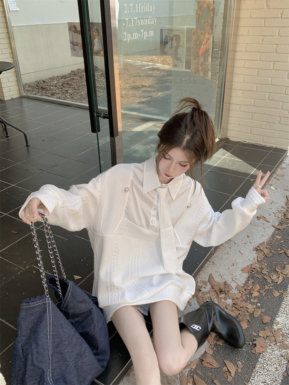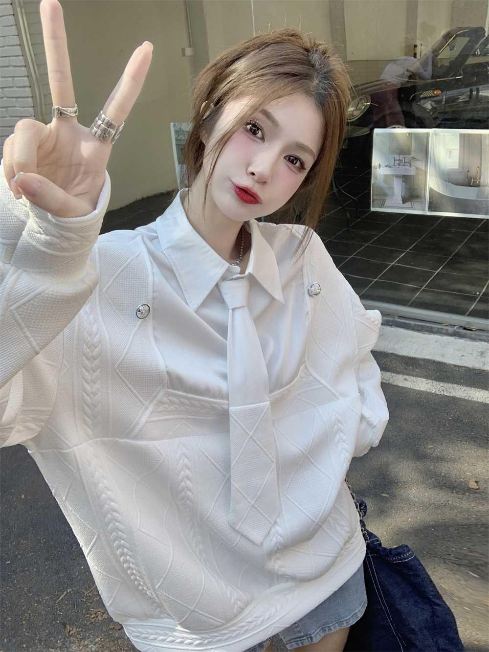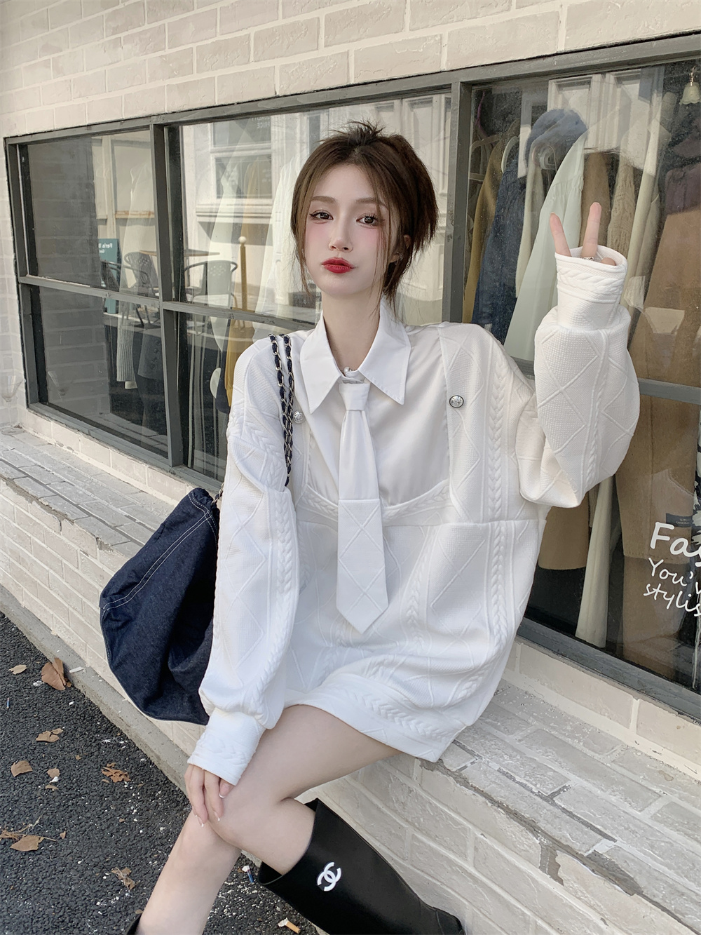 | 产品名称 : | 假两件卫衣女秋冬季2025新款宽松中长款白色遮屁股慵懒风单穿上衣 |