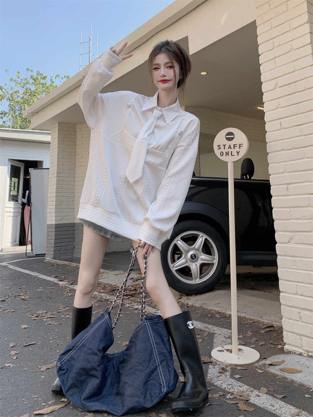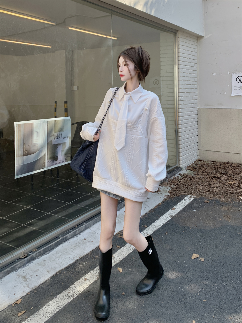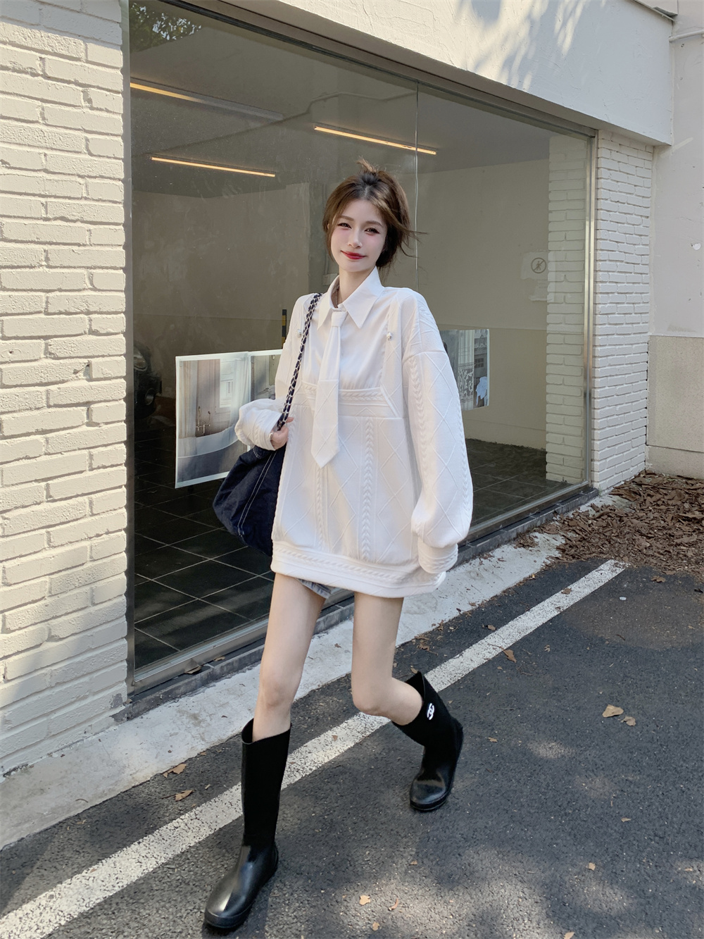 | 颜色分类: | 白色(送领带【卫衣女新款2025爆款时尚洋气/秋装/秋季/冬季流行风格/深秋初冬/今年流行漂亮/山东即墨/配鲨鱼裤/芭比裤搭配/遮屁股洋气/遮臀 |