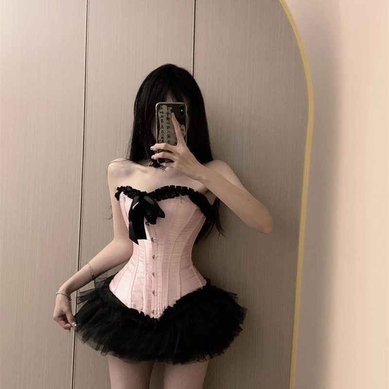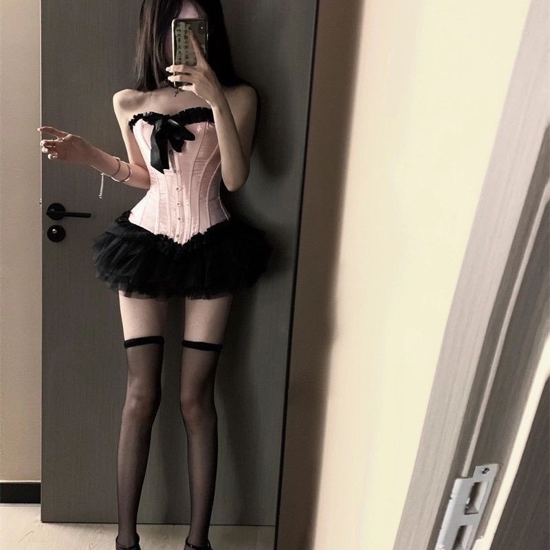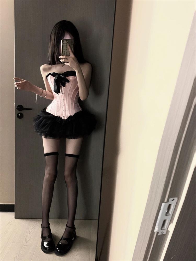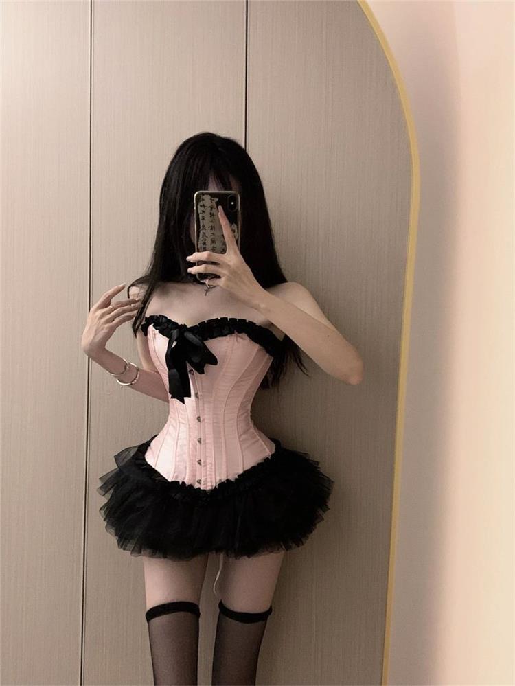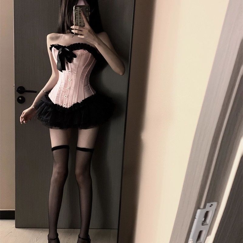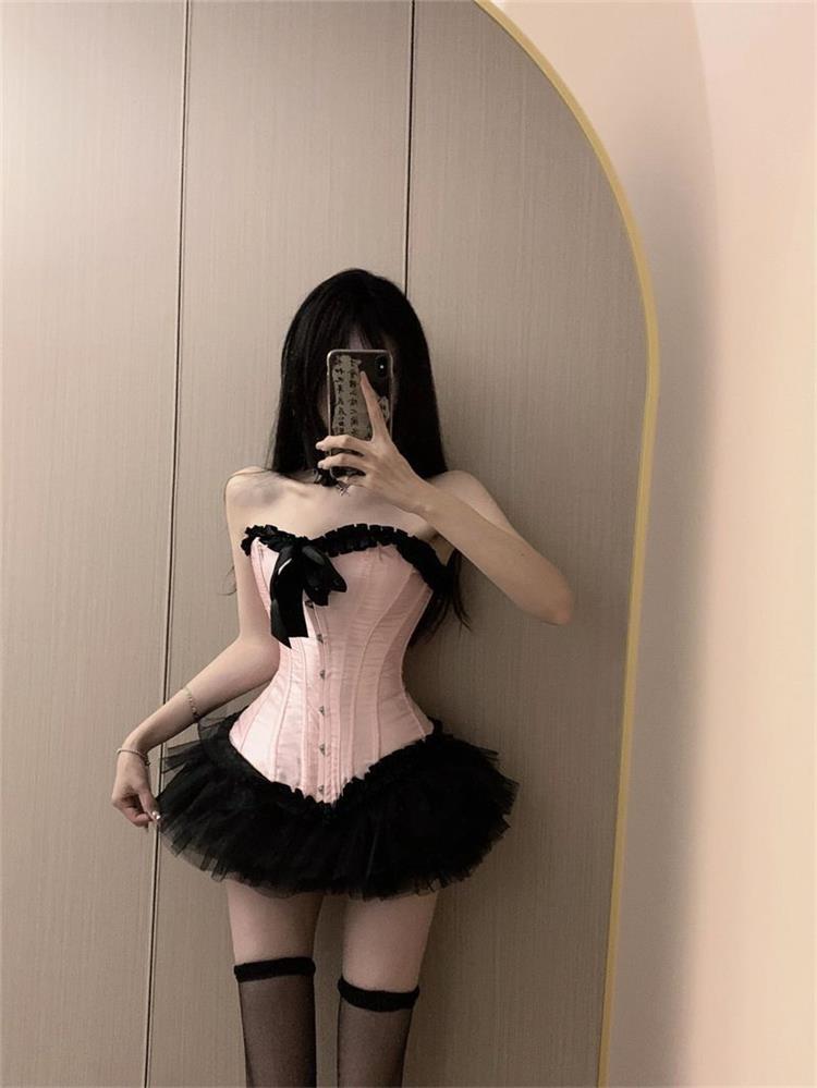 新款酒吧DS演出服gogo女性感爵士领舞Dj夜店粉色塑身鱼骨...