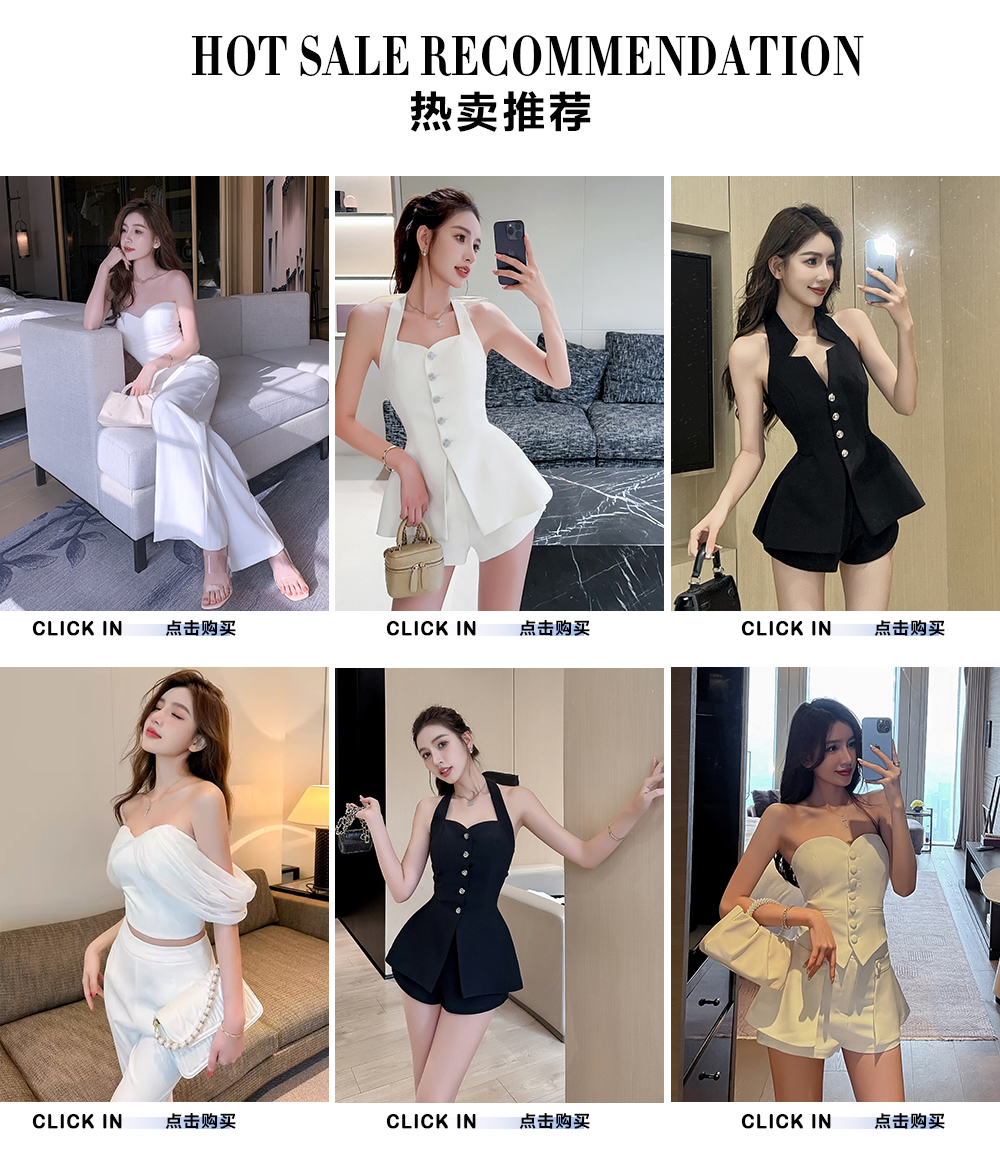 单排扣V领挂脖露肩上衣收腰显瘦无袖西装马甲背心性感辣妹套装夏