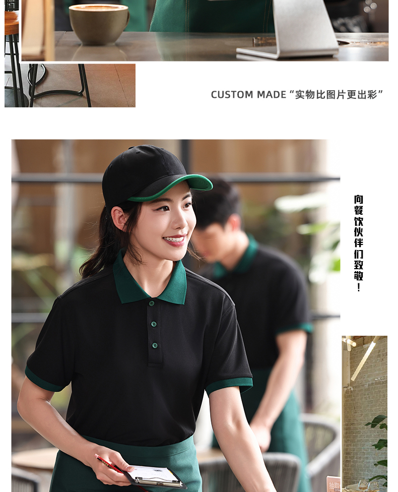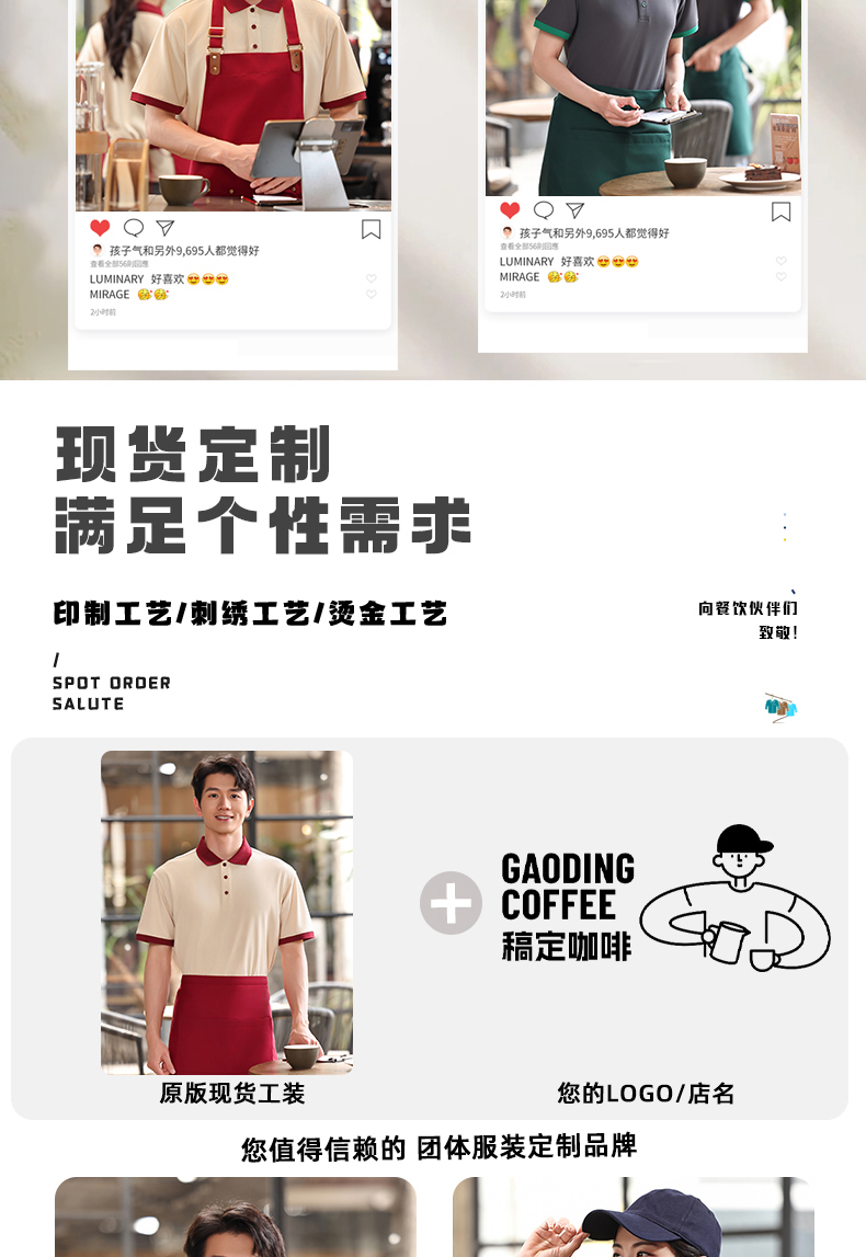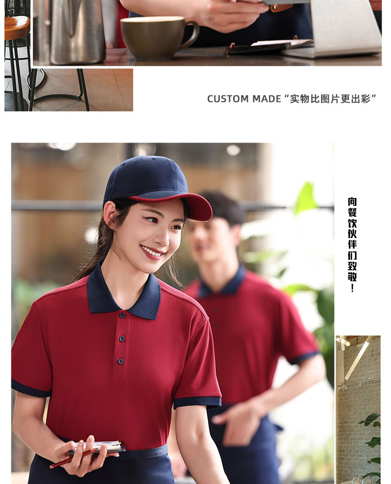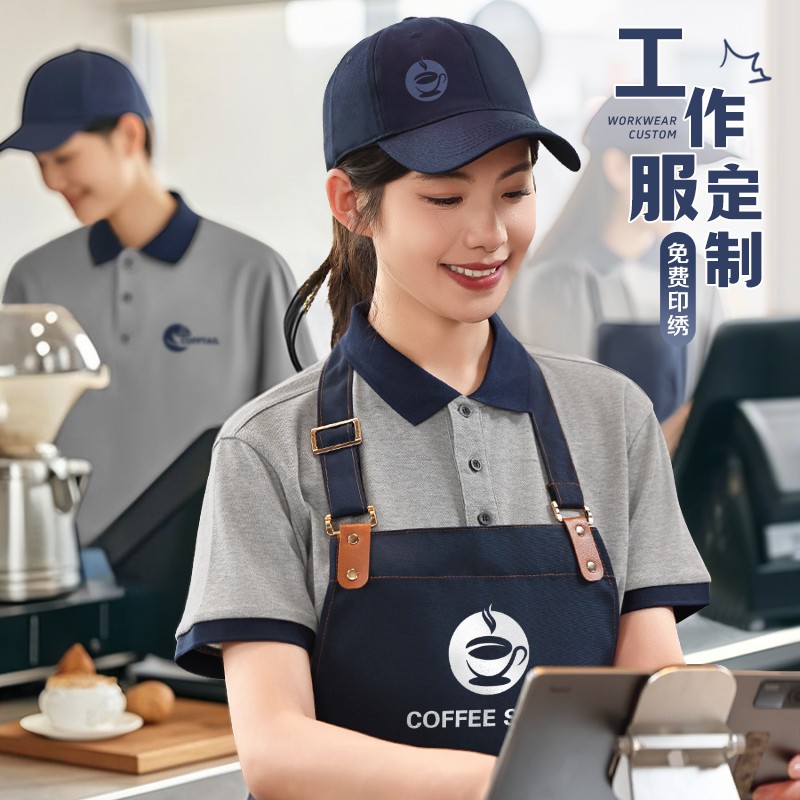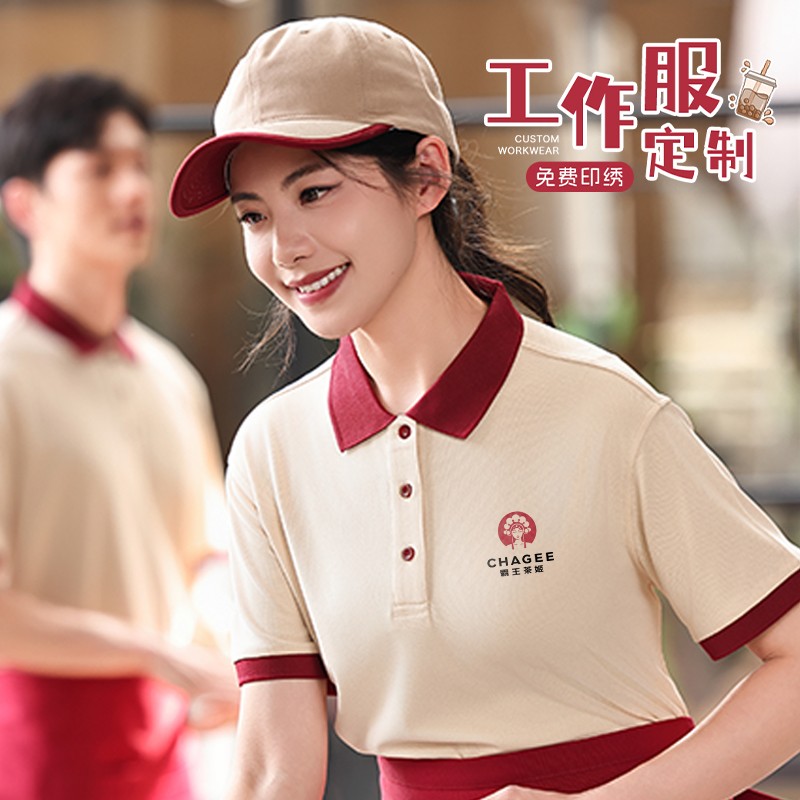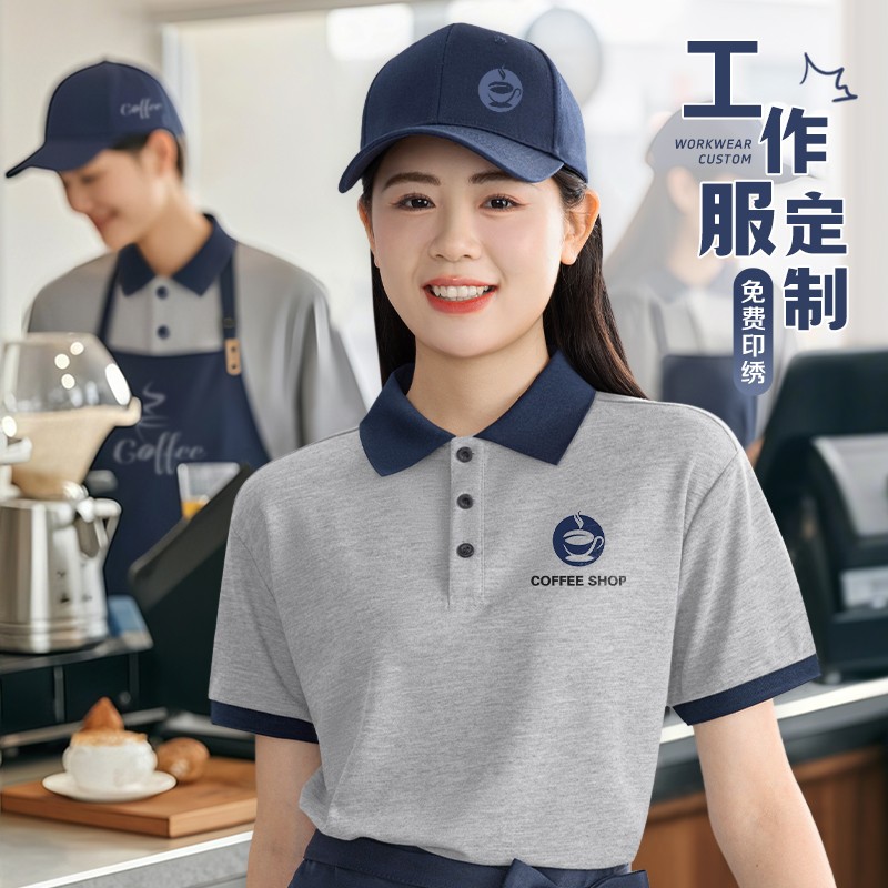 | 产品名称 : | 咖啡店工作服polo衫定制印logo夏季翻领奶茶店餐饮员工装短袖T恤 |
