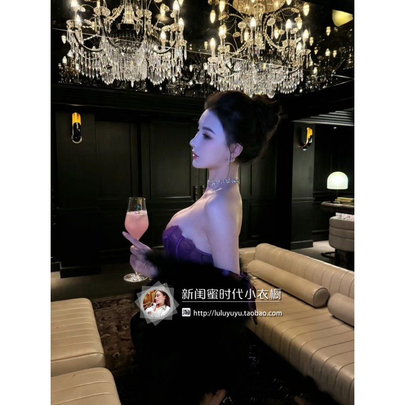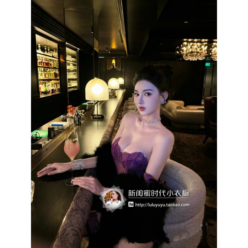 姐姐的浪漫紫!好看到窒息!甜辣性感风纯欲蕾丝吊带背心上衣女