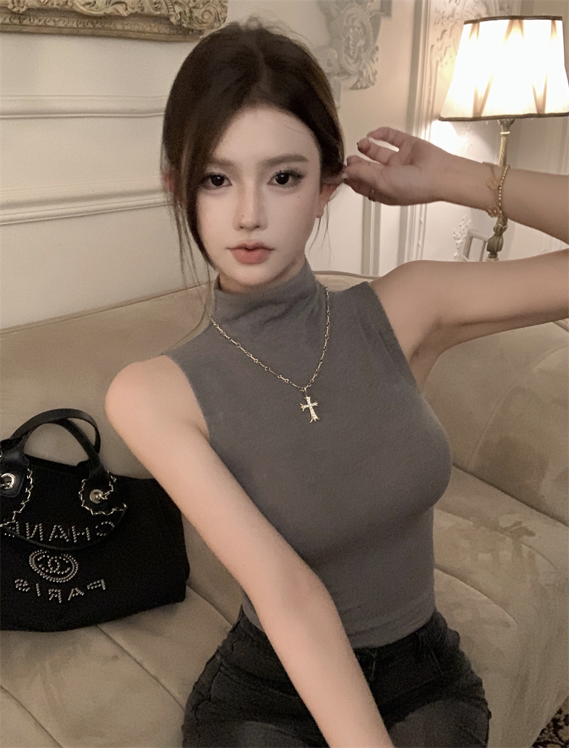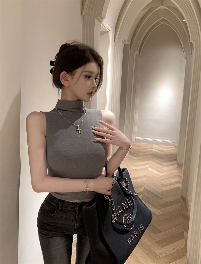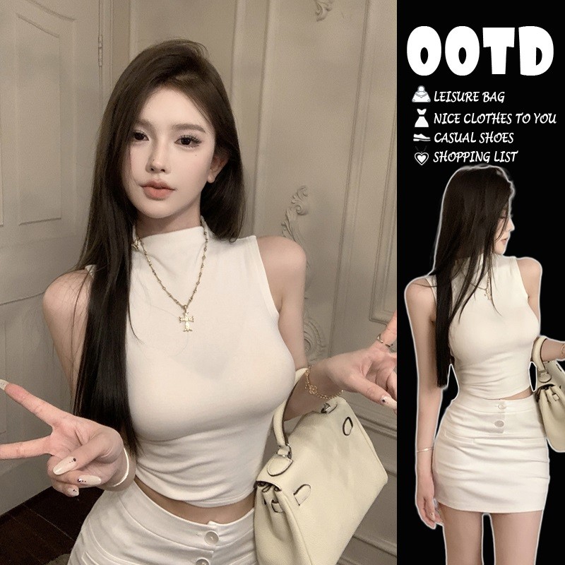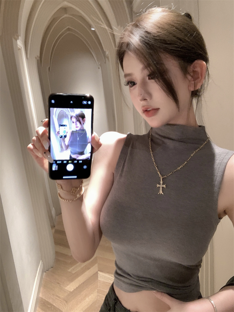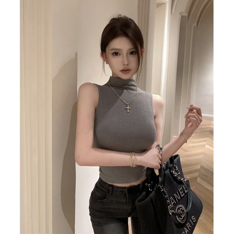 | 产品名称 : | 纯欲辣妹半高领无袖背心女短款性感内搭打底紧身显瘦坎肩别致上衣 |
