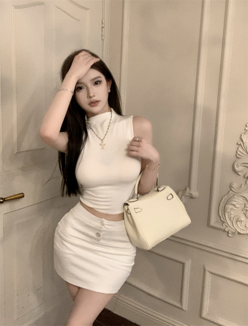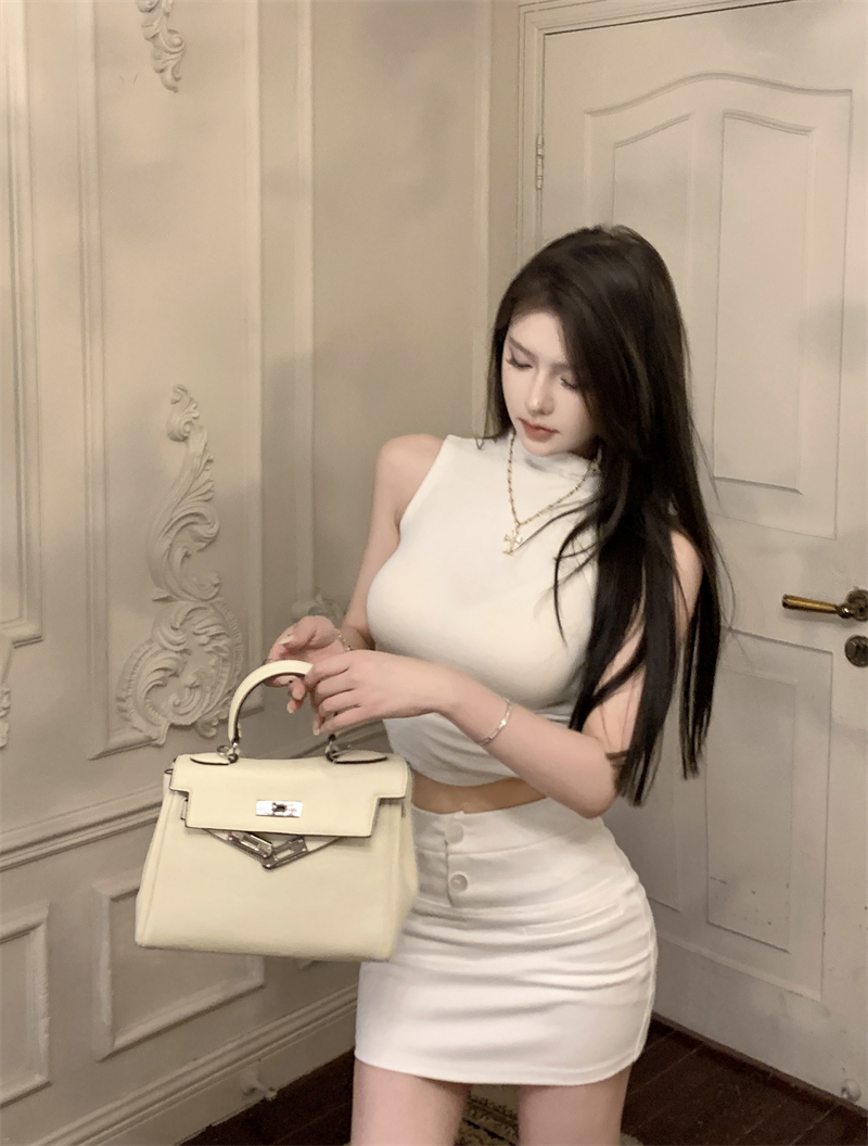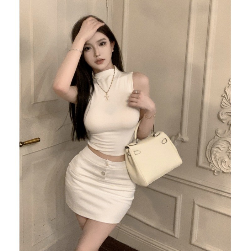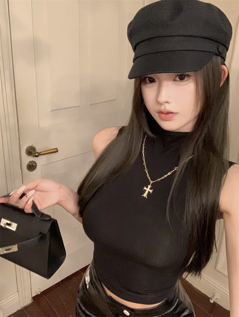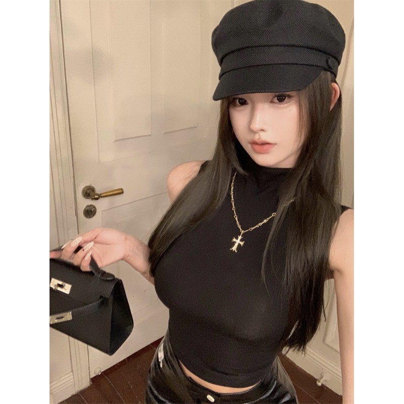 | 产品名称 : | 纯欲辣妹半高领无袖背心女短款性感内搭打底紧身显瘦坎肩别致上衣 |