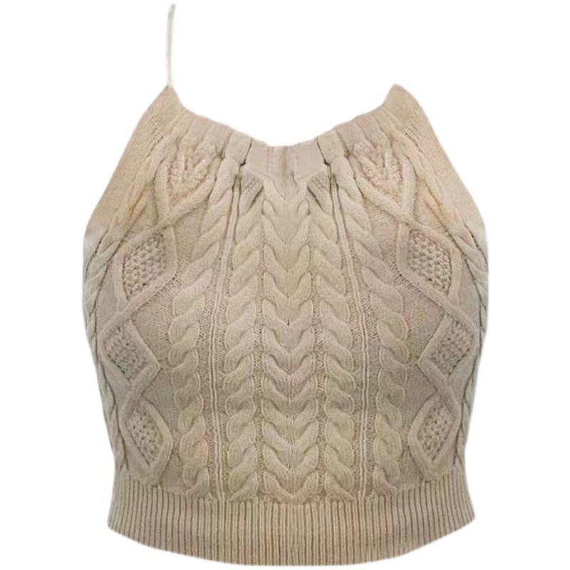2025夏季短款无袖内搭小背心吊带外穿针织挂脖性感打底衫上衣...