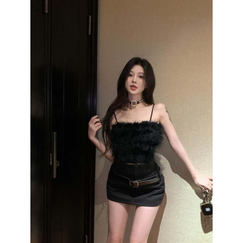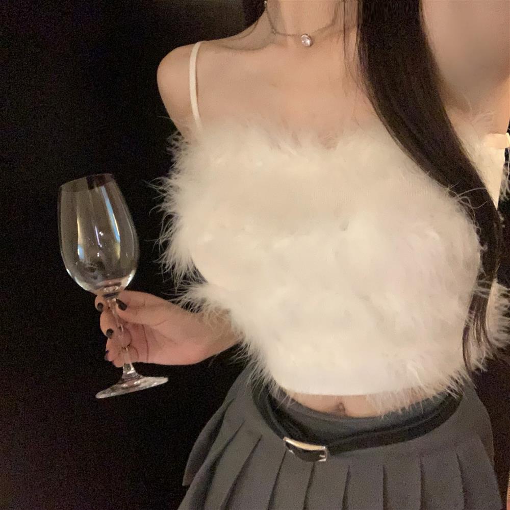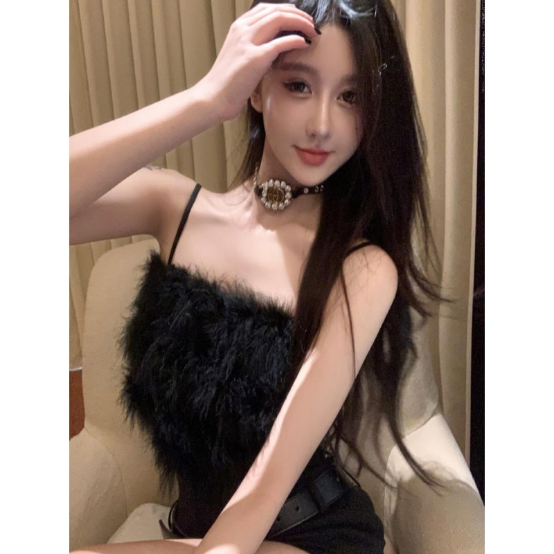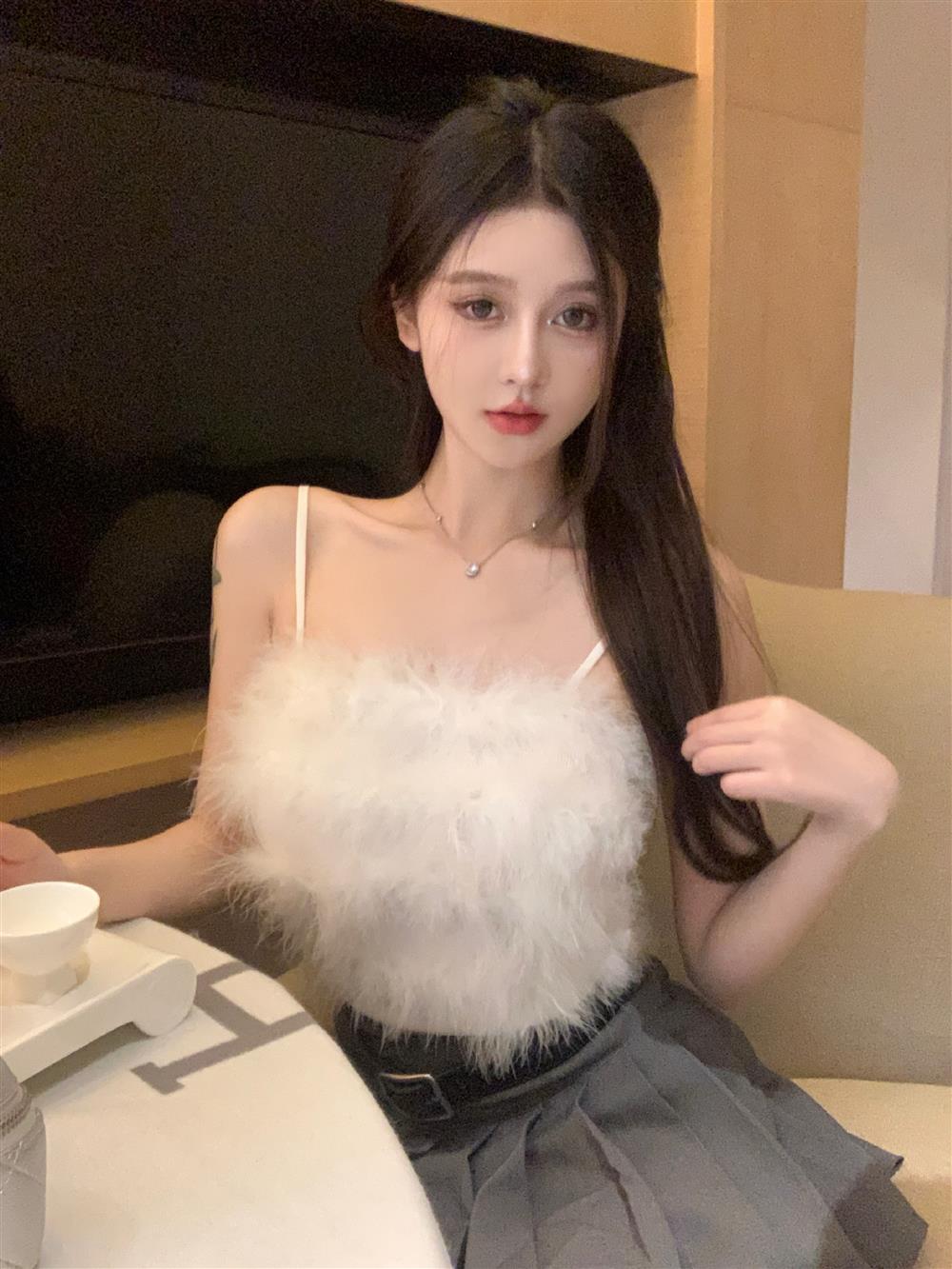 | 产品名称 : | 纯欲风针织小吊带背心女夏季甜辣妹无袖性感修身毛毛短款上衣外穿 |