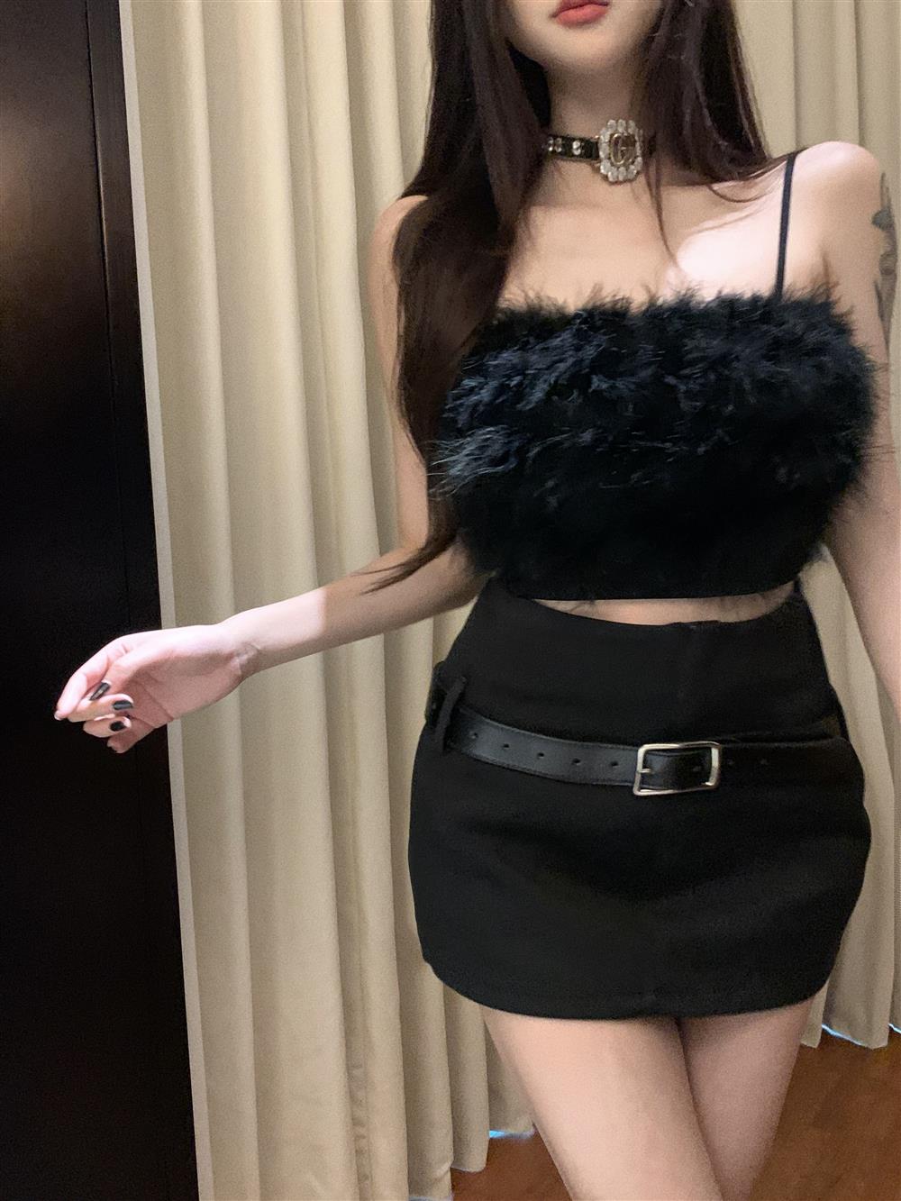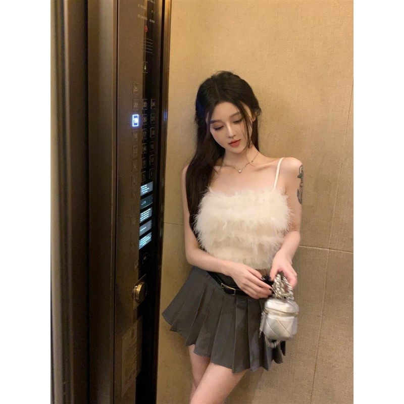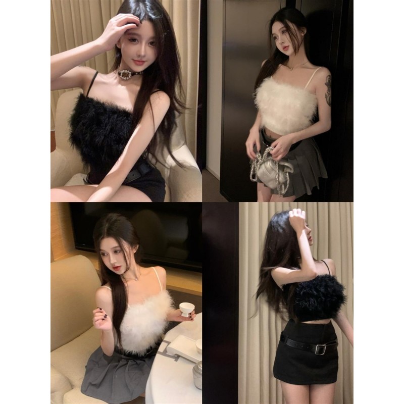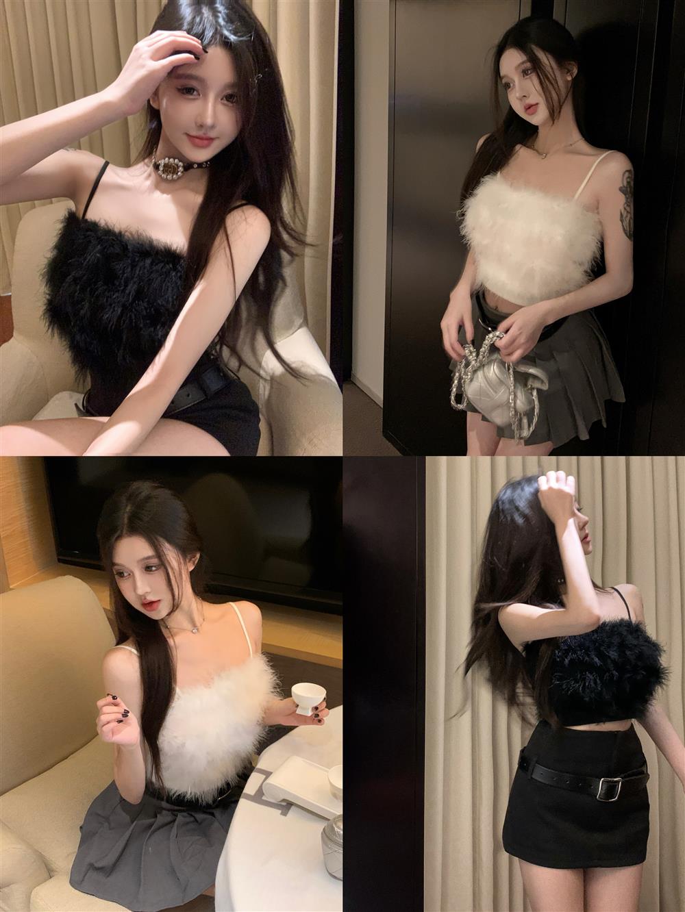 | 产品名称 : | 纯欲风针织小吊带背心女夏季甜辣妹无袖性感修身毛毛短款上衣外穿 |